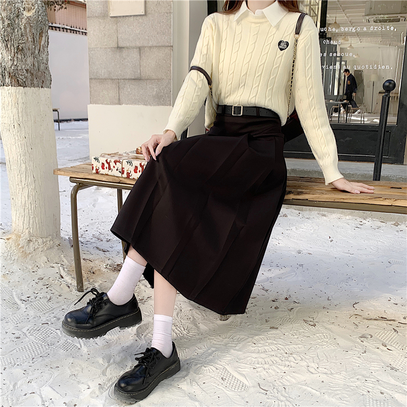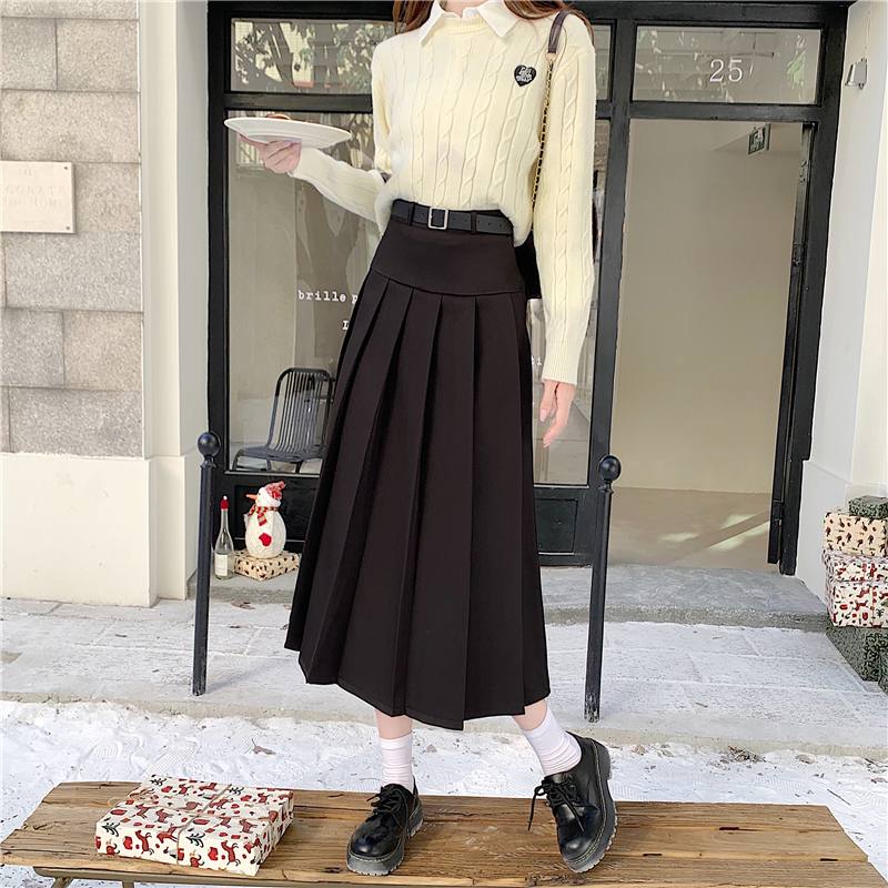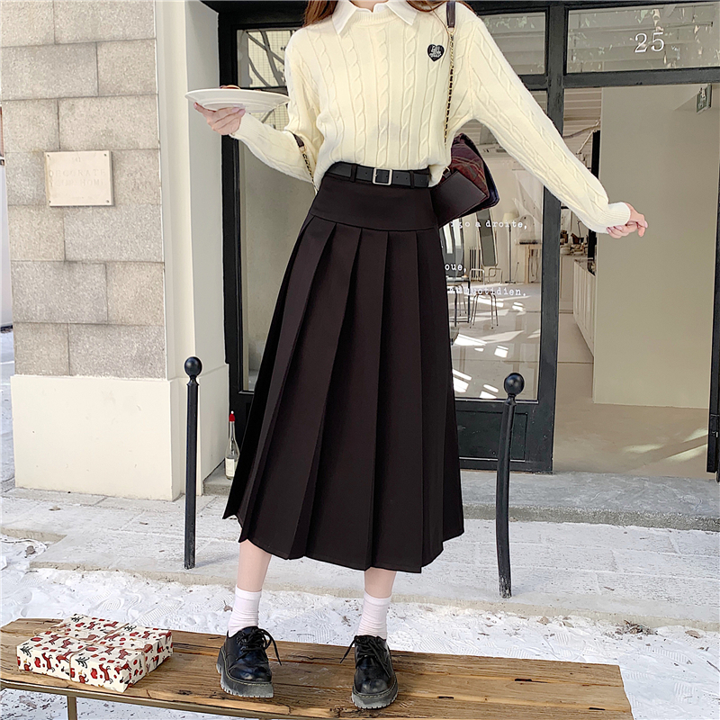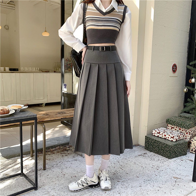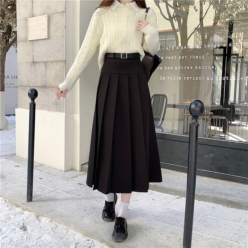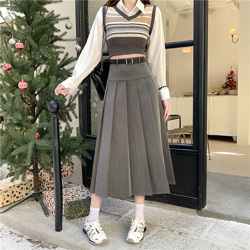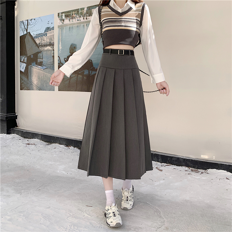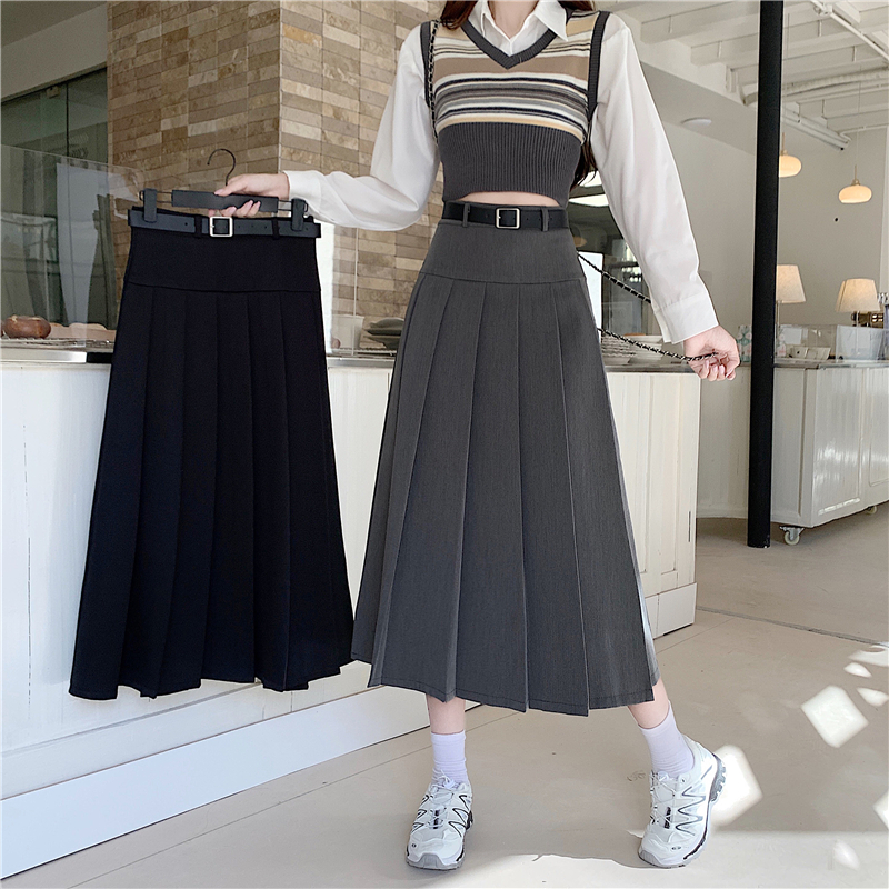 RM30077#高腰百褶半身裙女春秋新款设计感学院风中长裙伞裙A字裙