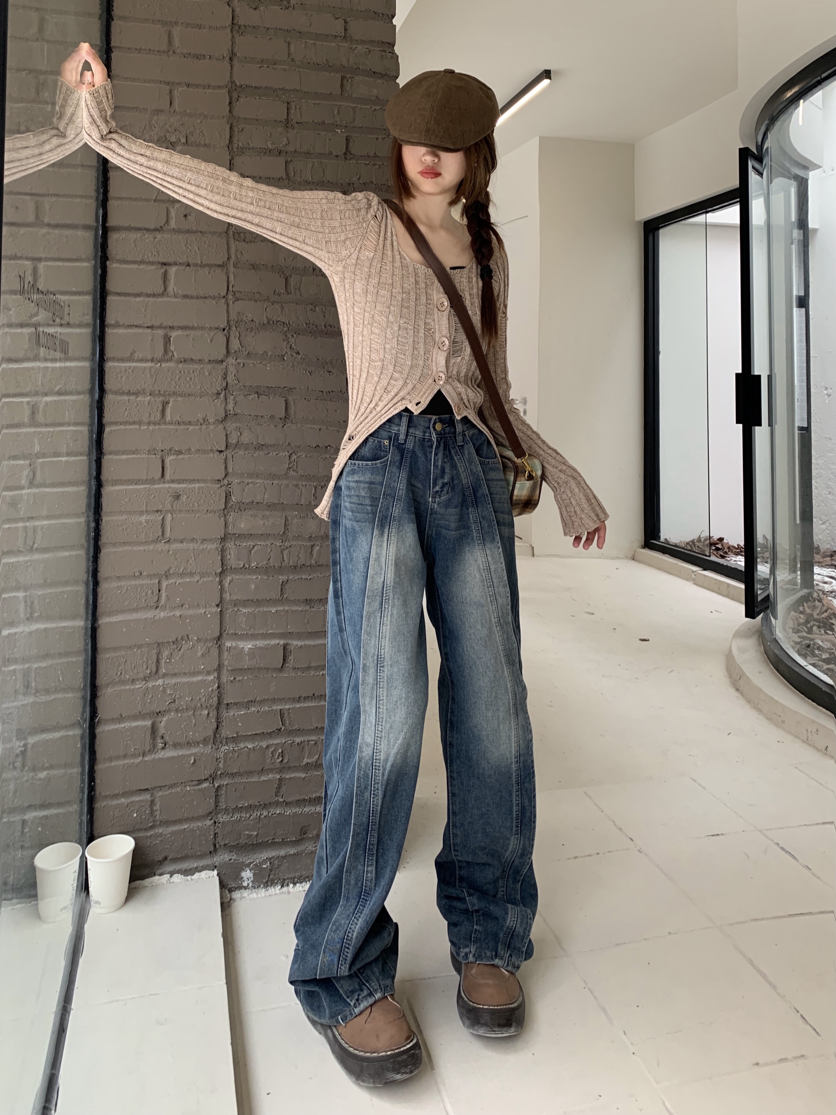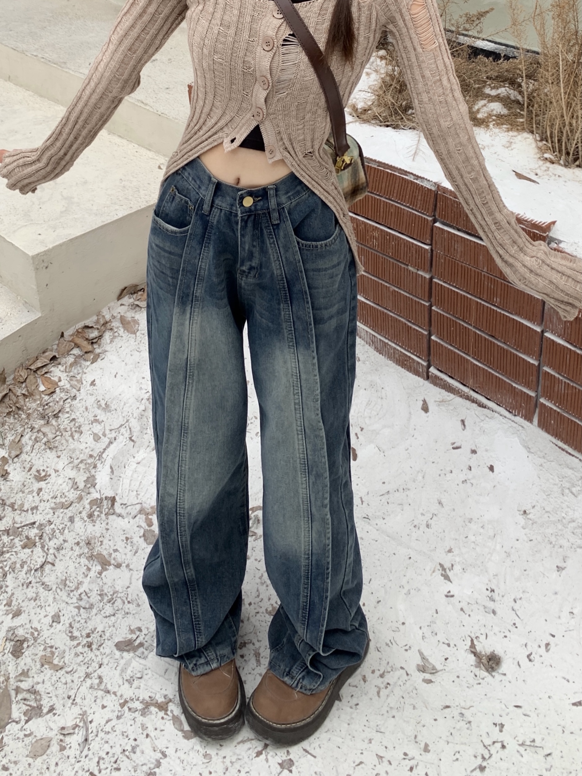 RM30096#cityboy拼接牛仔裤宽松高级感小众高街阔腿直筒长裤