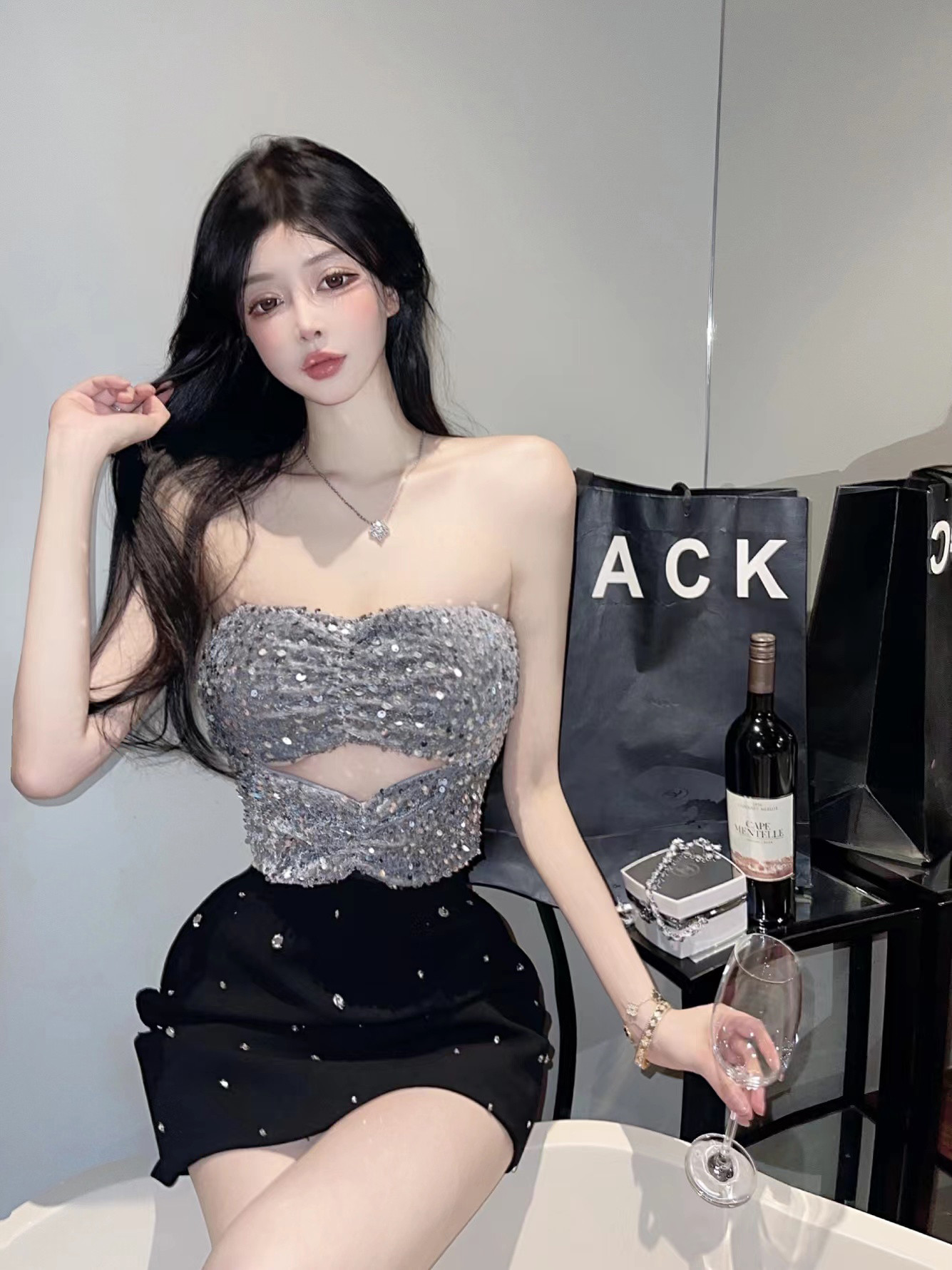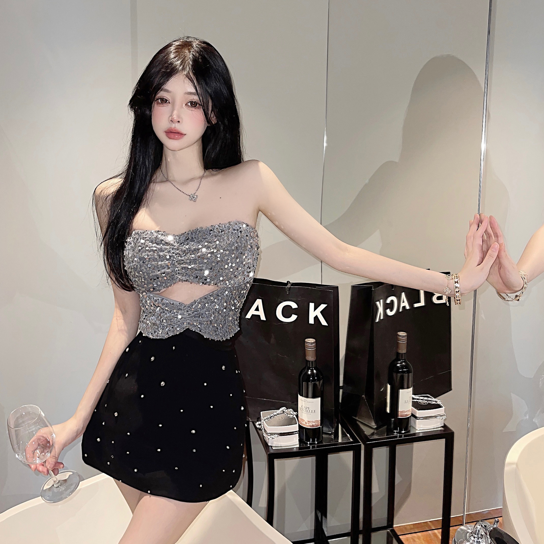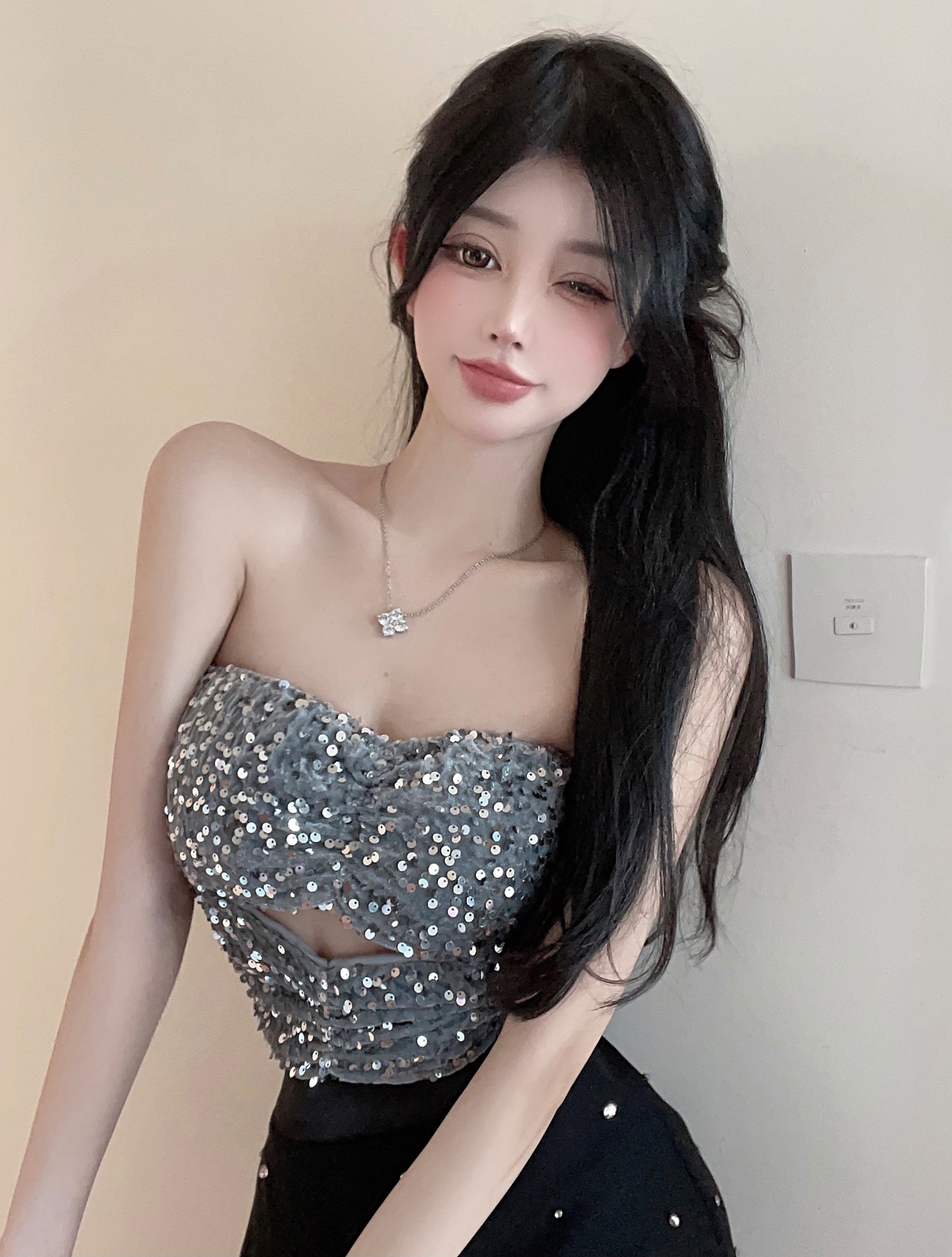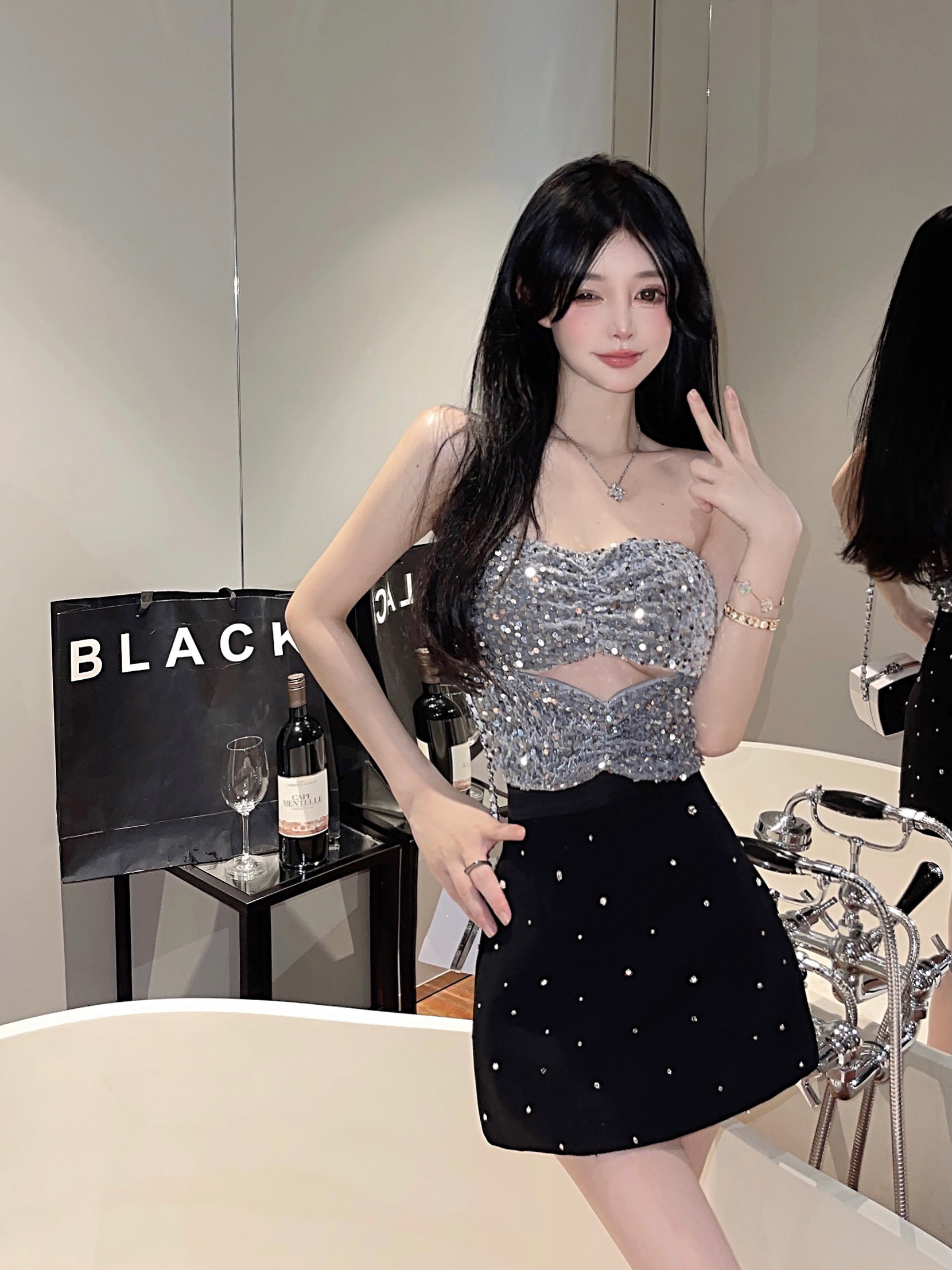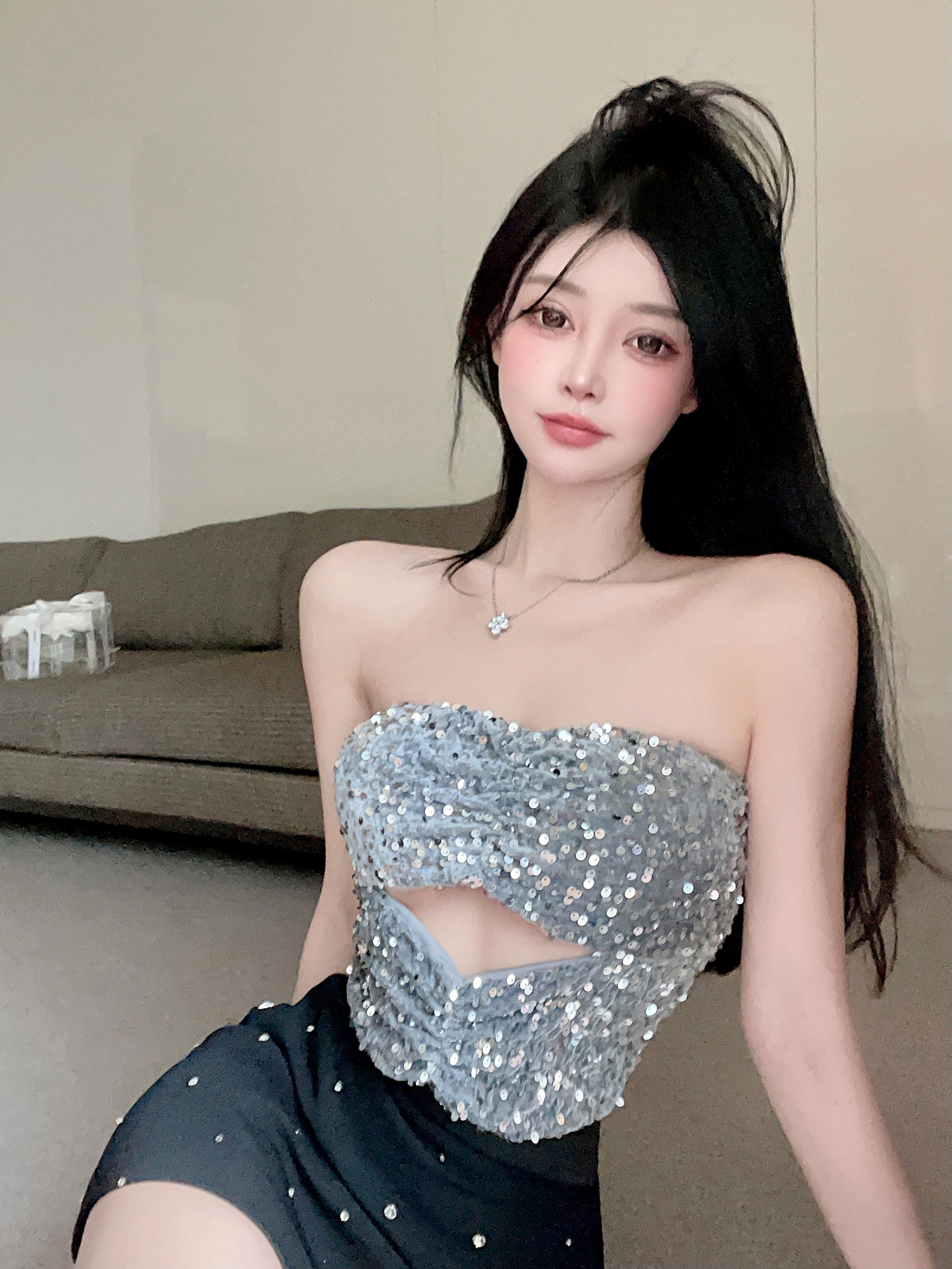 银色亮片抹胸