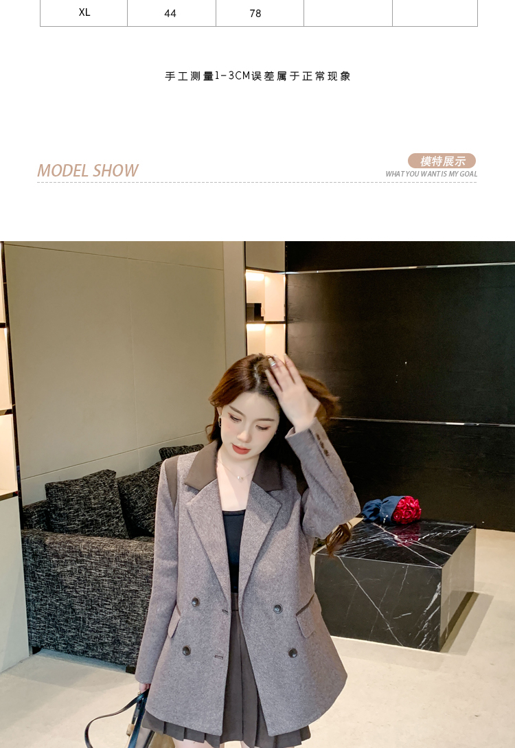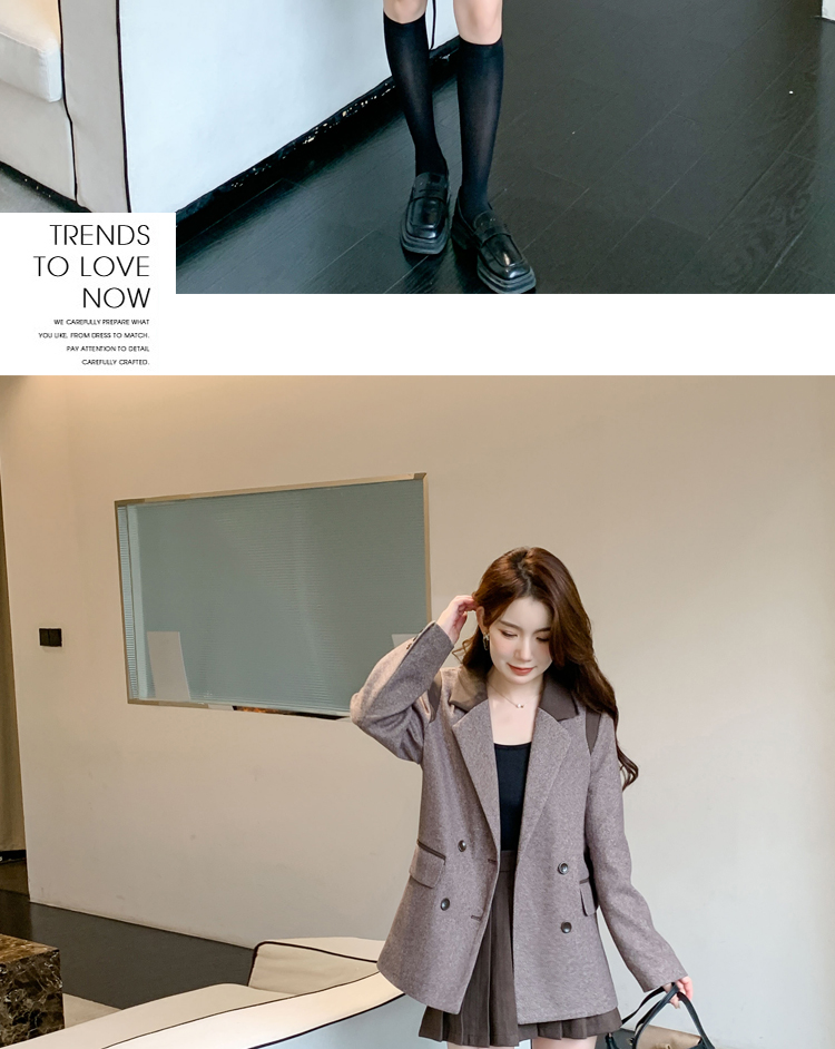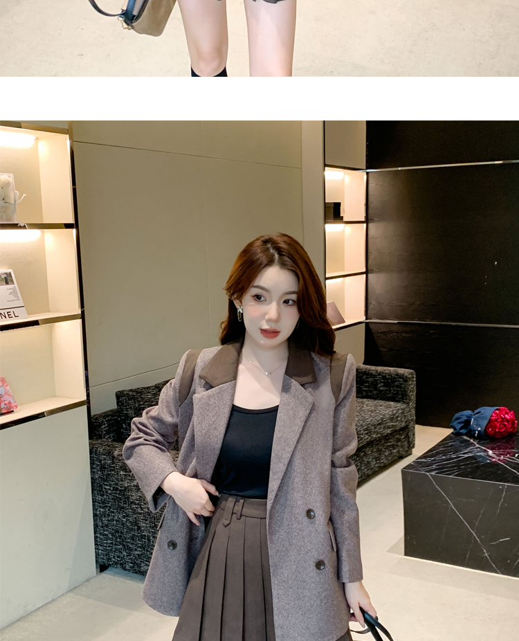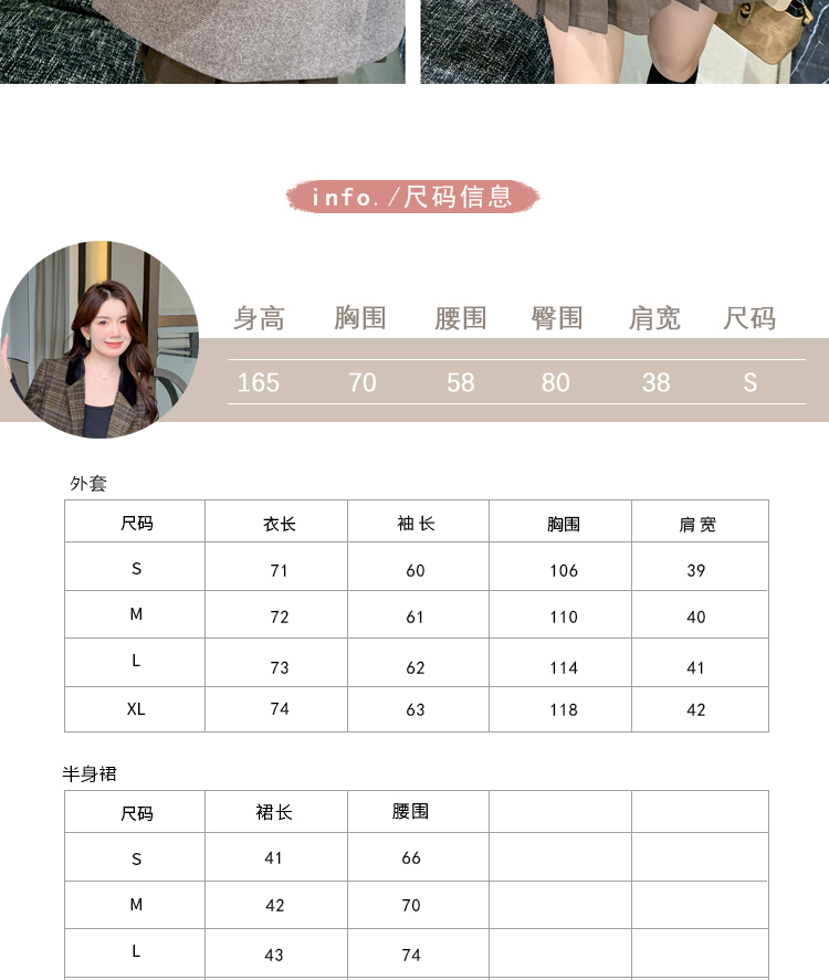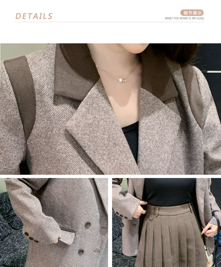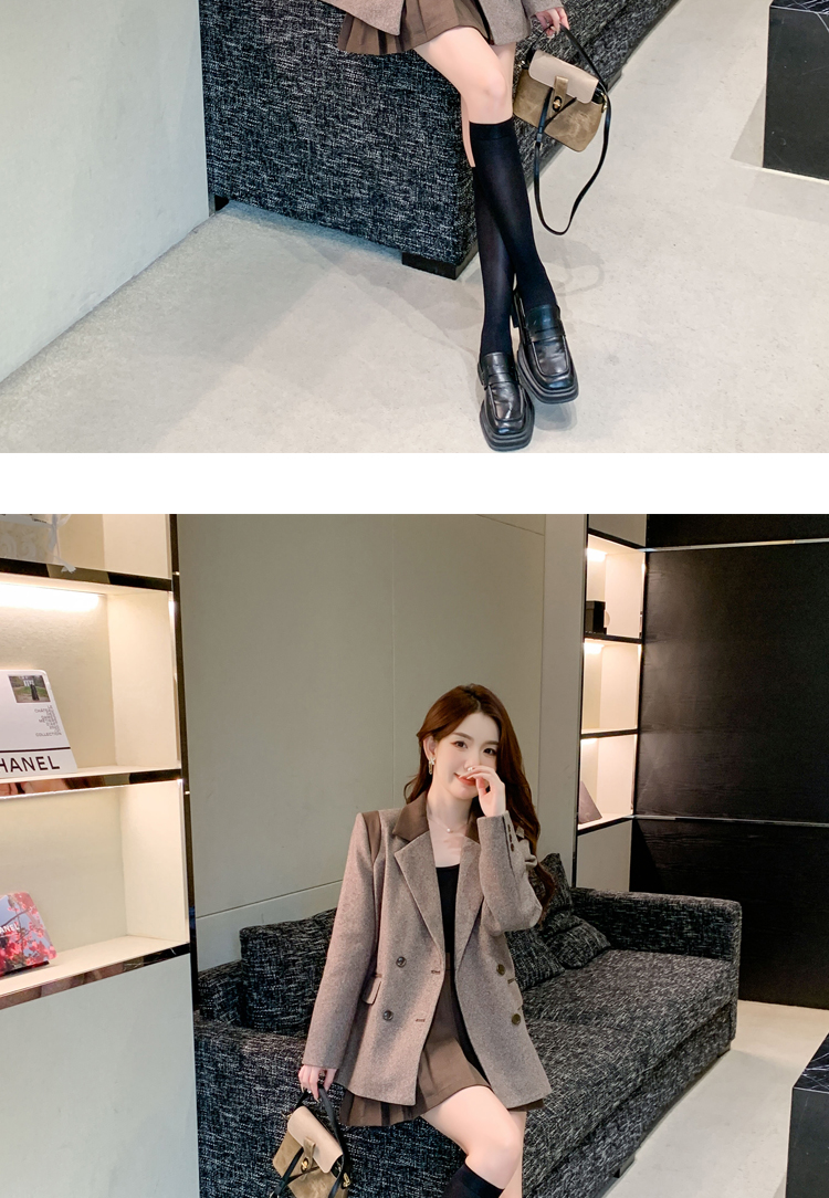 RM30144#新款夹棉人字纹毛呢西装外套百褶半身裙套装女