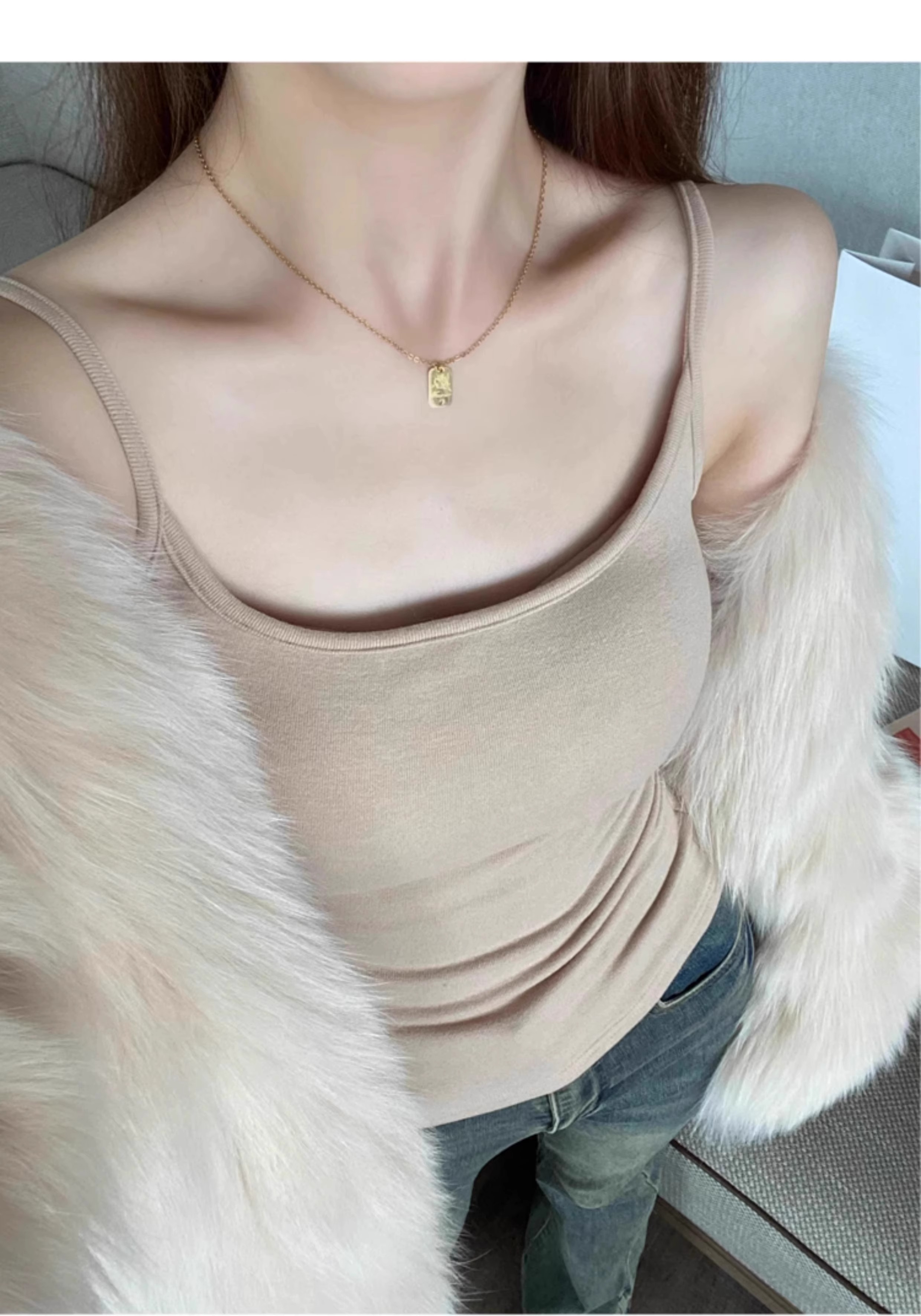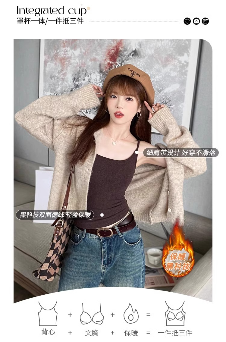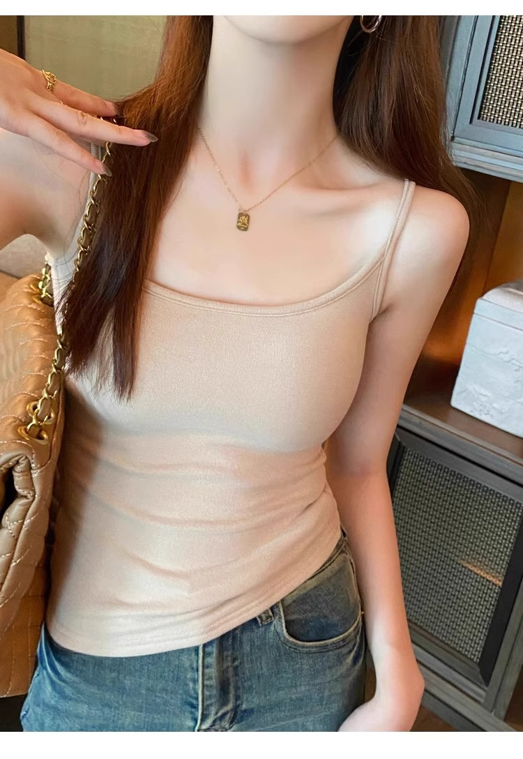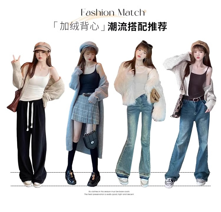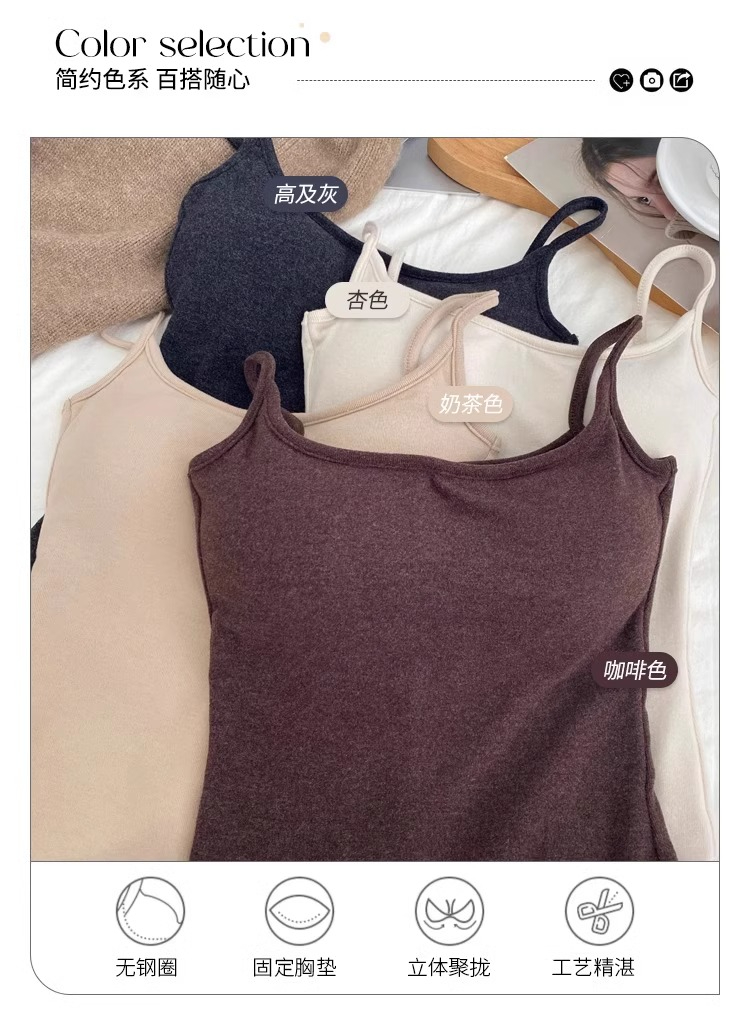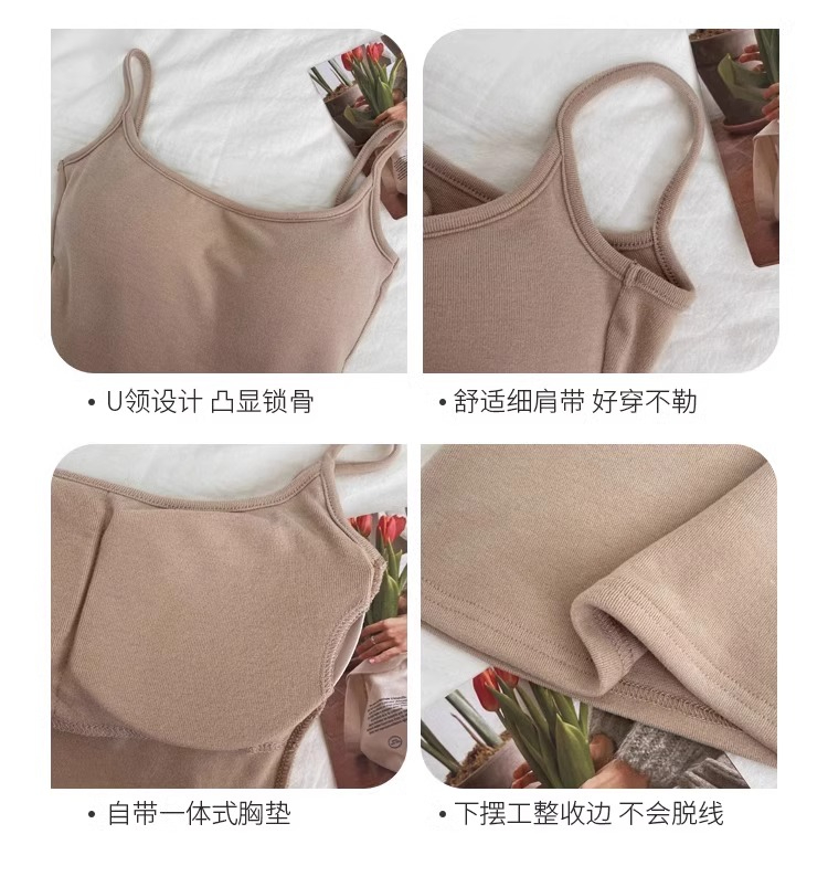 RM30173#加绒吊带内搭女秋冬德绒保暖背心带胸垫2023新款纯棉磨毛打底上衣