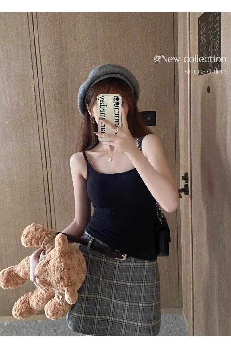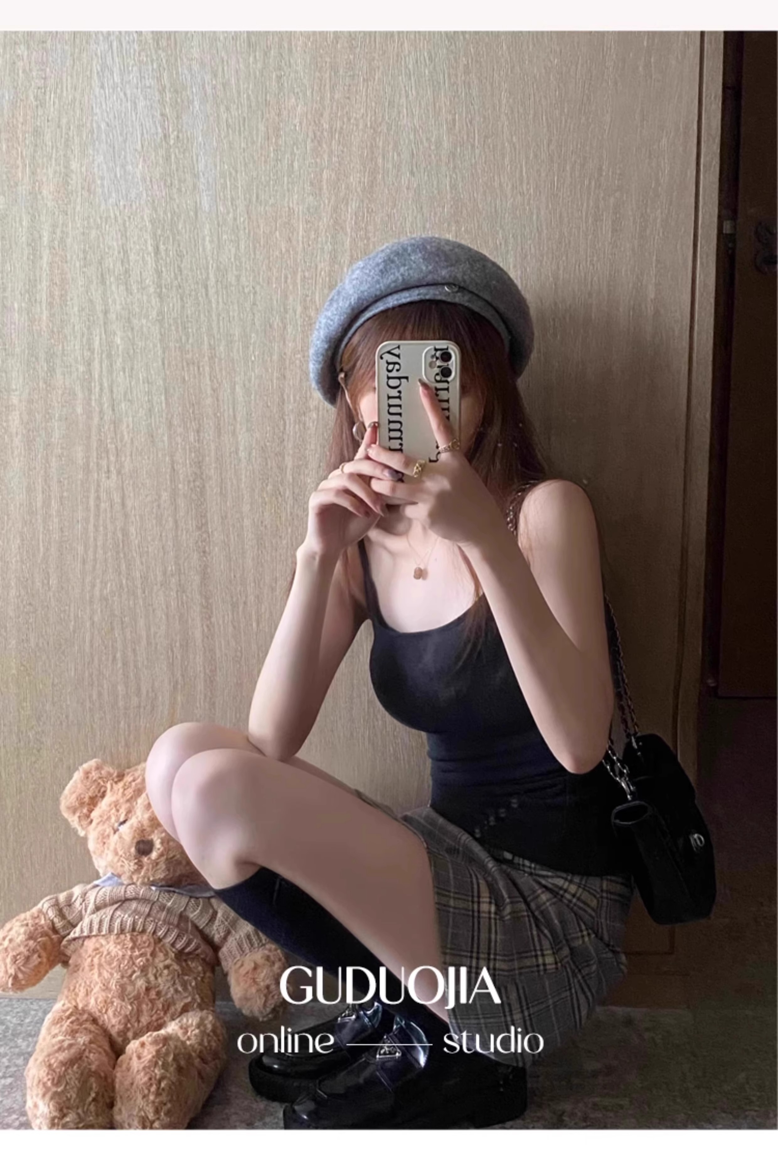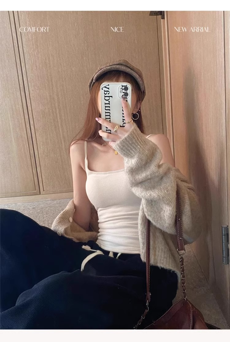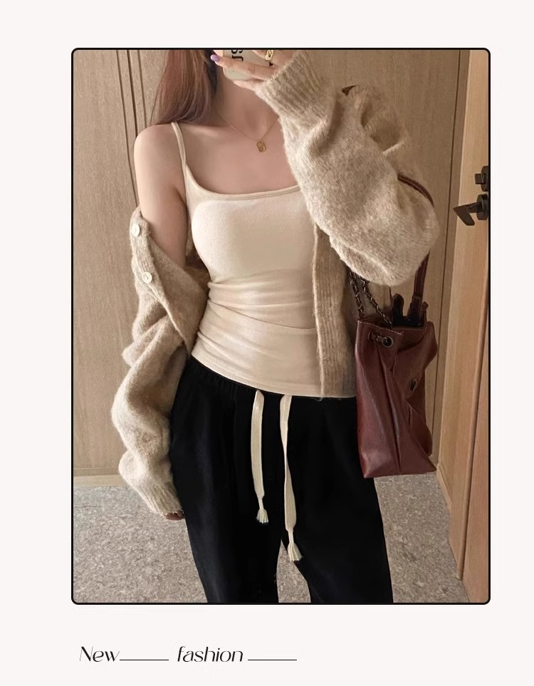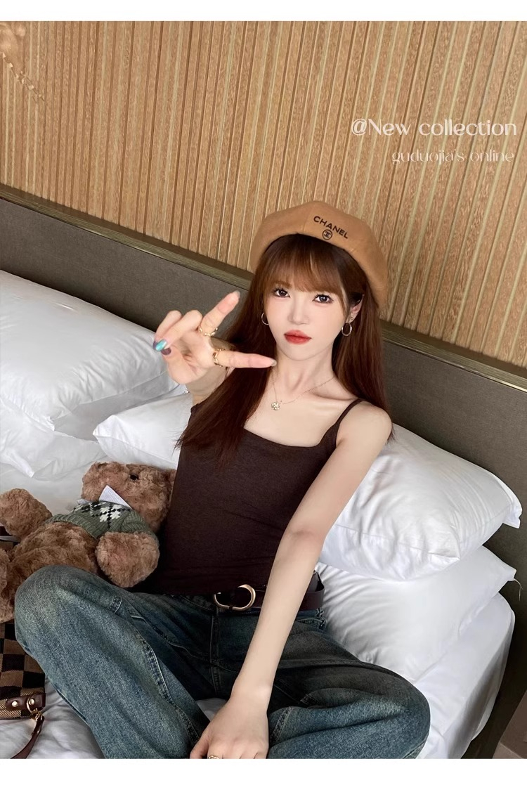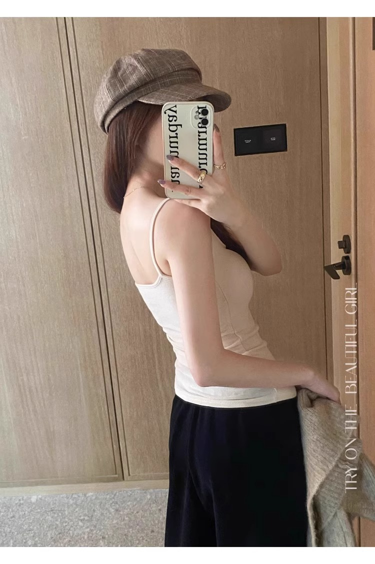RM30173#加绒吊带内搭女秋冬德绒保暖背心带胸垫2023新款纯棉磨毛打底上衣