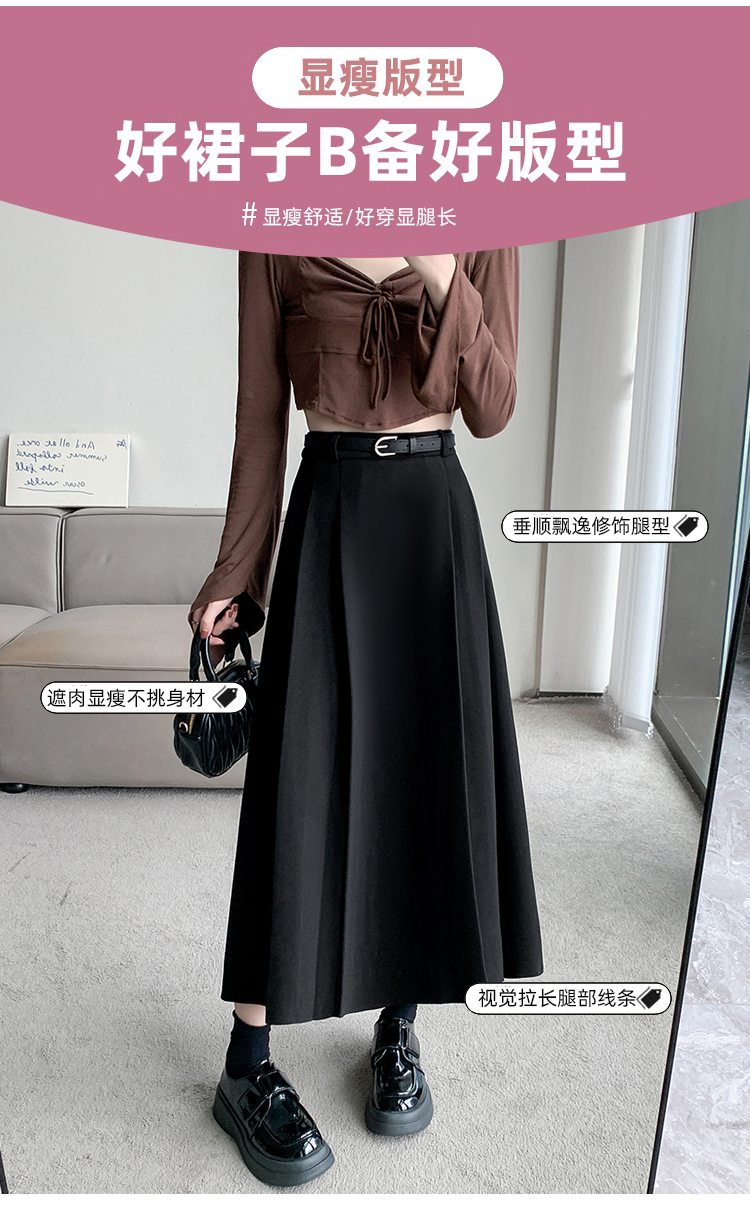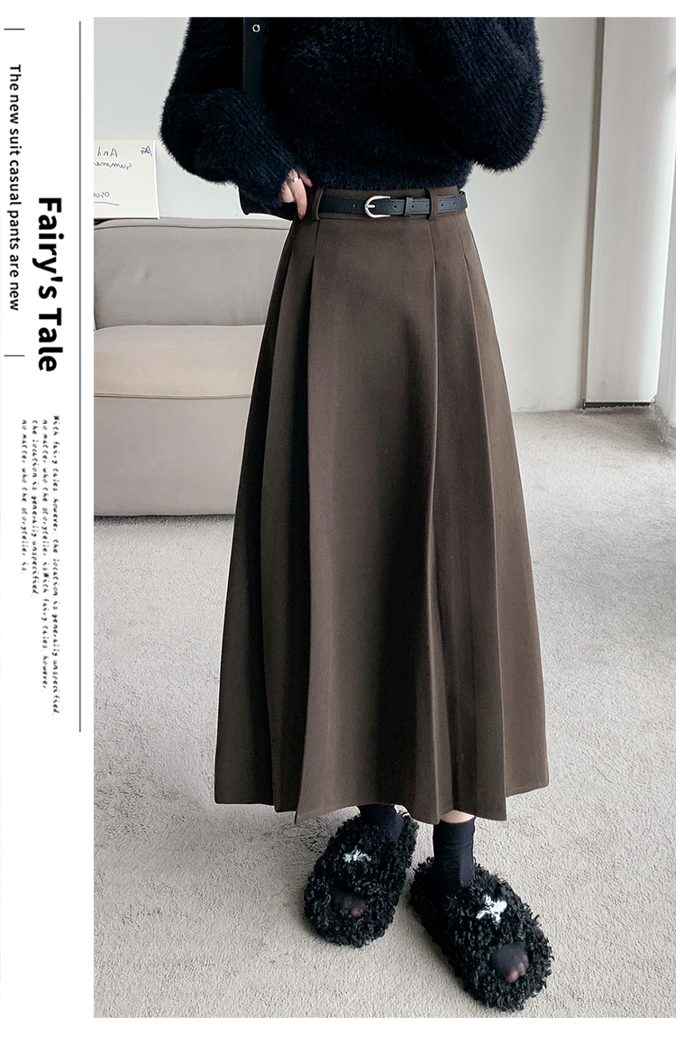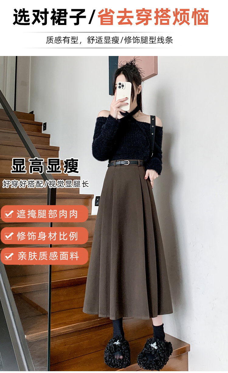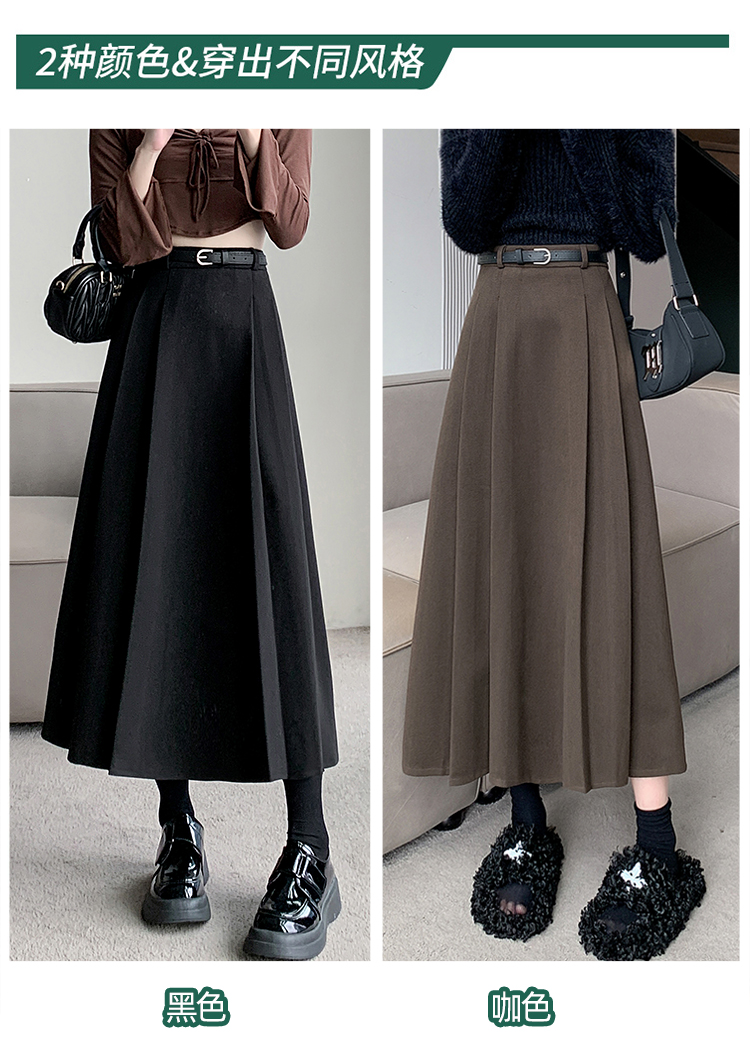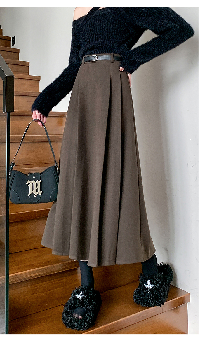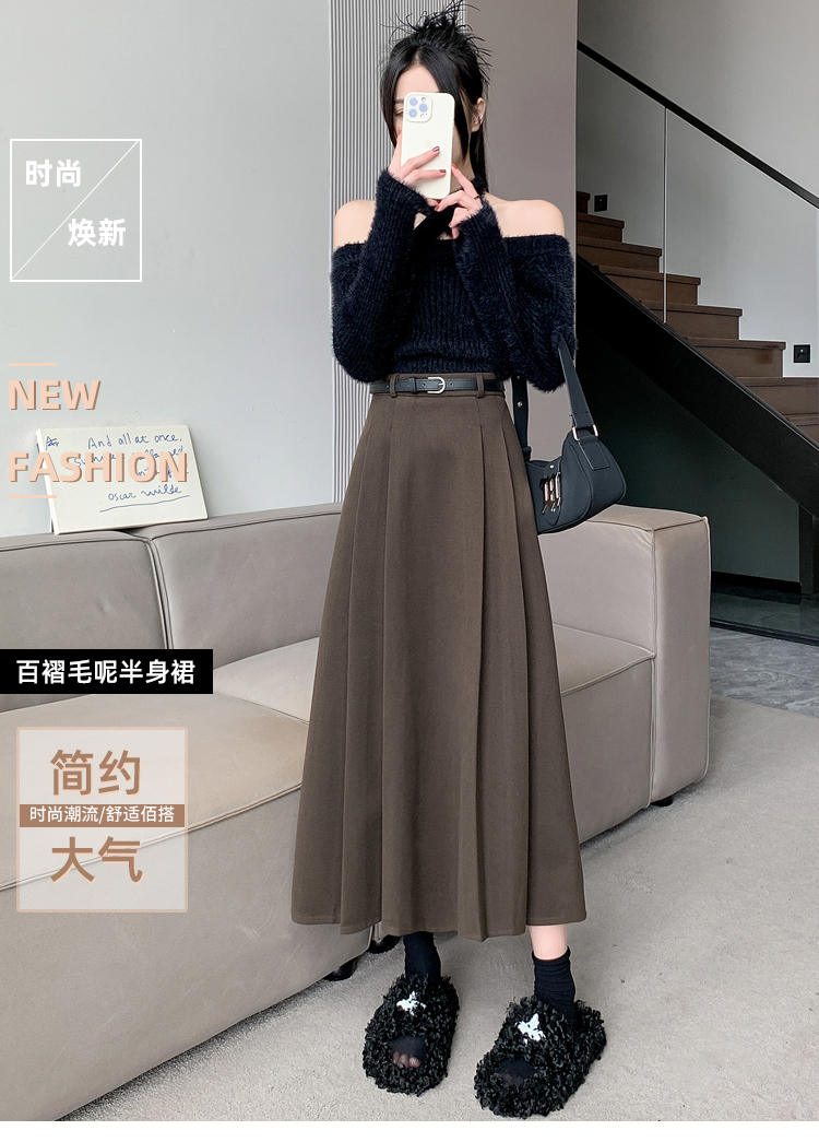 RM30420#毛呢高腰百褶裙女2023秋冬新款显瘦半身裙休闲中长款a字裙子