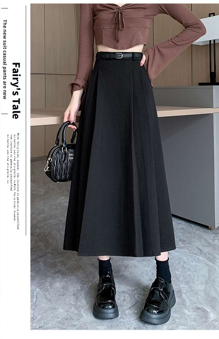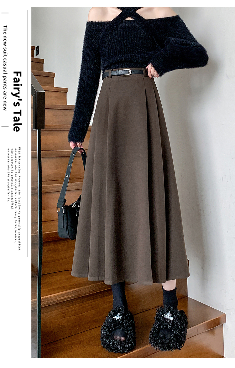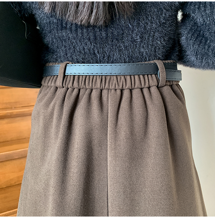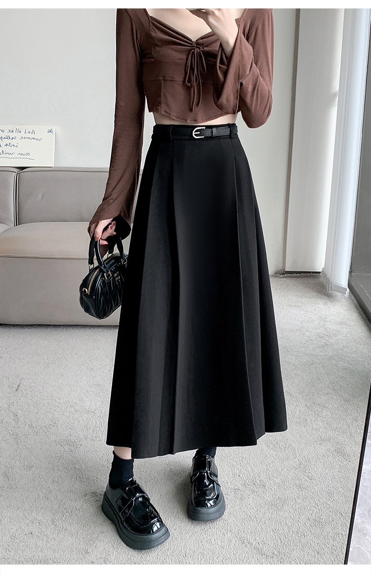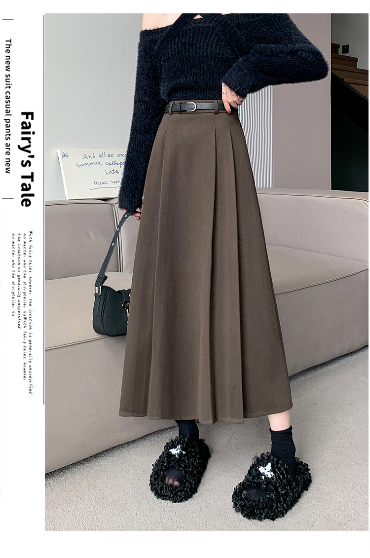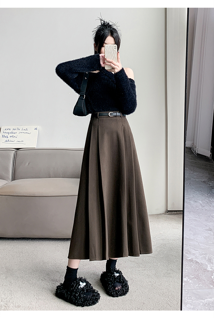 RM30420#毛呢高腰百褶裙女2023秋冬新款显瘦半身裙休闲中长款a字裙子