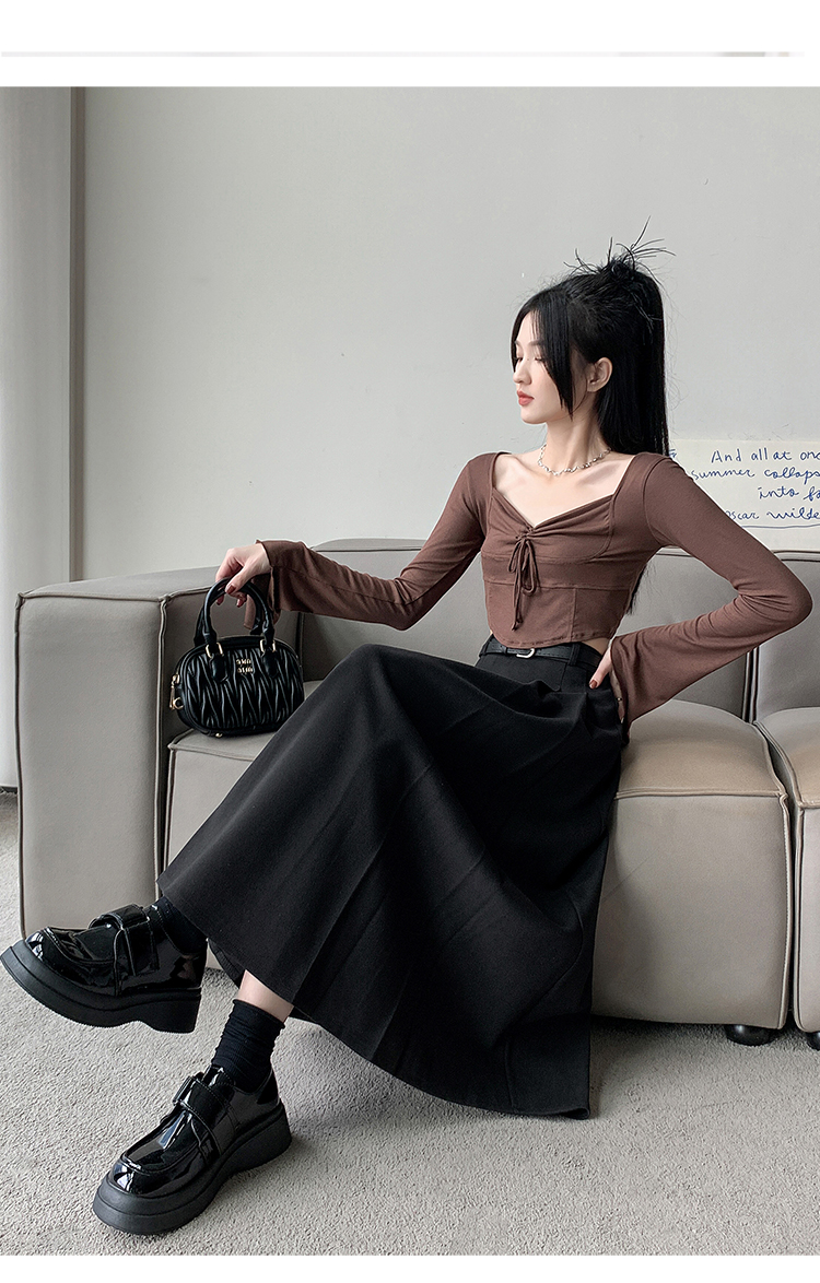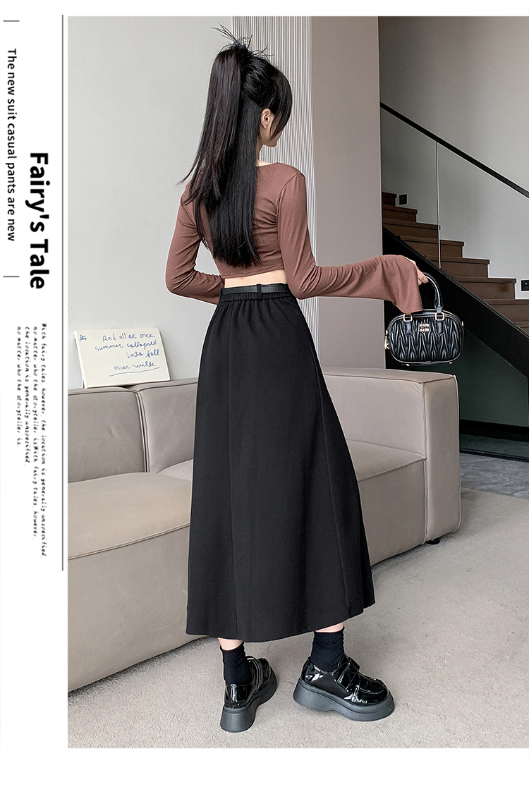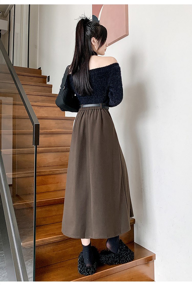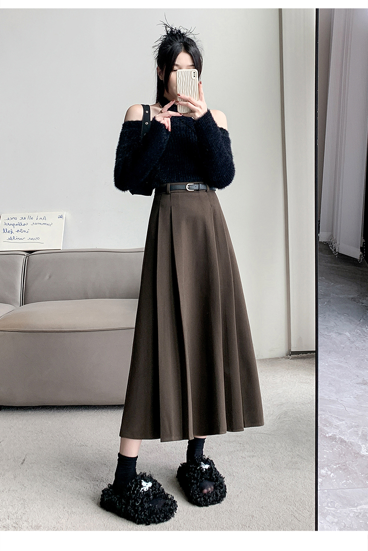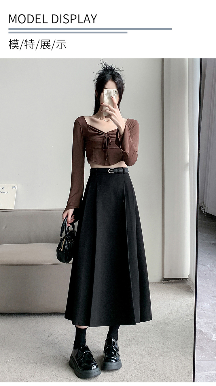 RM30420#毛呢高腰百褶裙女2023秋冬新款显瘦半身裙休闲中长款a字裙子
