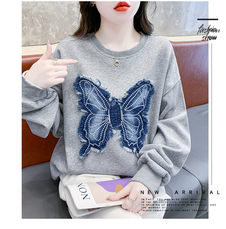 RM30495#小众设计感立体蝴蝶结绣花长袖卫衣女2023秋新款宽松显瘦上衣