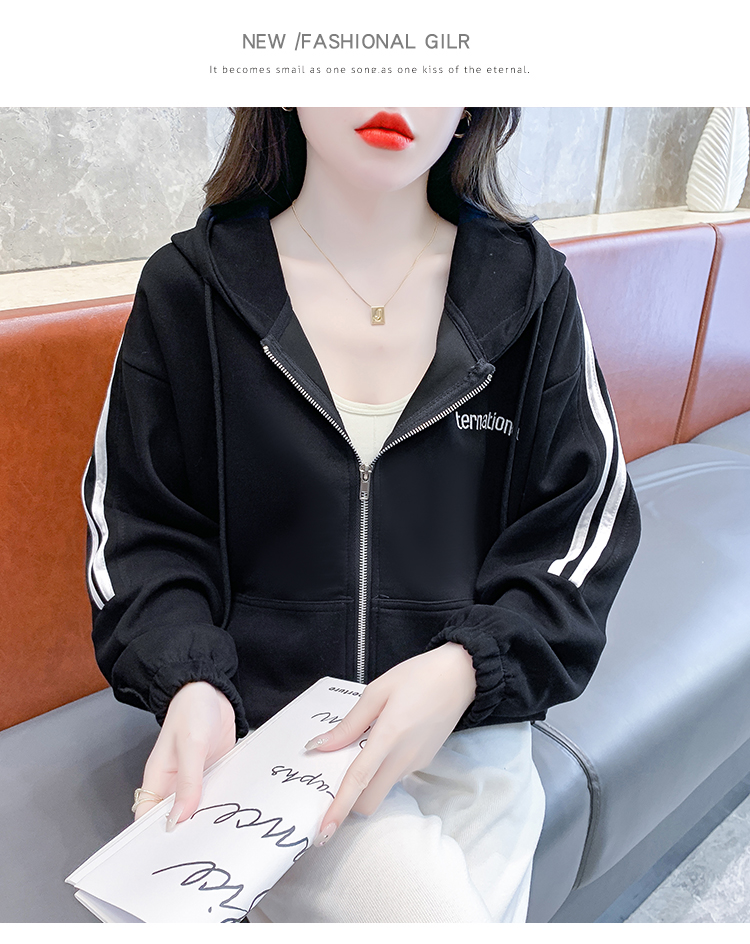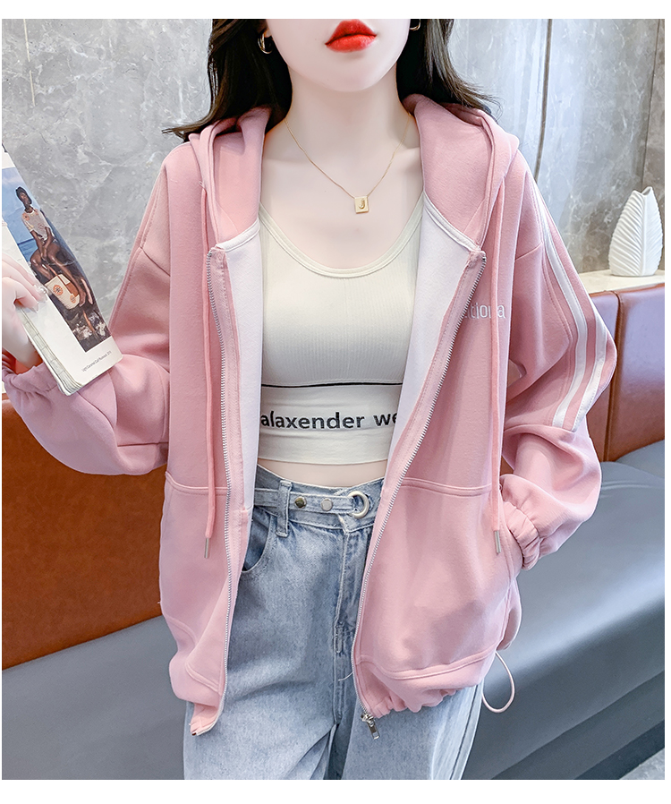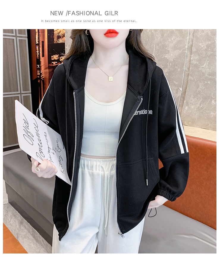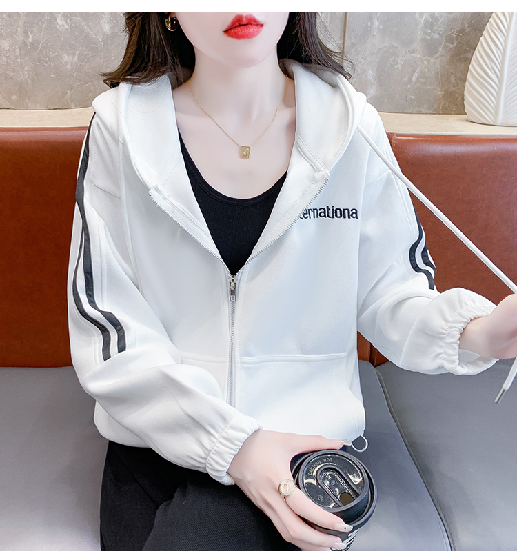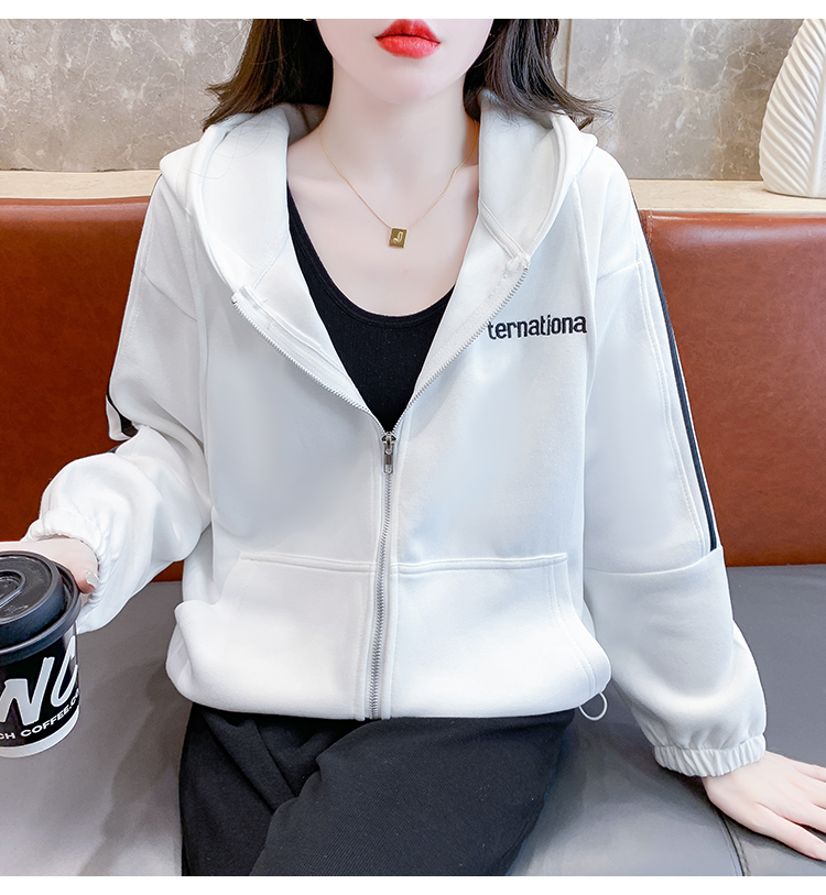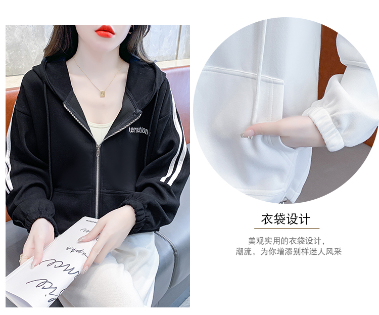 RM30496#宽松休闲连帽卫衣拉链开衫女2023秋新款时尚洋气刺绣抽绳上衣