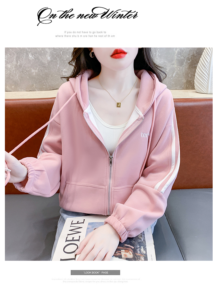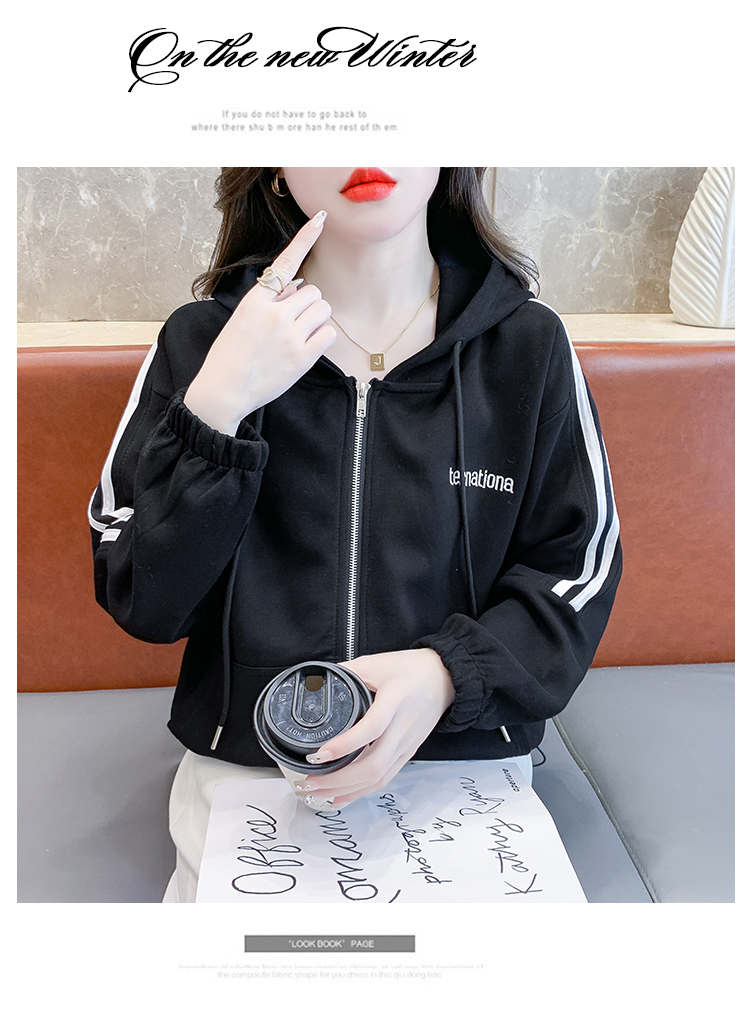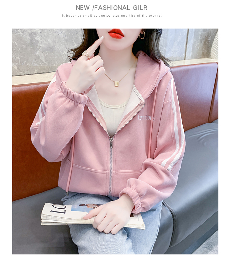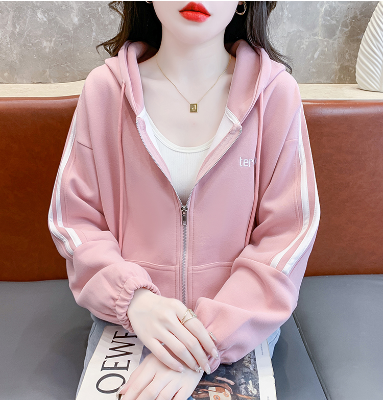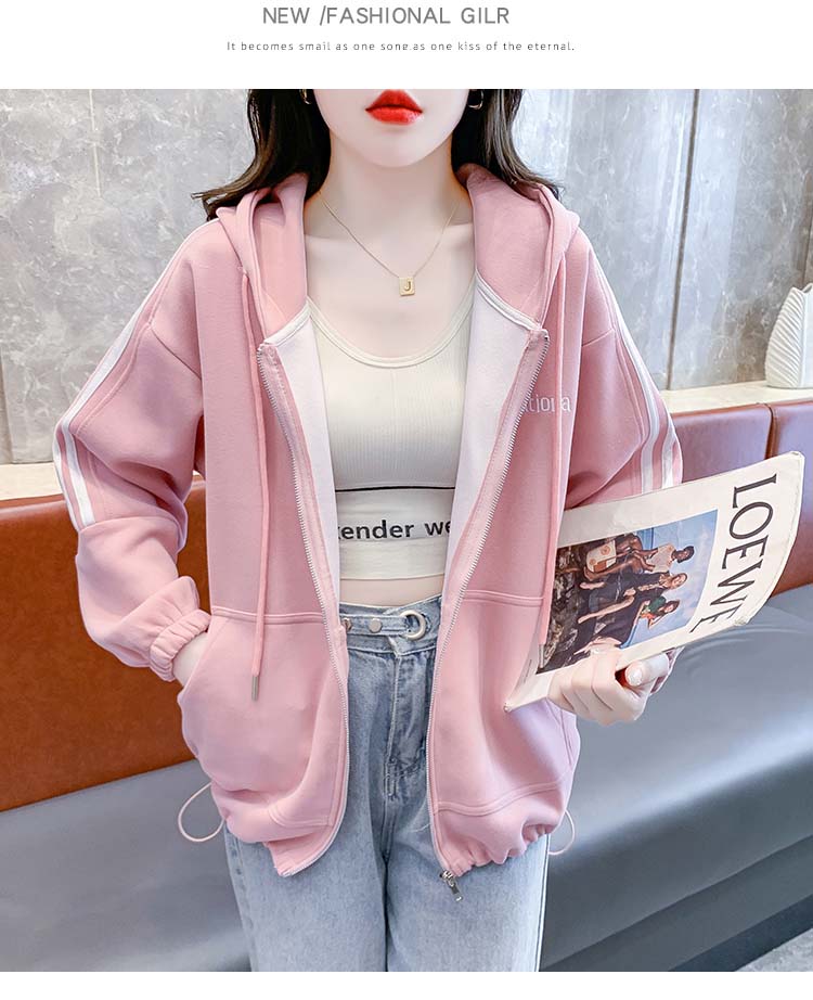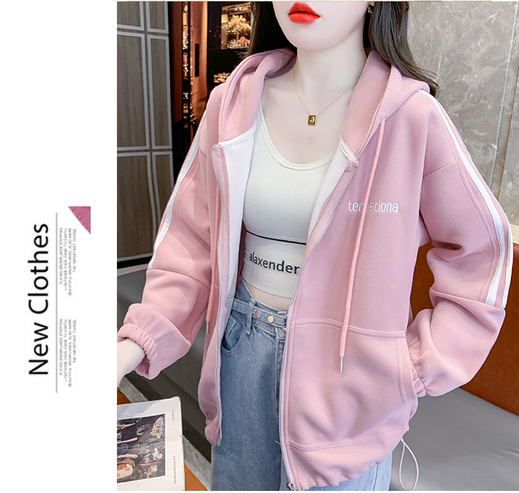 RM30496#宽松休闲连帽卫衣拉链开衫女2023秋新款时尚洋气刺绣抽绳上衣