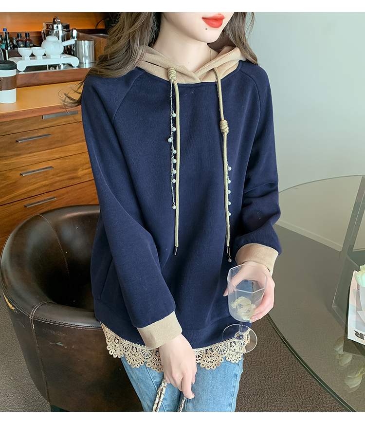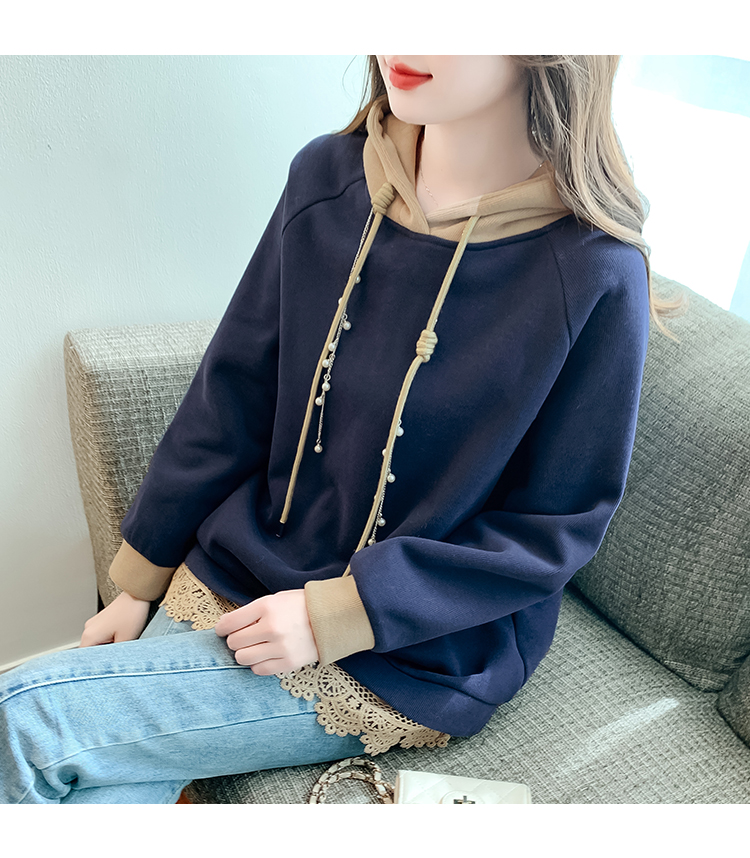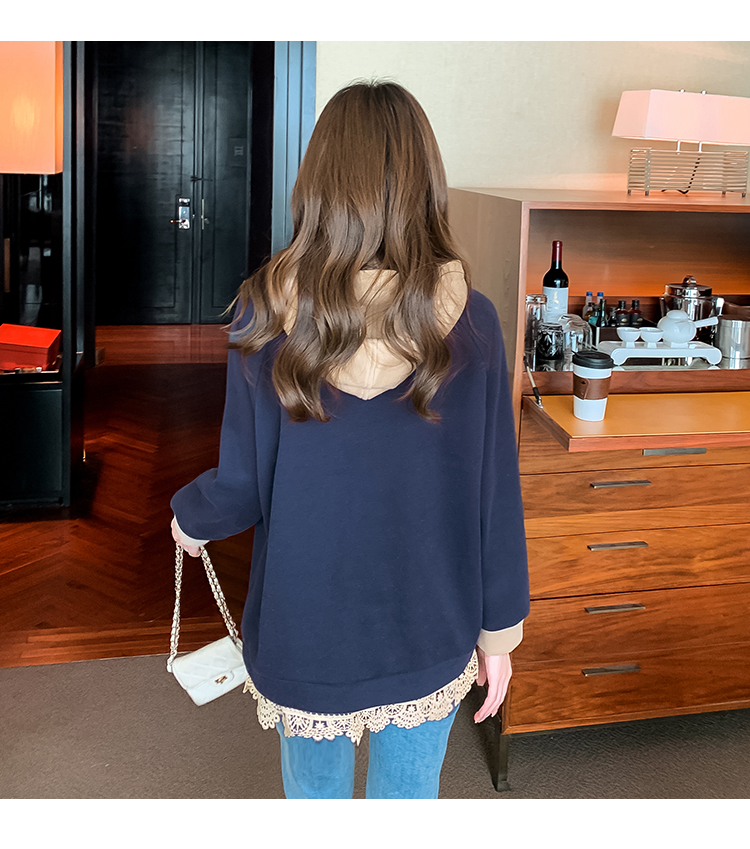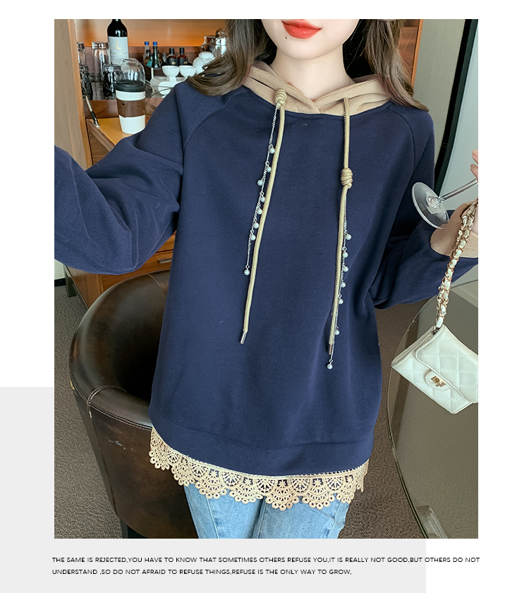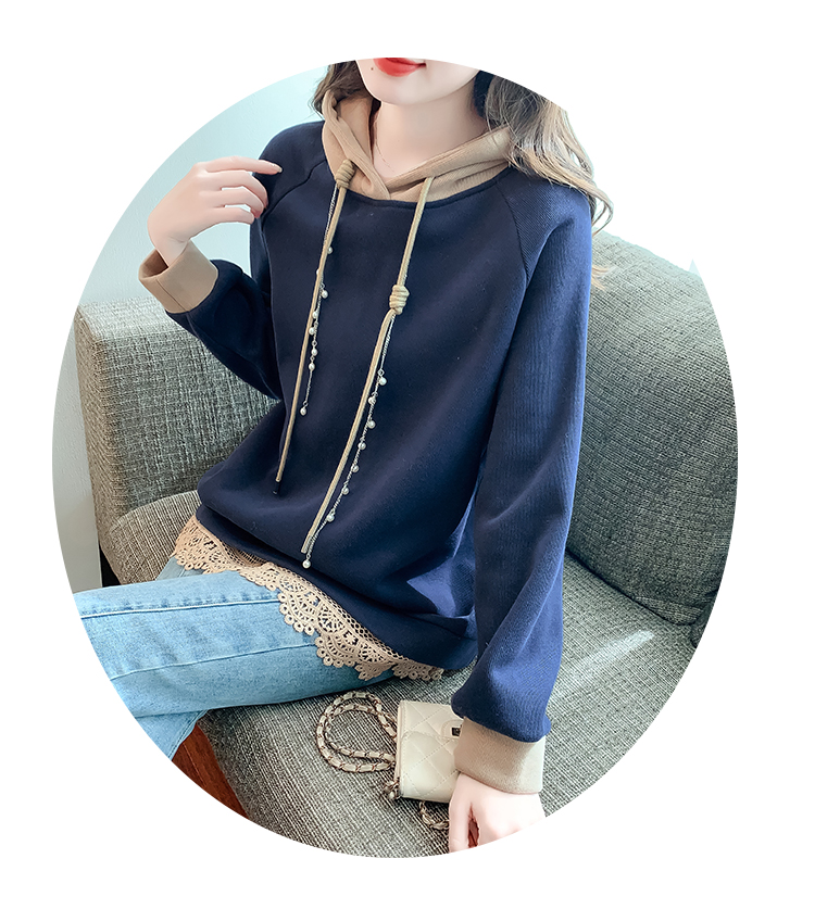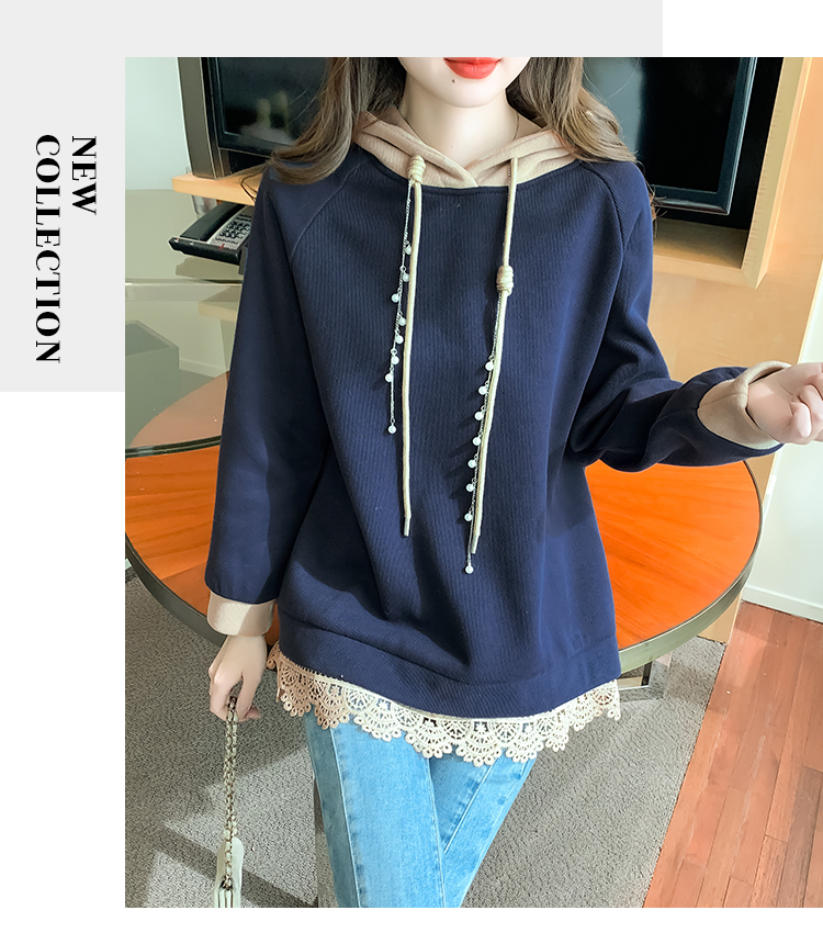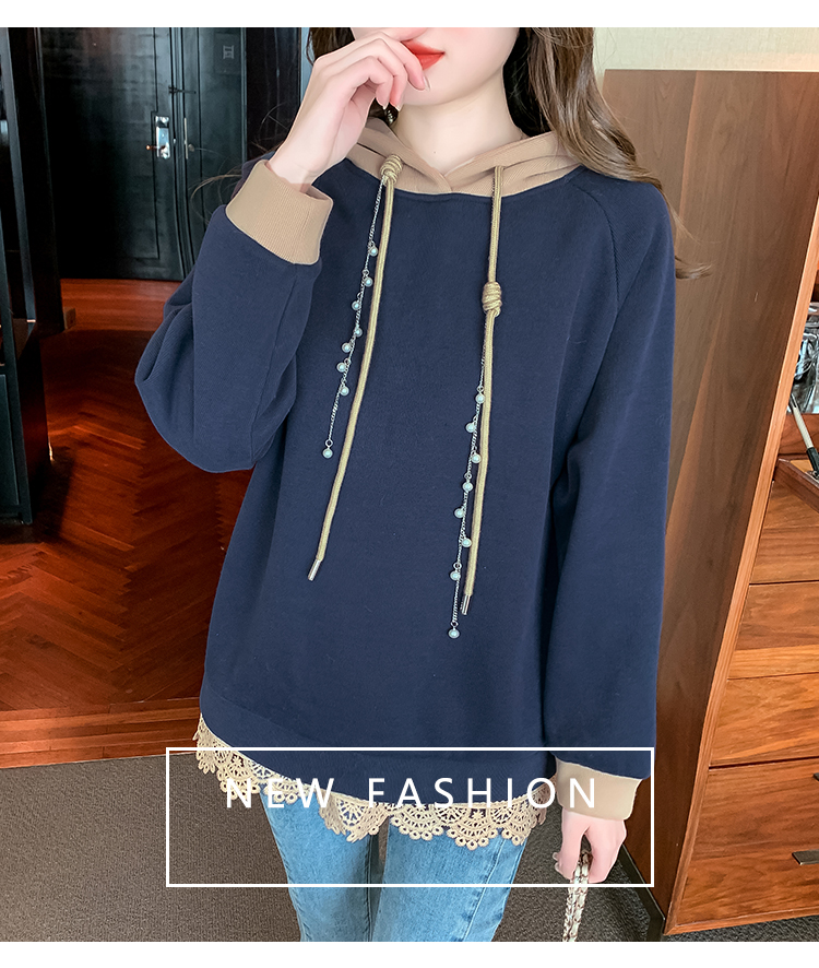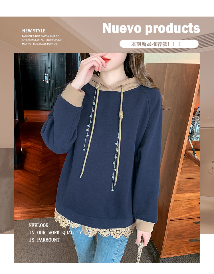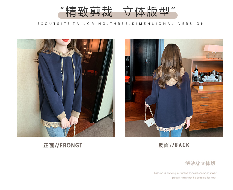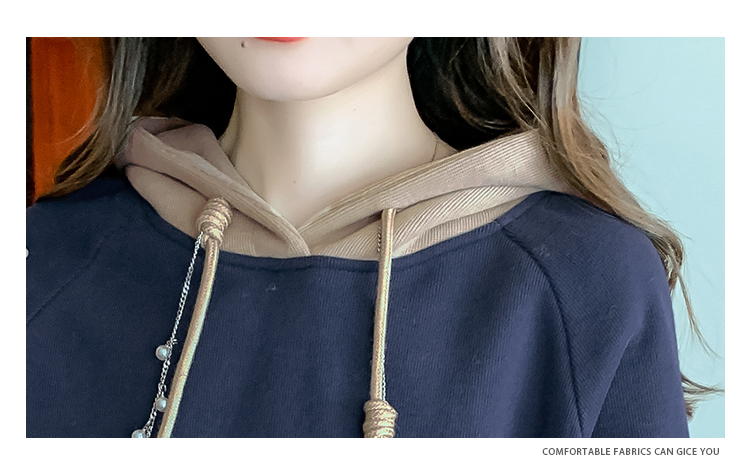RM30507#欧洲站大码新款加绒连帽拼色卫衣外套宽松胖妹妹女装秋冬装