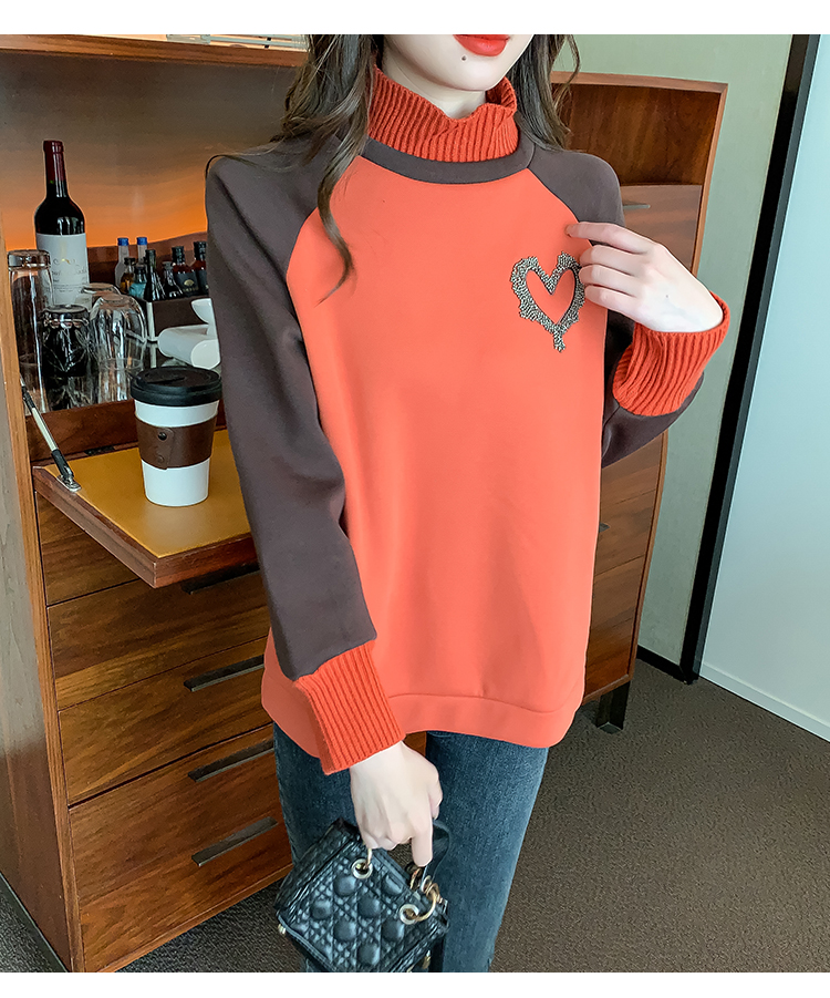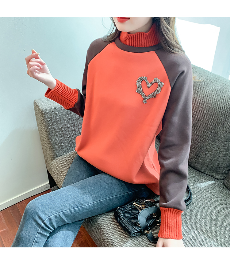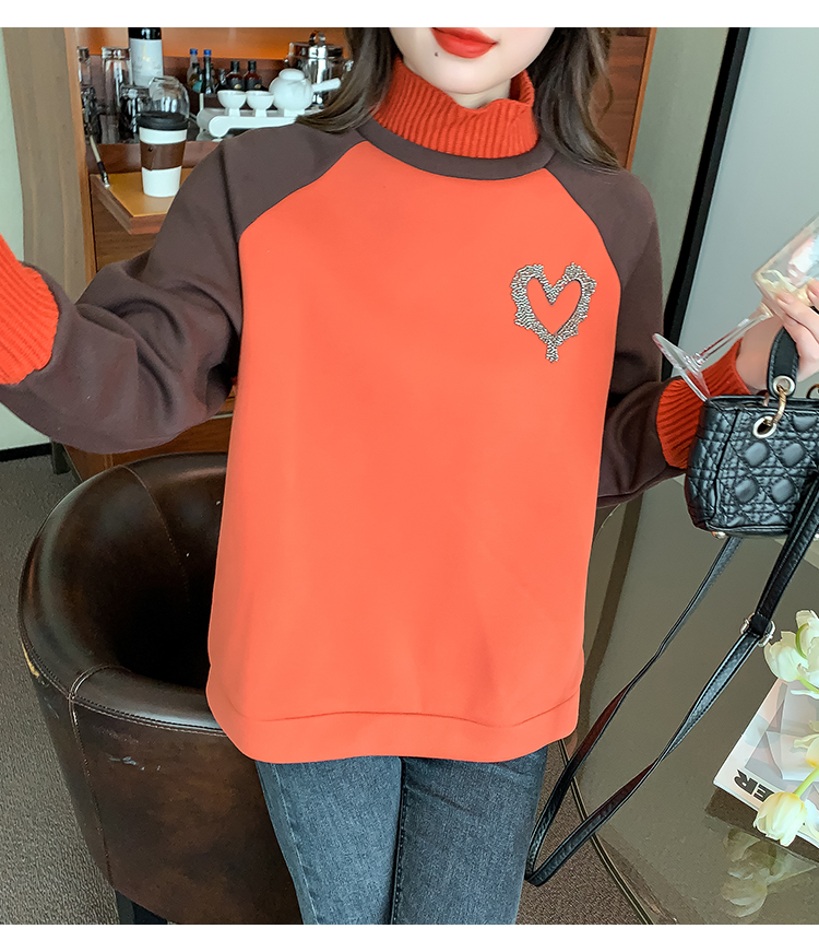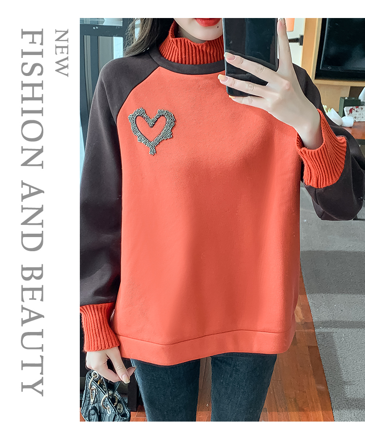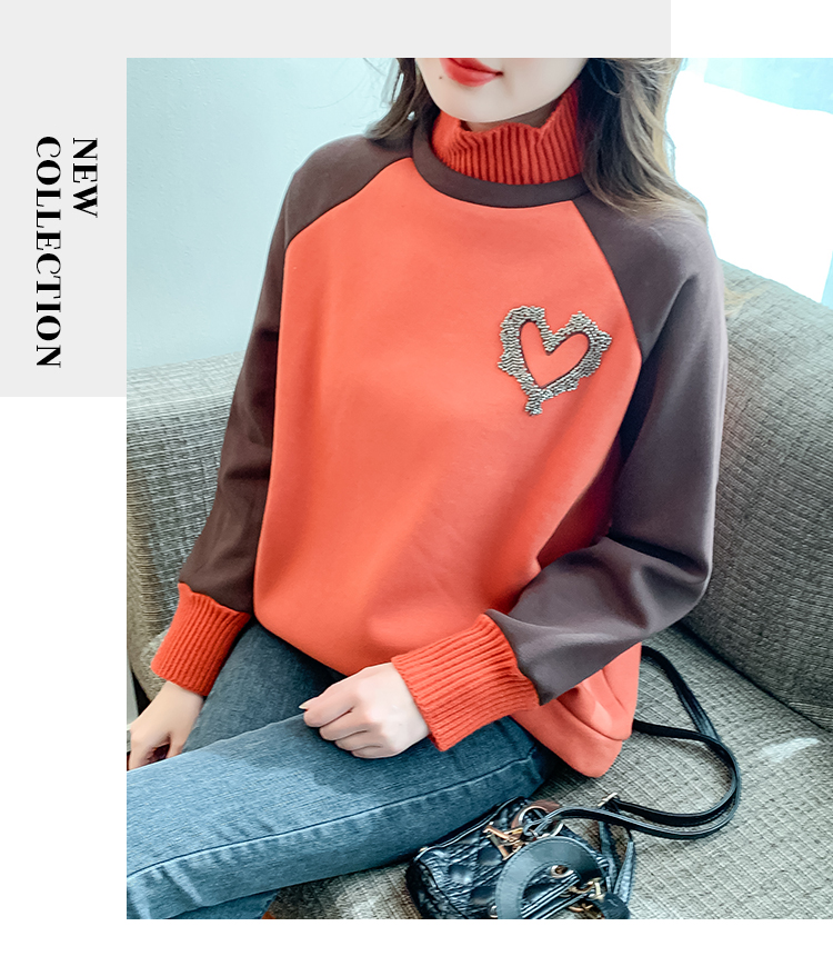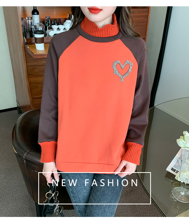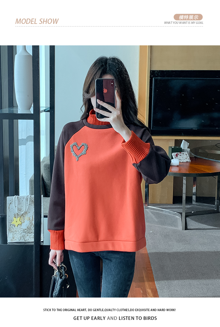 RM30510#针织半高领卫衣女秋冬加绒加厚2023年新款欧货宽松假两件上衣