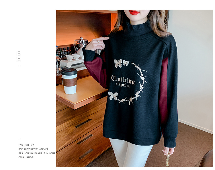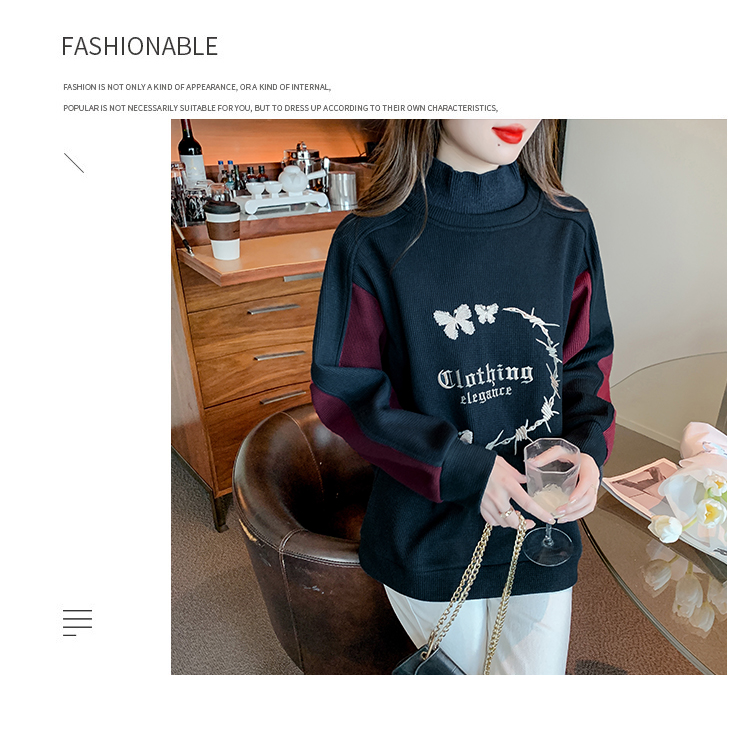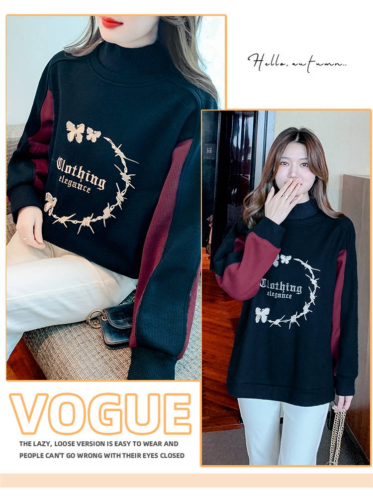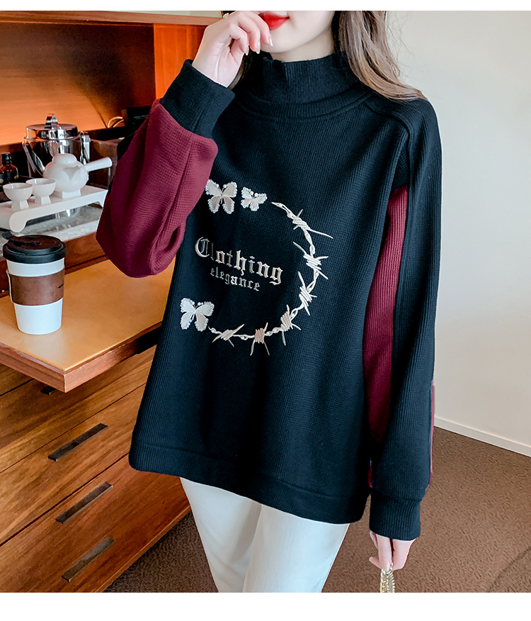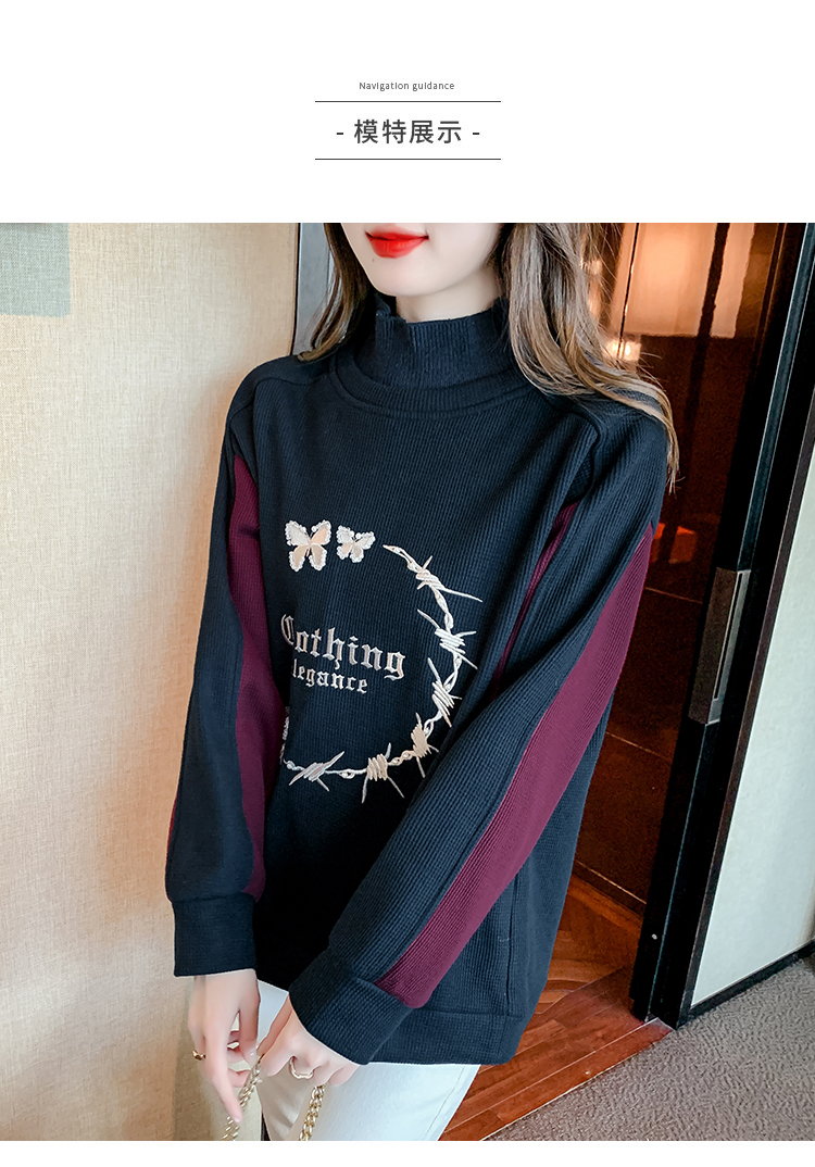 RM30511#刺绣半高领卫衣女秋冬季加绒加厚2023新款欧货宽松大码假两件上衣