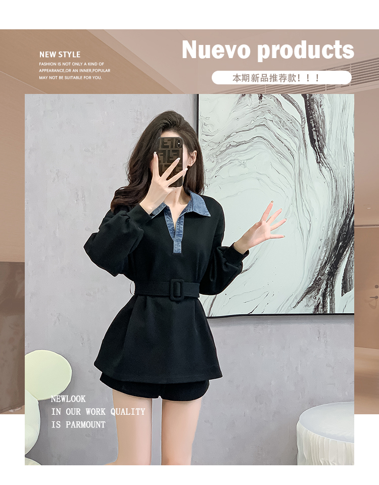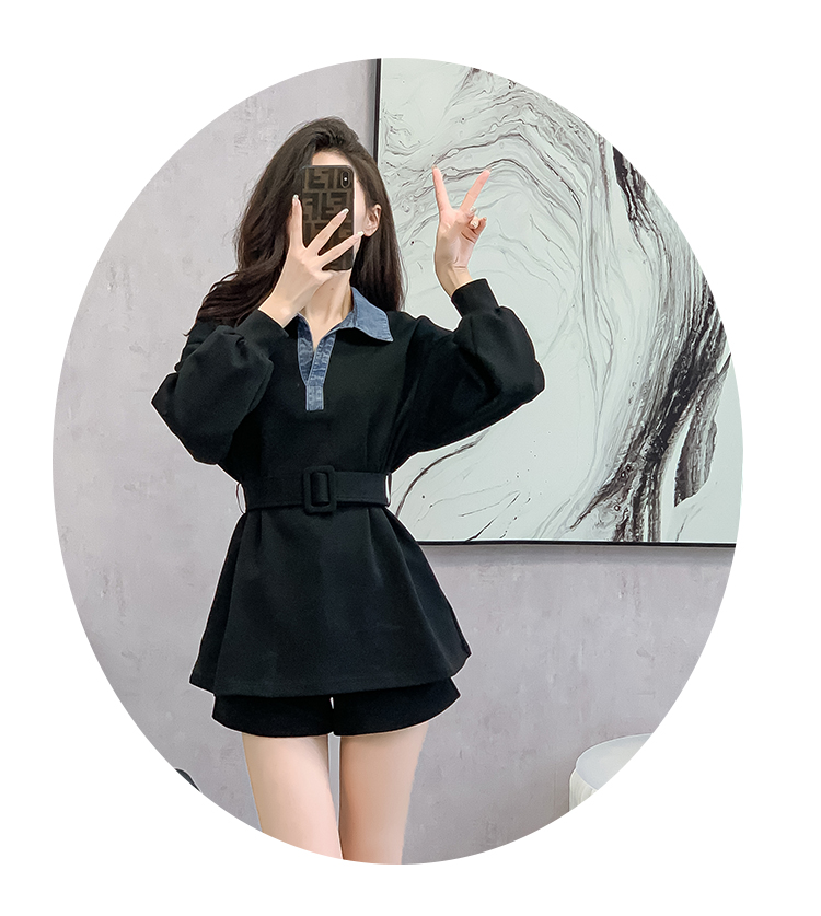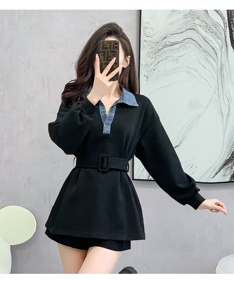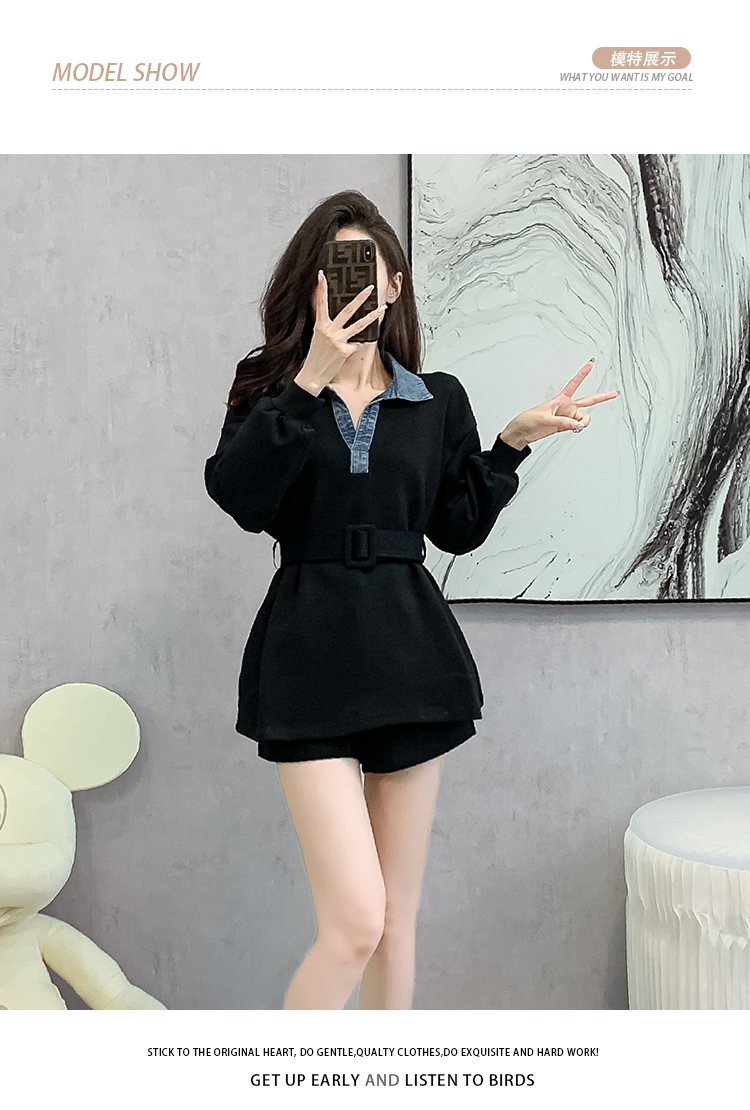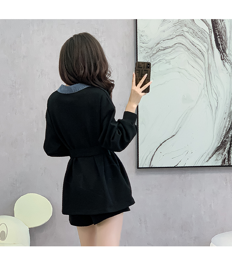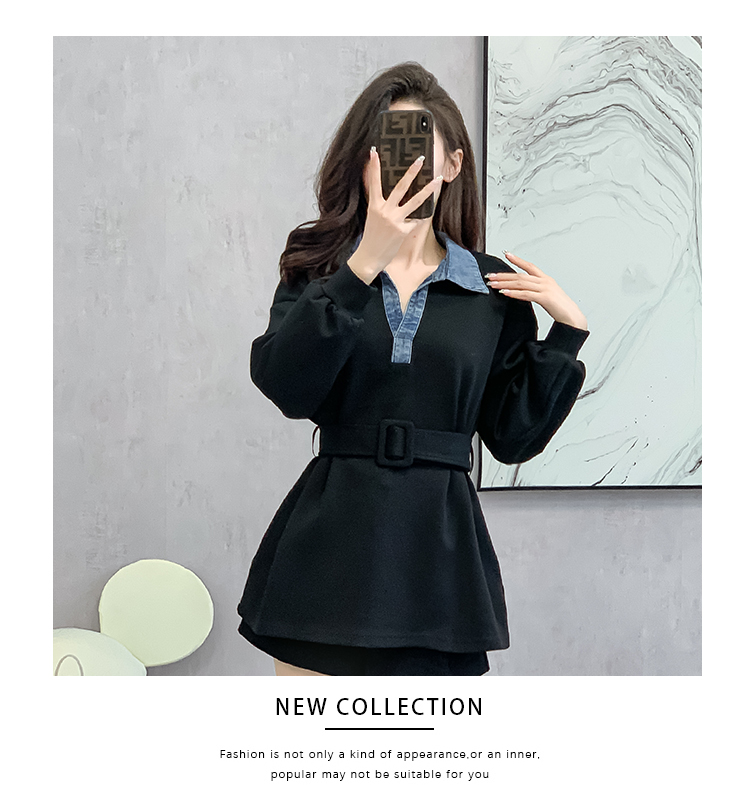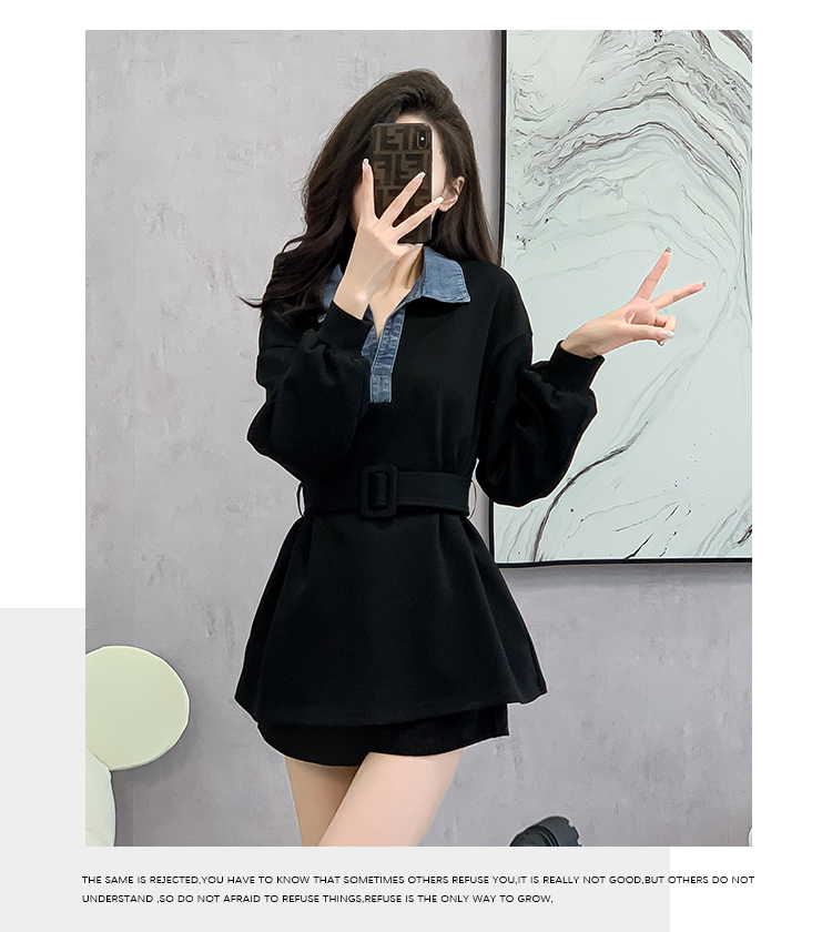 RM30513#黑色中长款遮屁股卫衣女小个子收腰法式上衣秋季2023新款欧洲站货