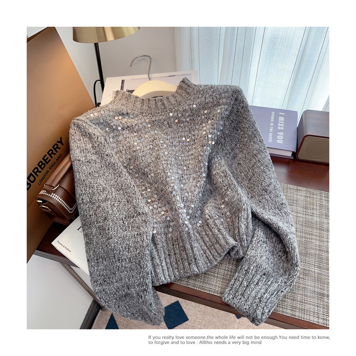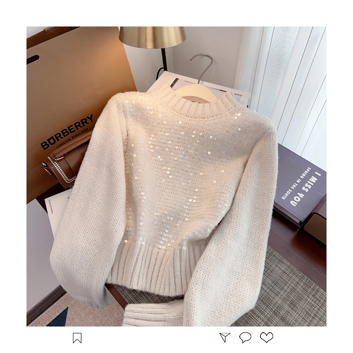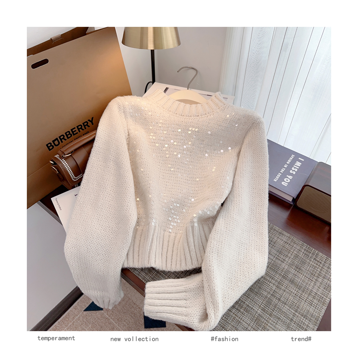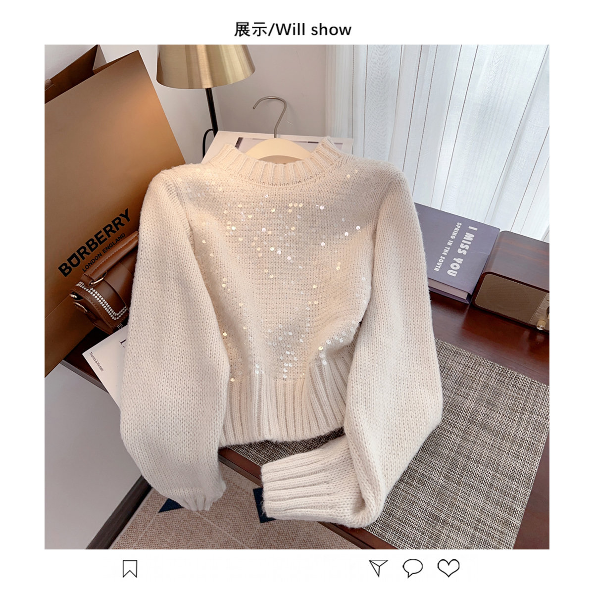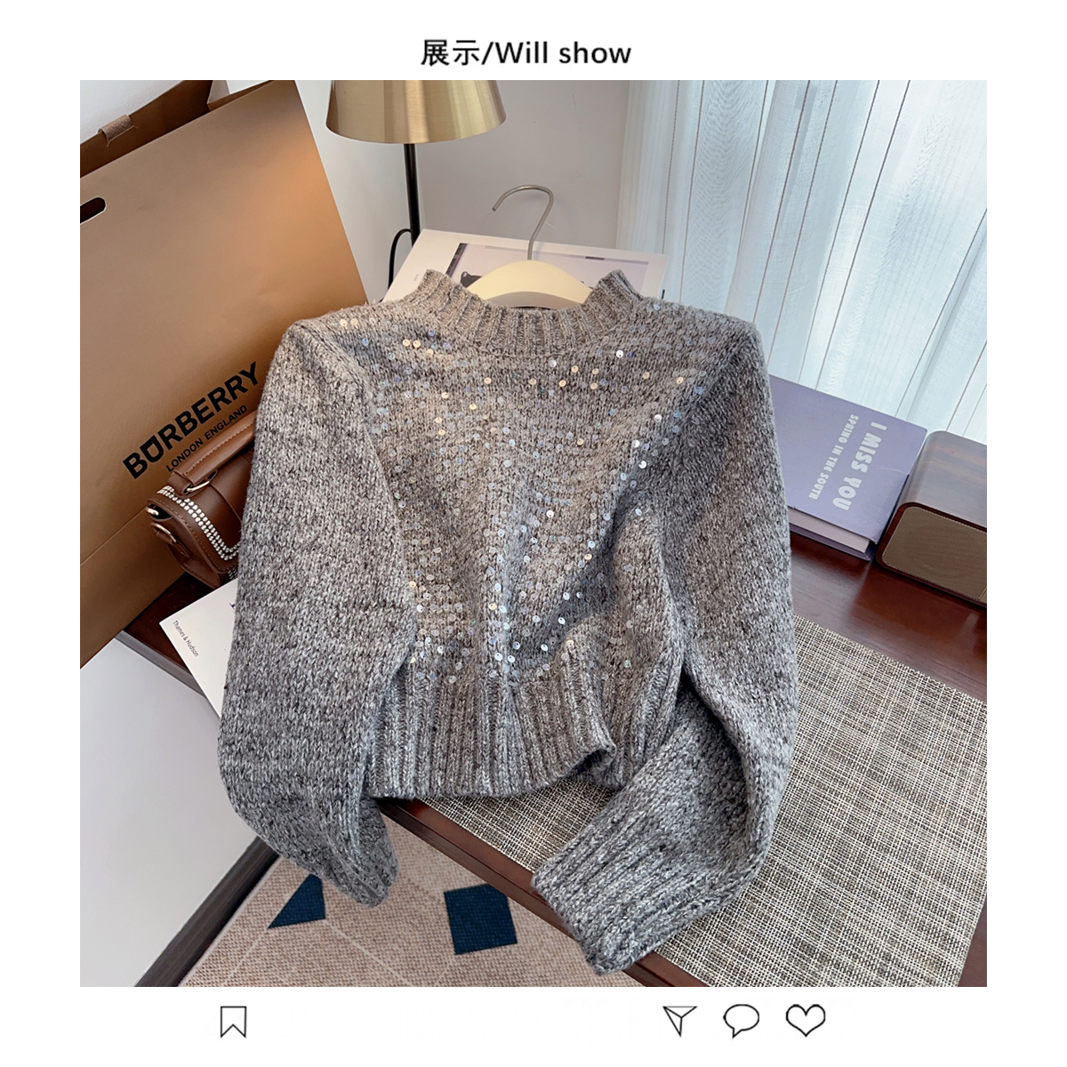 RM30523#法式亮片针织衫上衣女秋冬加厚新款圆领小众超好看短款毛衣