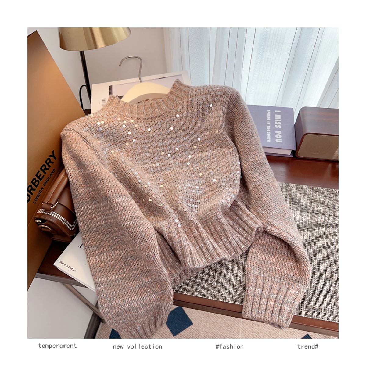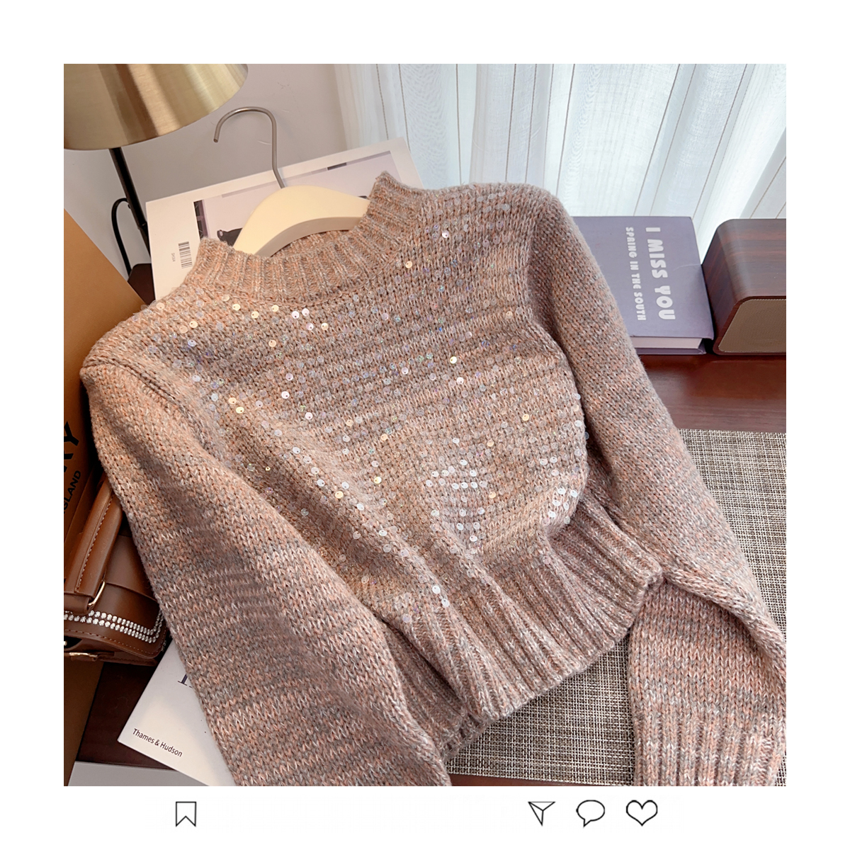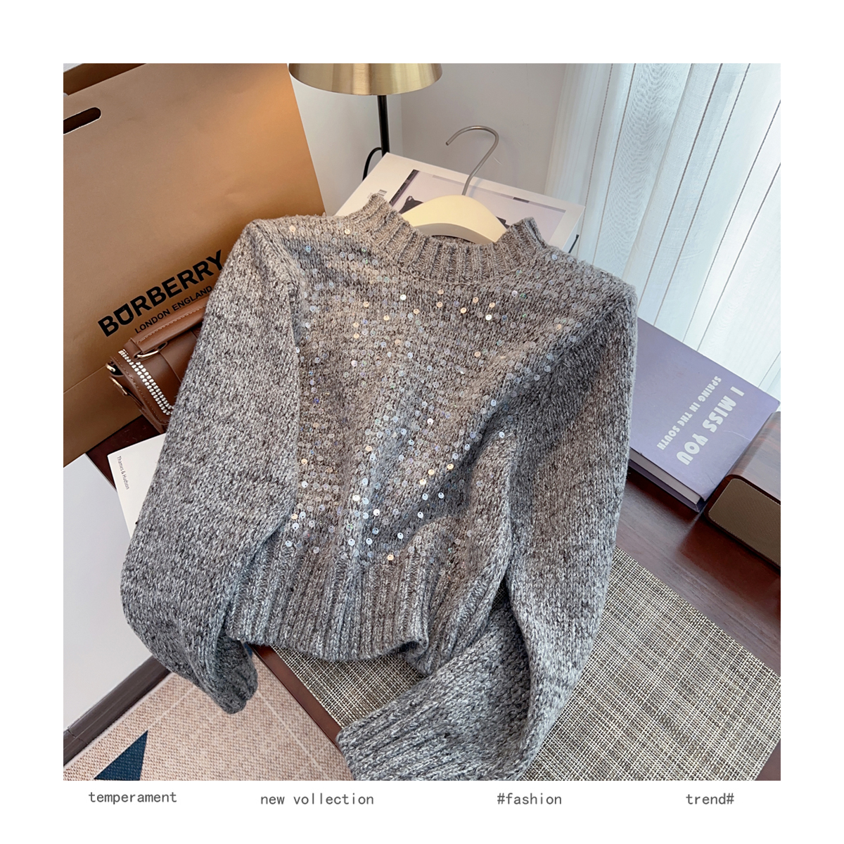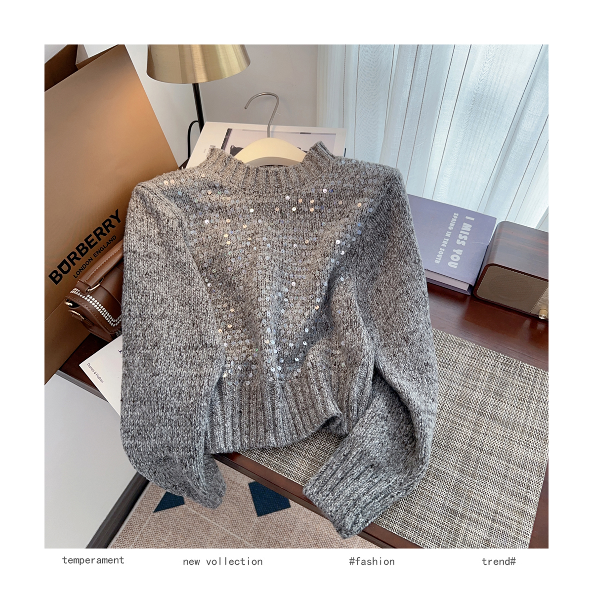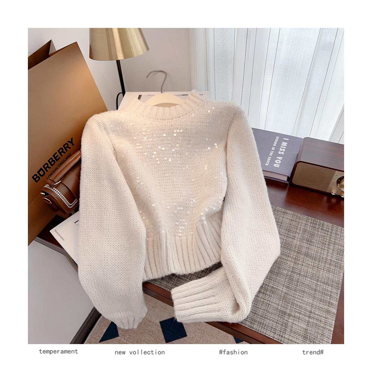 RM30523#法式亮片针织衫上衣女秋冬加厚新款圆领小众超好看短款毛衣