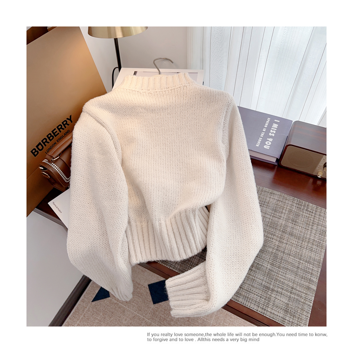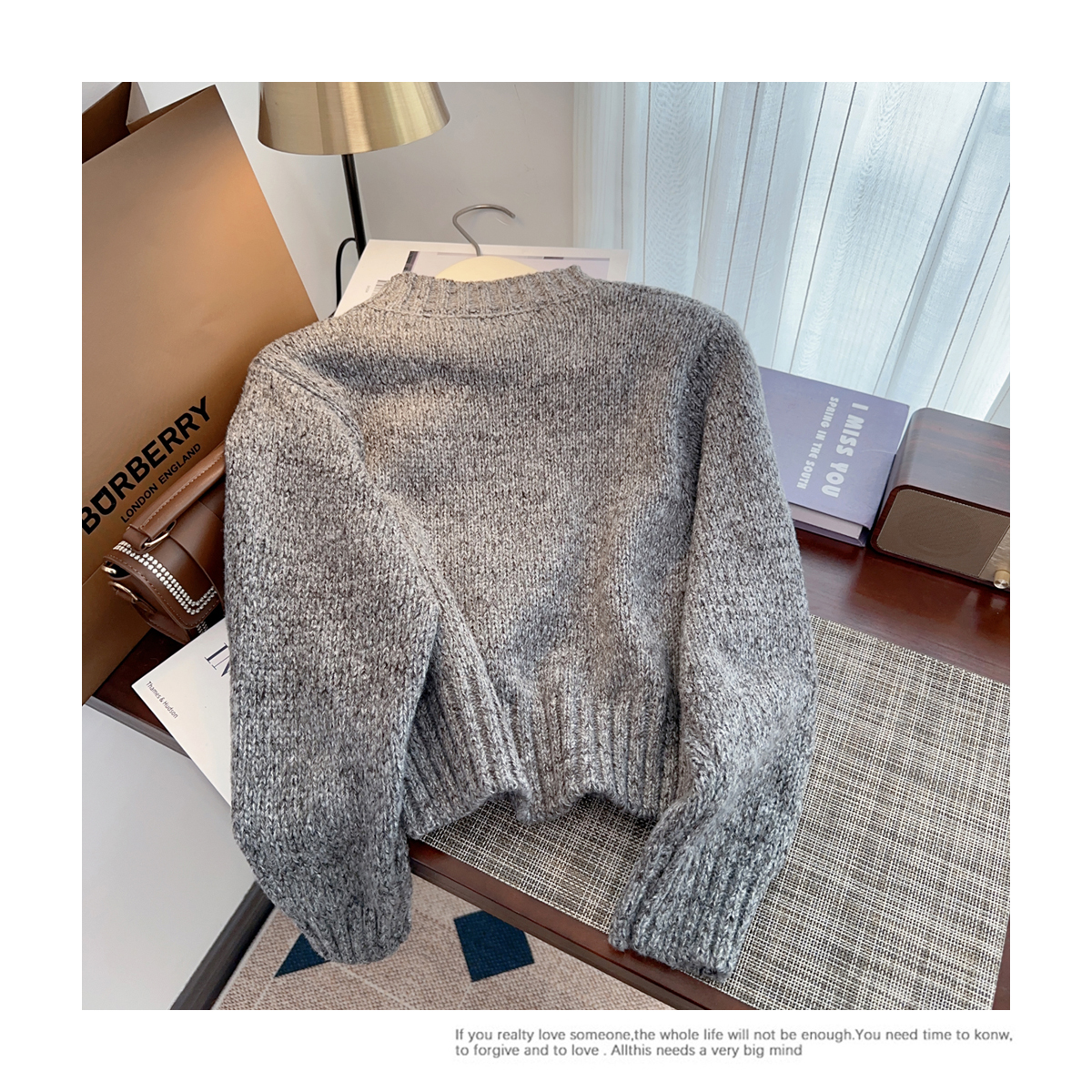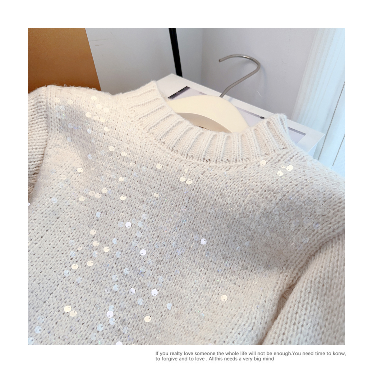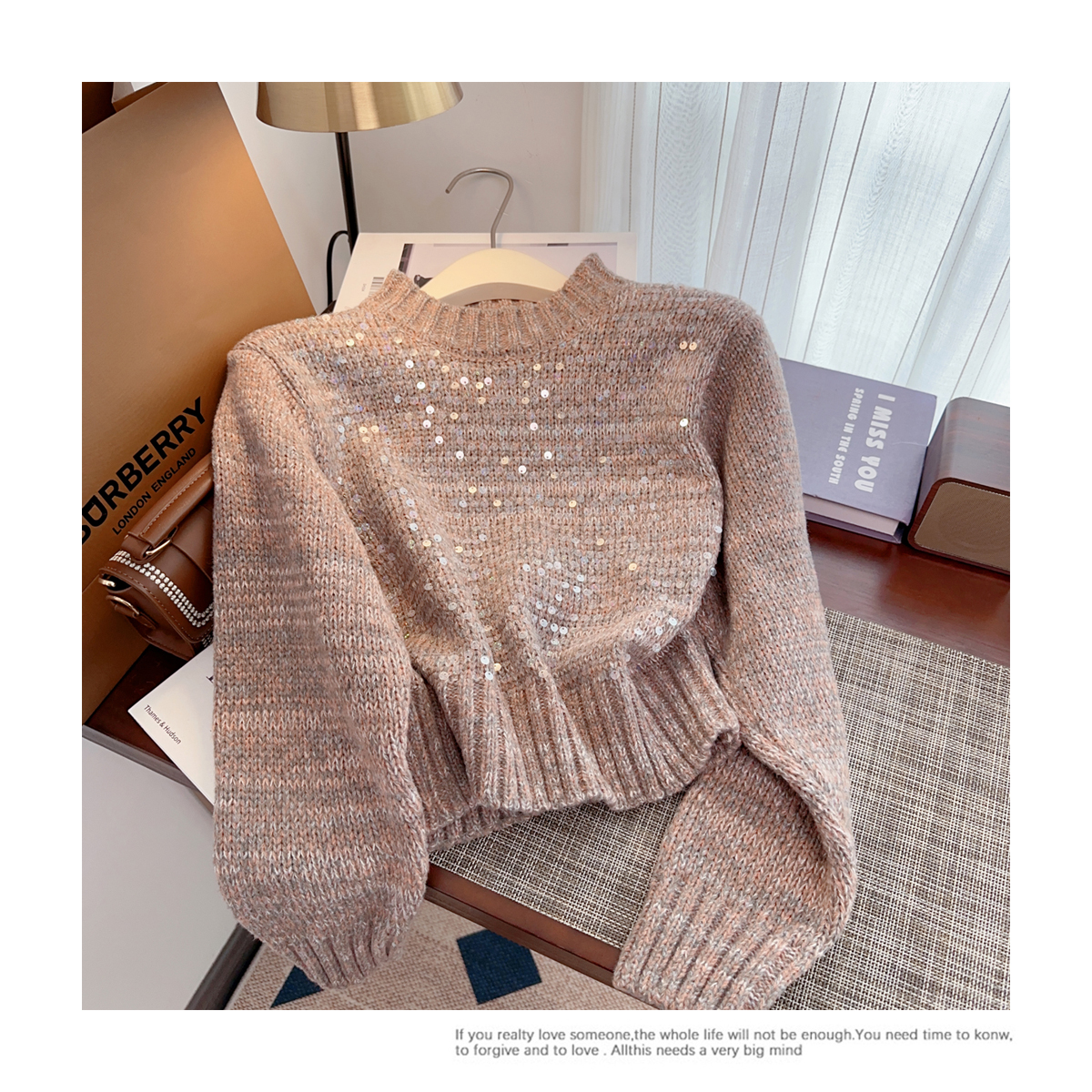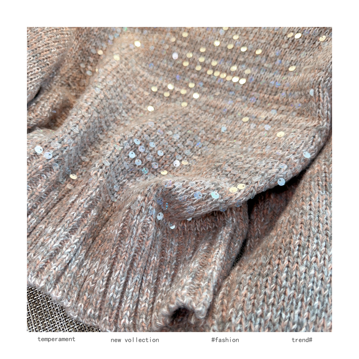 RM30523#法式亮片针织衫上衣女秋冬加厚新款圆领小众超好看短款毛衣
