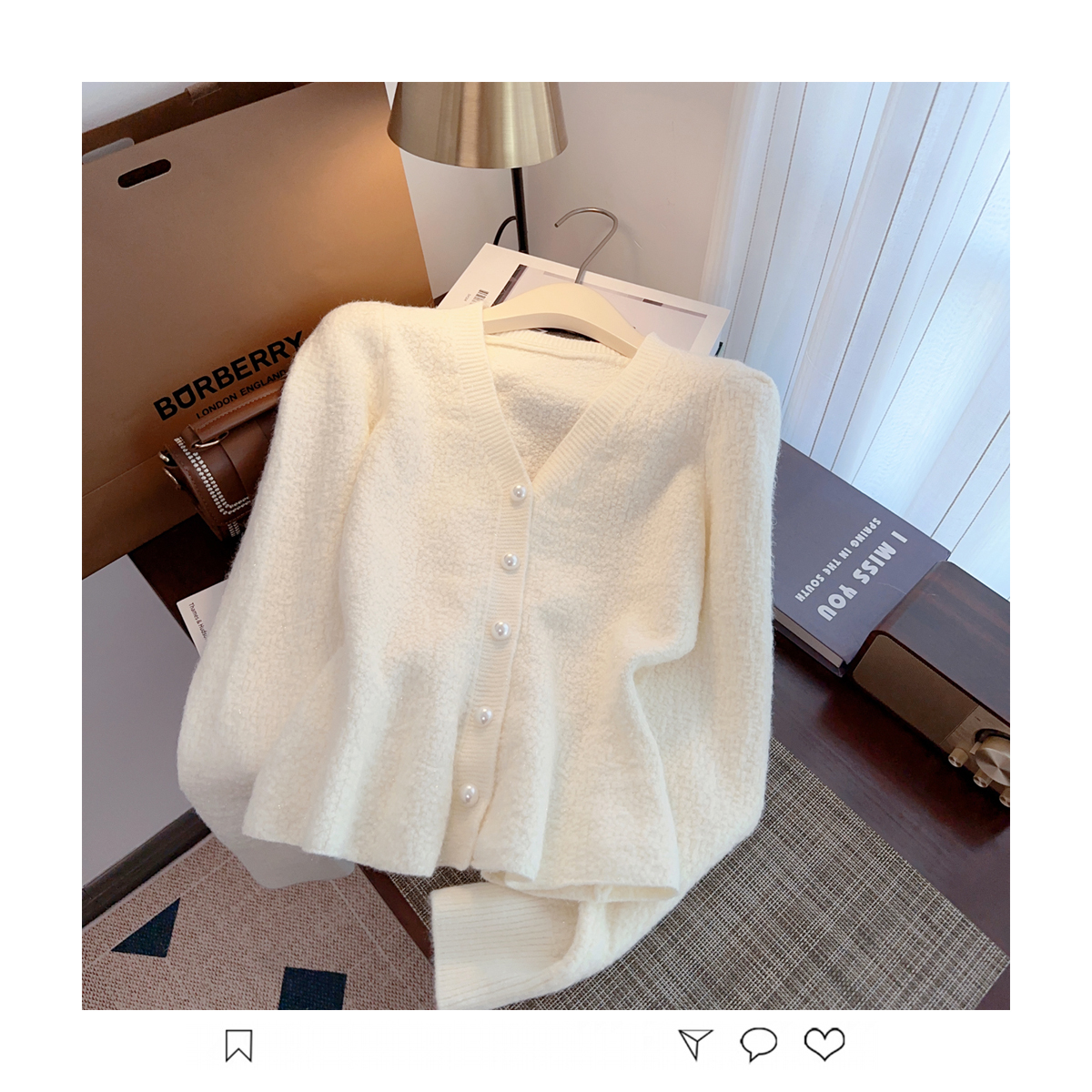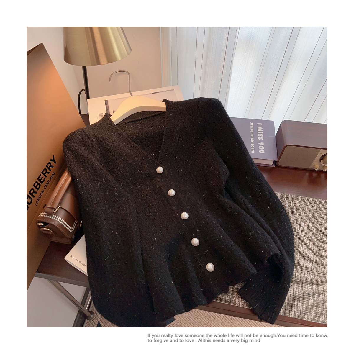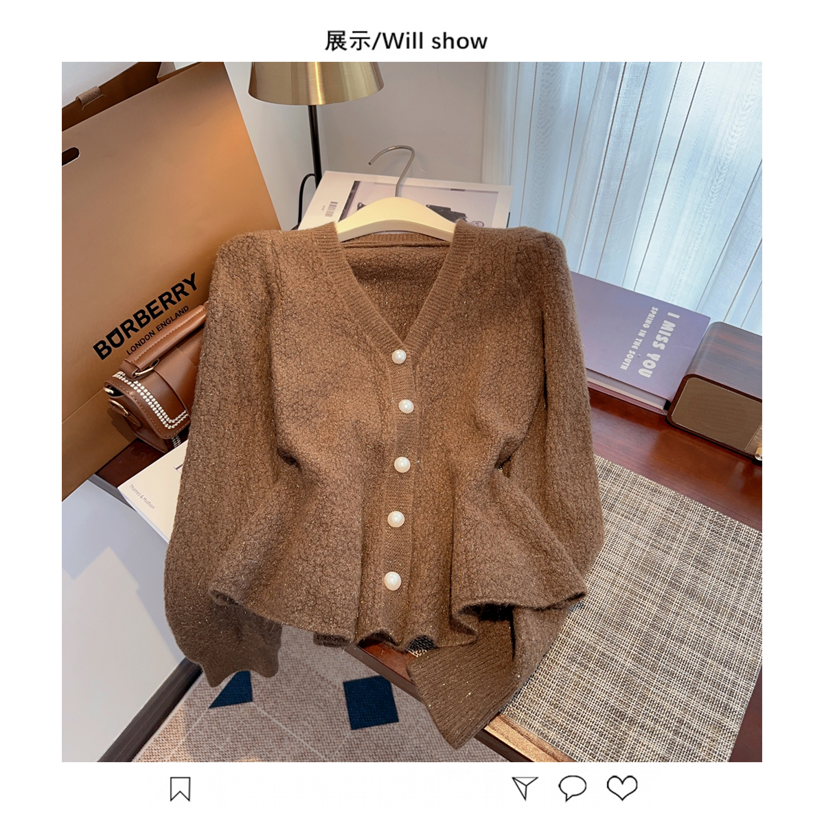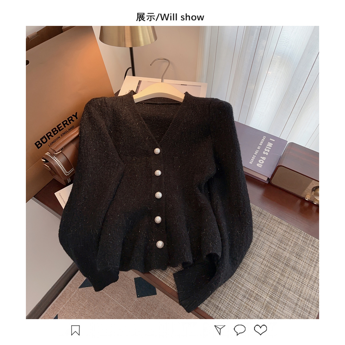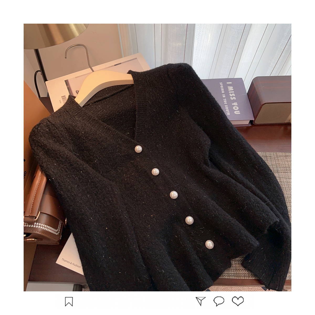 RM30525#法式高级感小香风珍珠扣加厚毛衣设计感西装鱼尾针织衫上衣