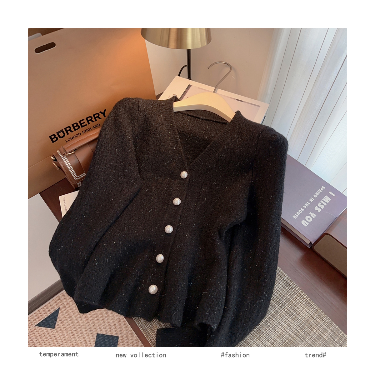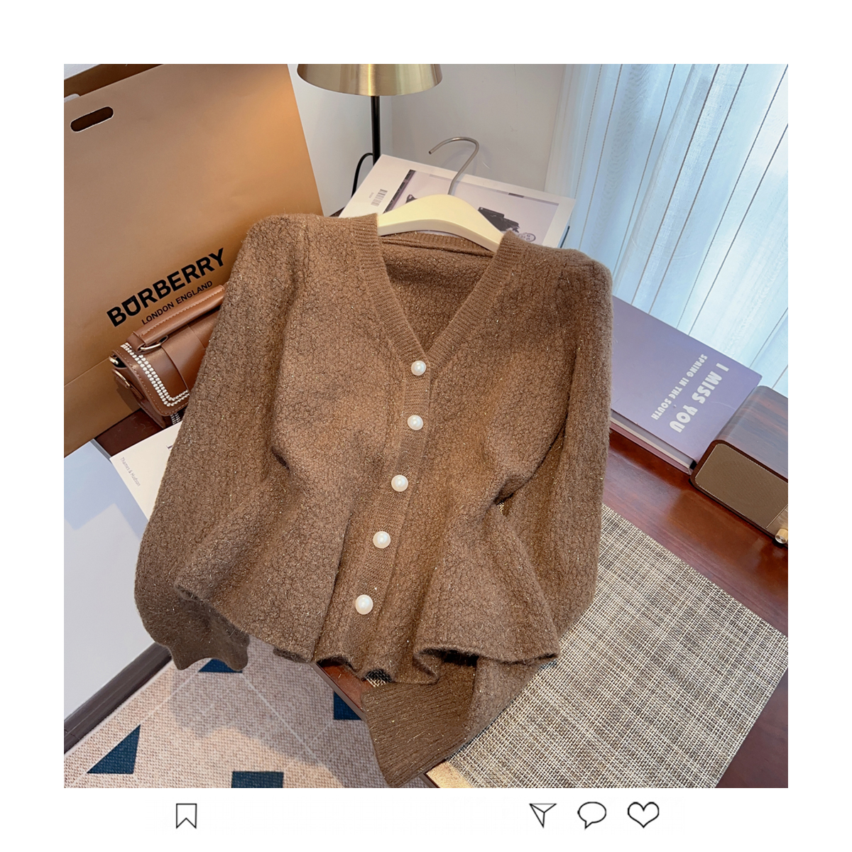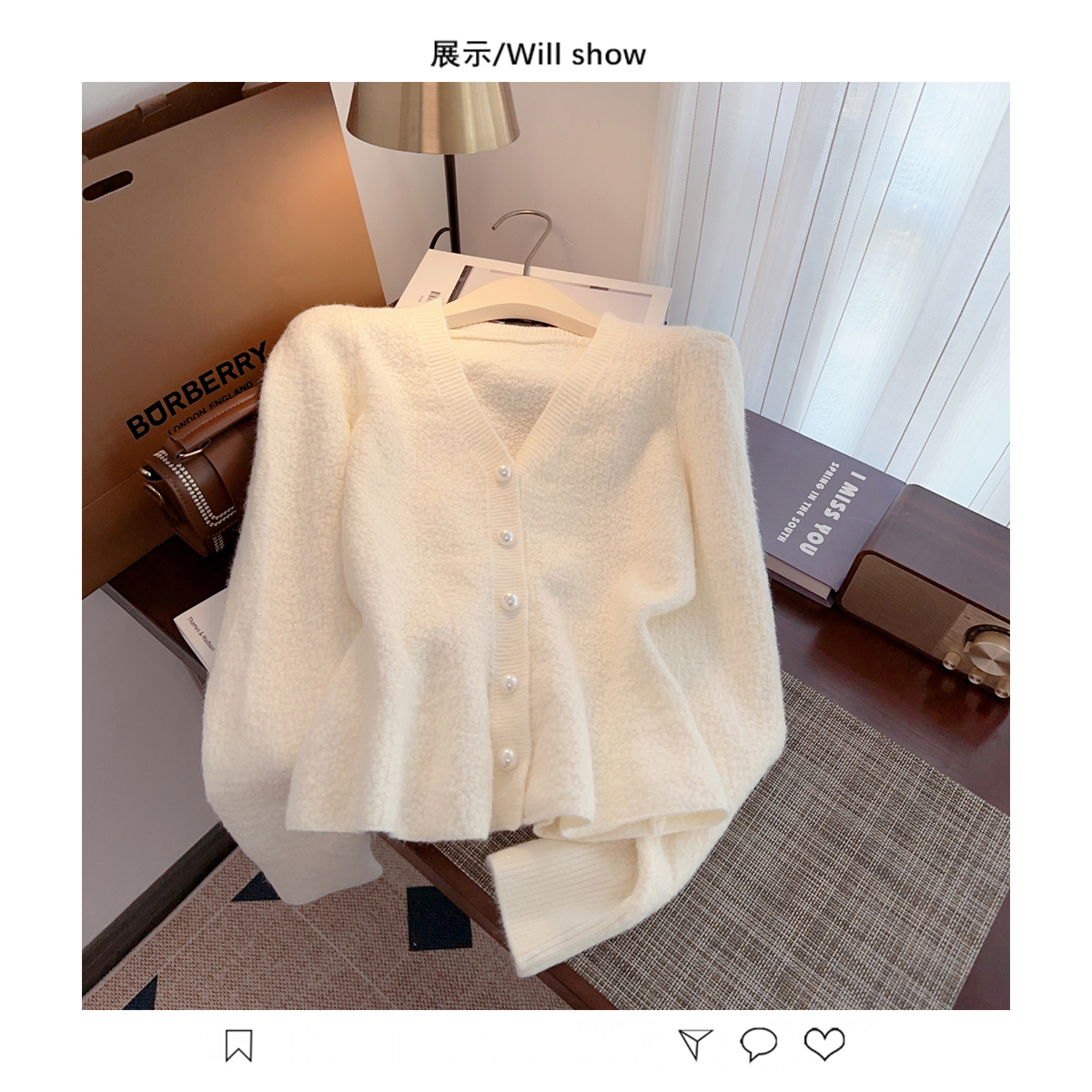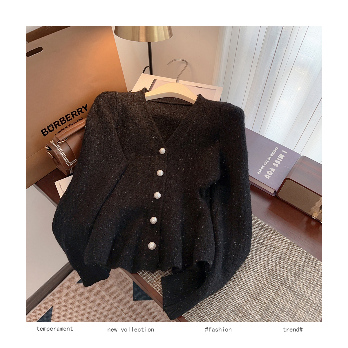 RM30525#法式高级感小香风珍珠扣加厚毛衣设计感西装鱼尾针织衫上衣