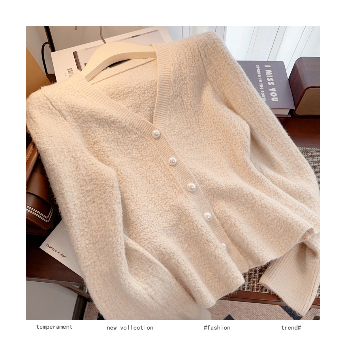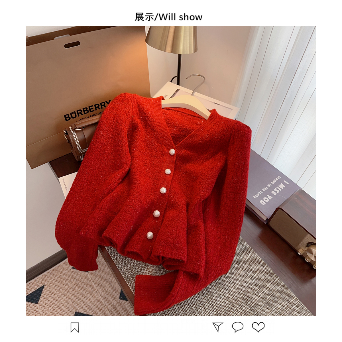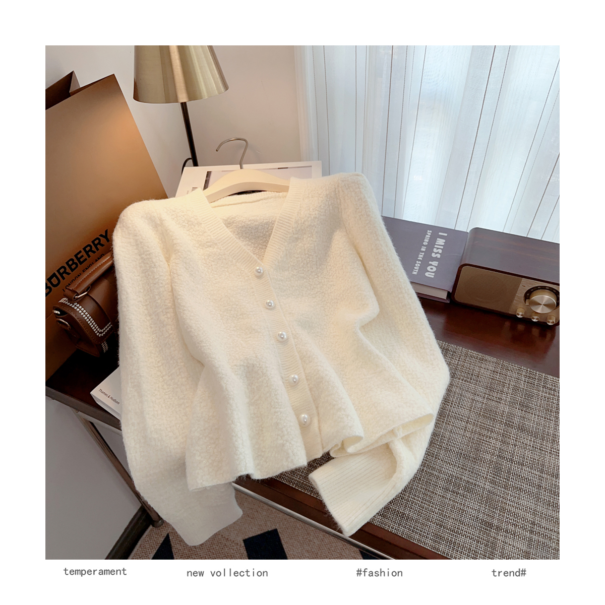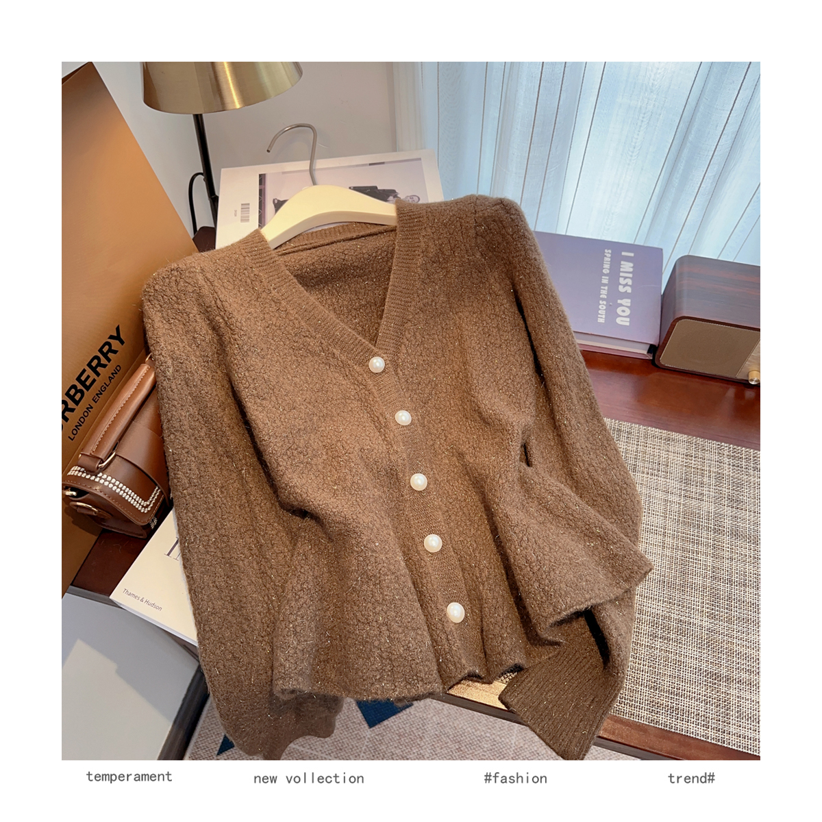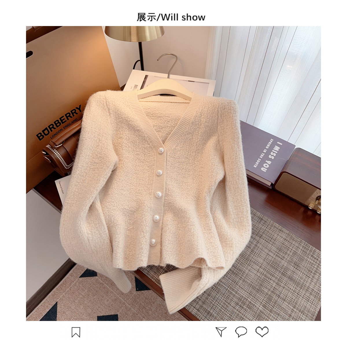 RM30525#法式高级感小香风珍珠扣加厚毛衣设计感西装鱼尾针织衫上衣