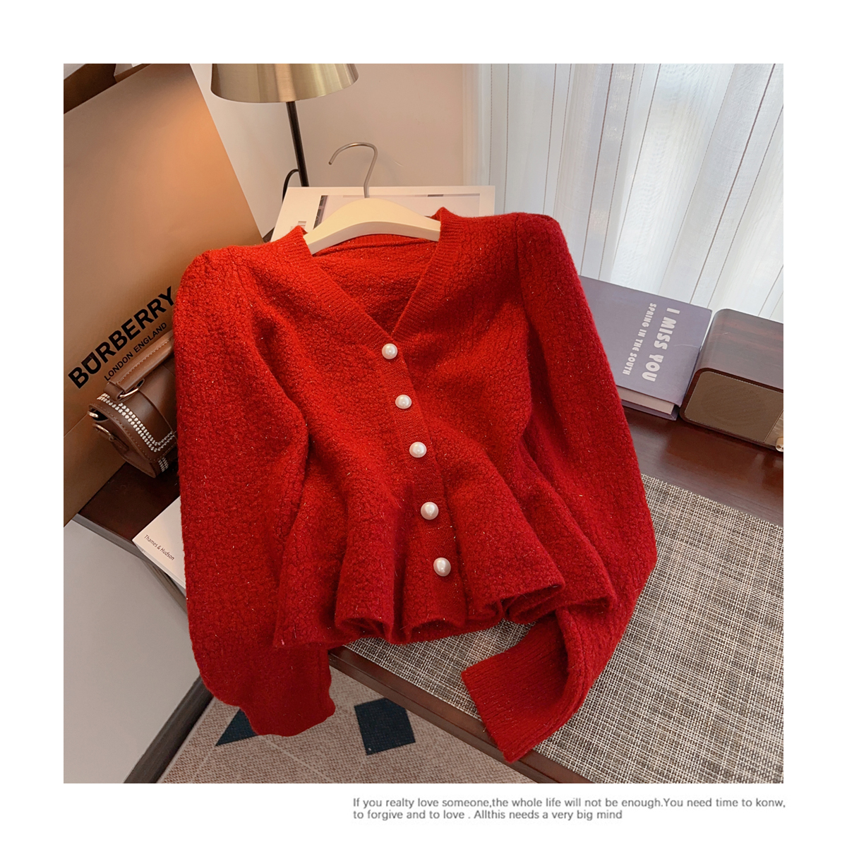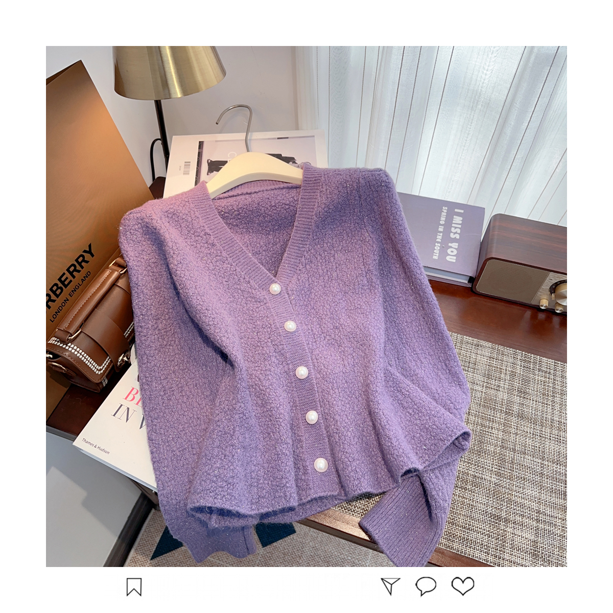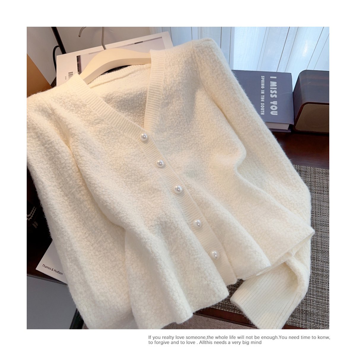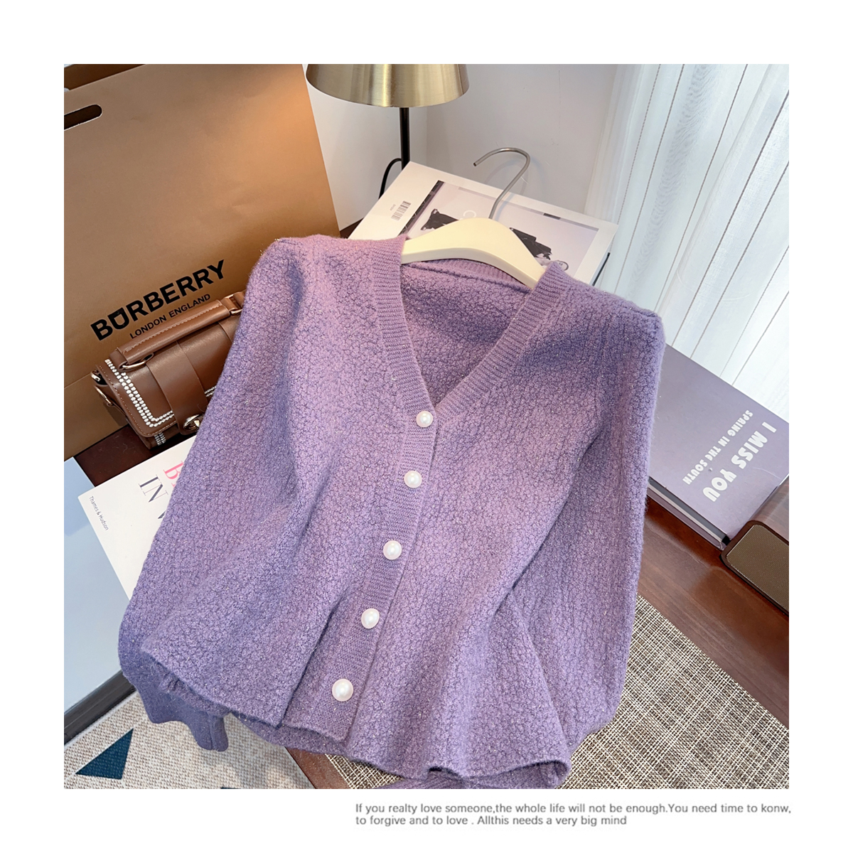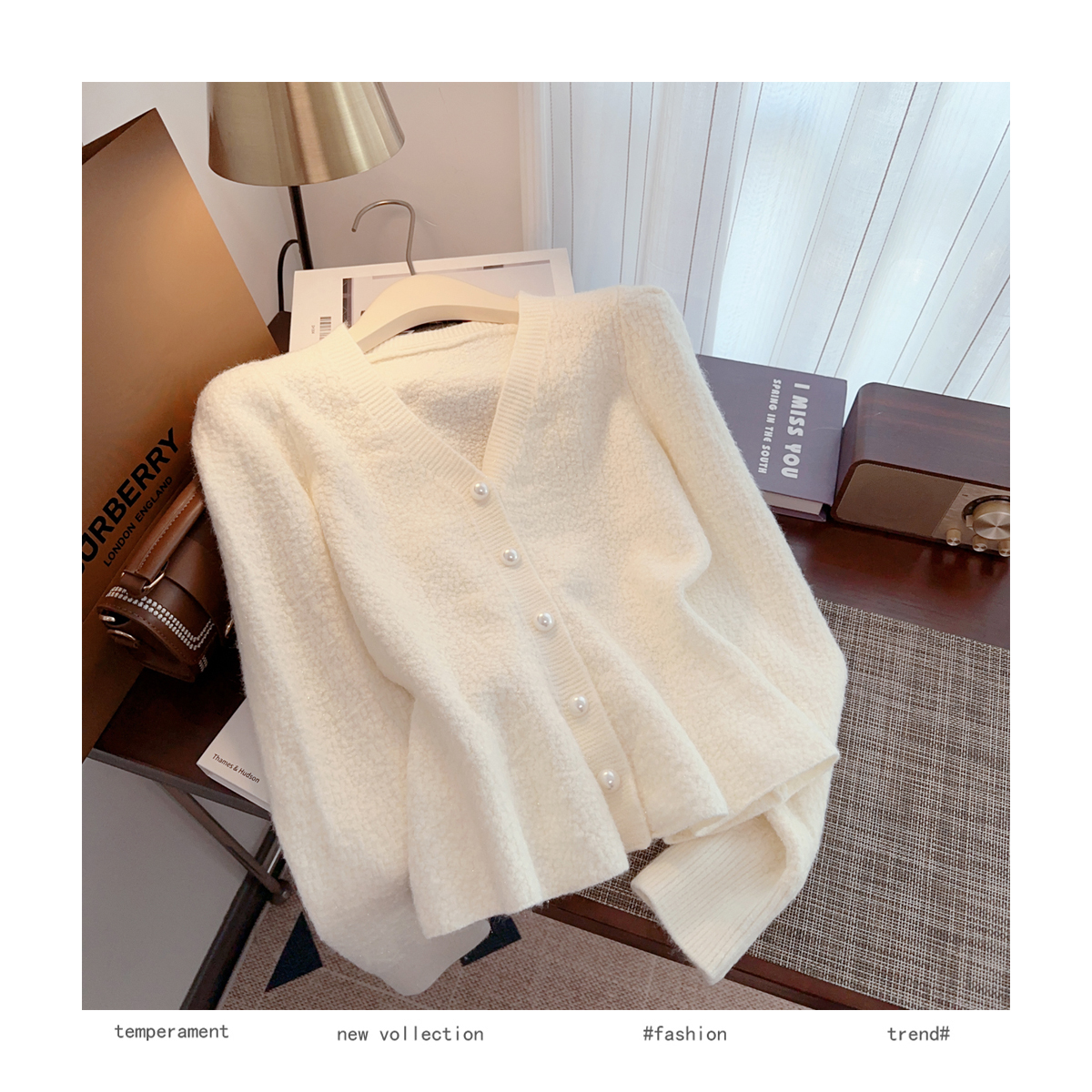 RM30525#法式高级感小香风珍珠扣加厚毛衣设计感西装鱼尾针织衫上衣