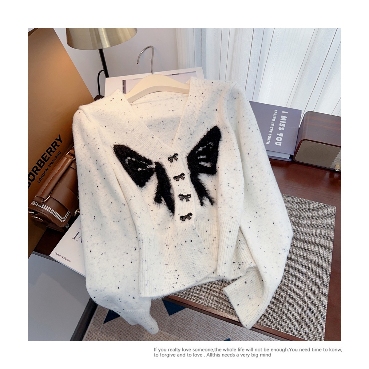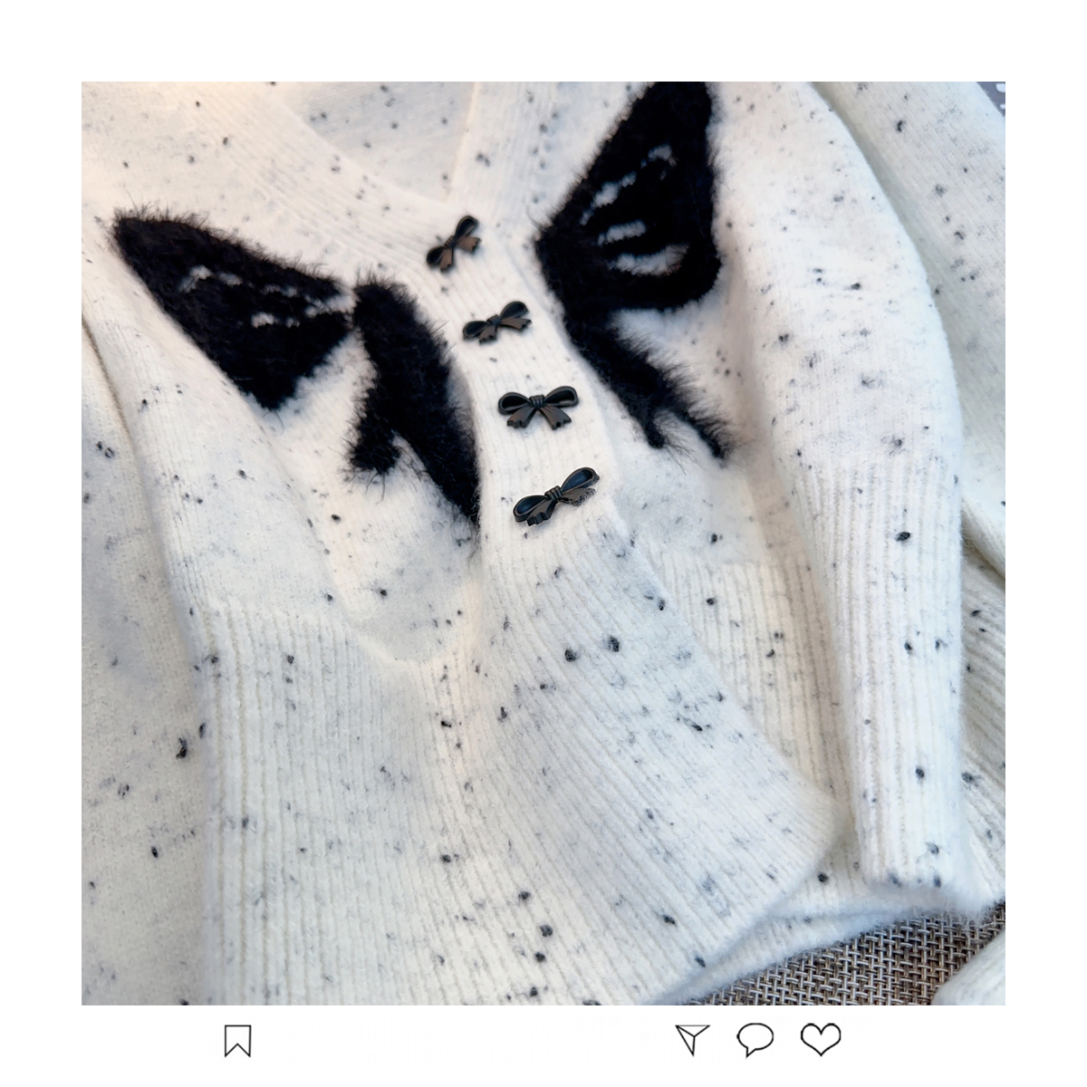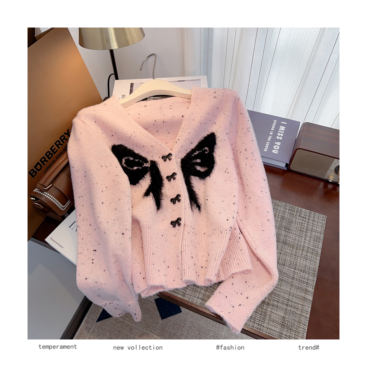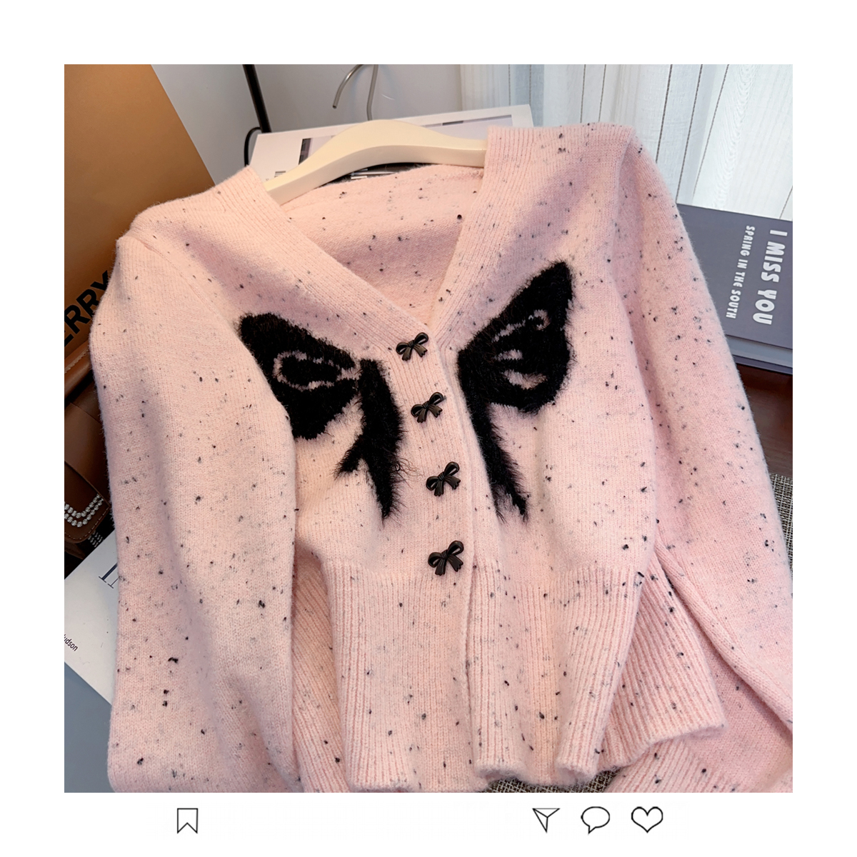 RM30528#小香风甜美毛衣设计感外套蝴蝶结v领针织衫显瘦修身辣妹上衣