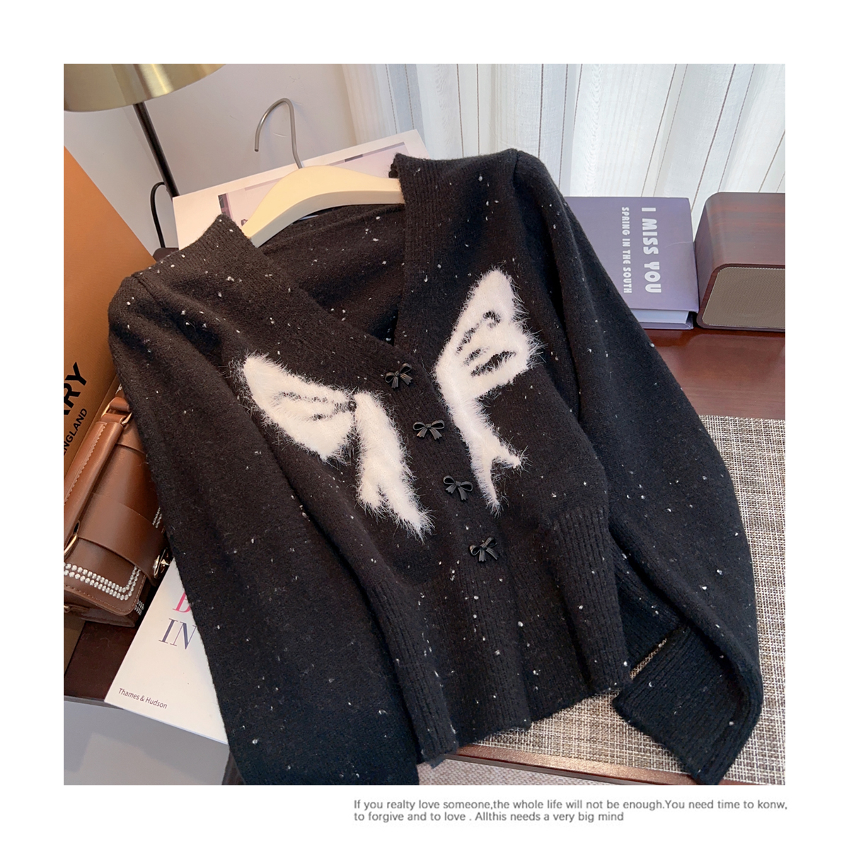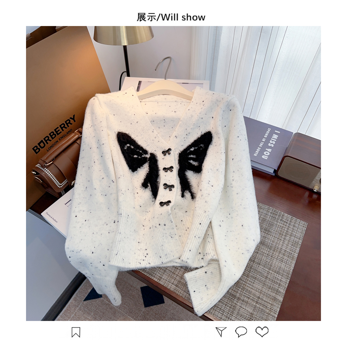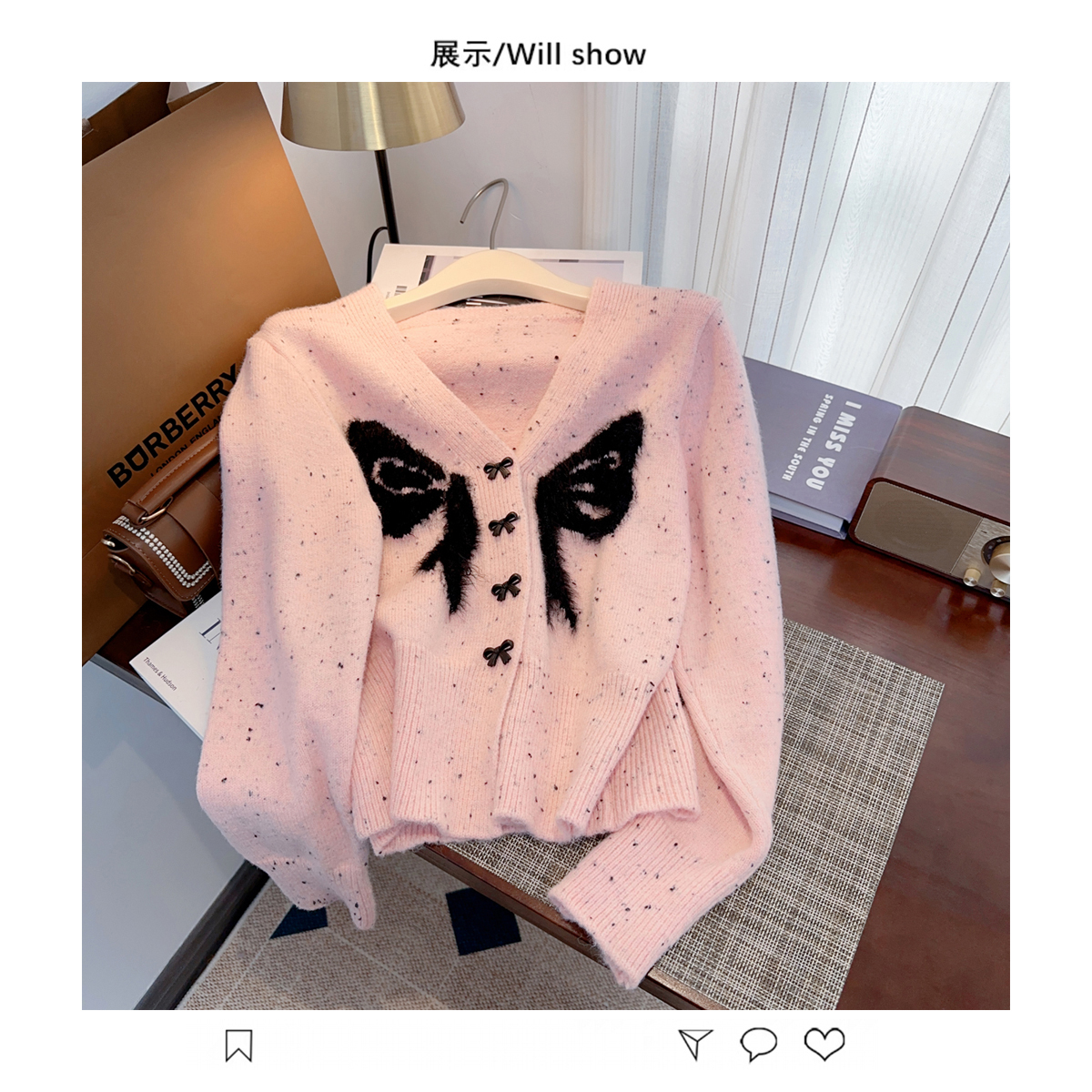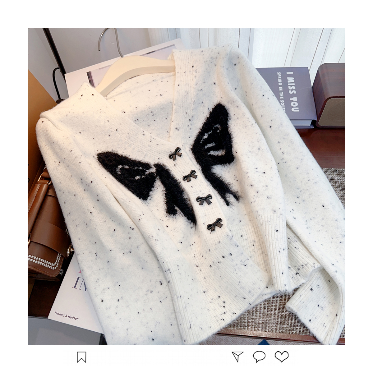 RM30528#小香风甜美毛衣设计感外套蝴蝶结v领针织衫显瘦修身辣妹上衣