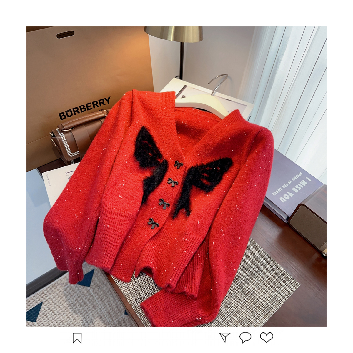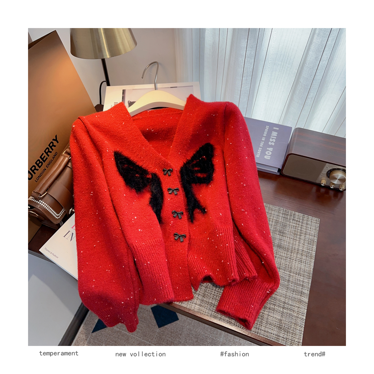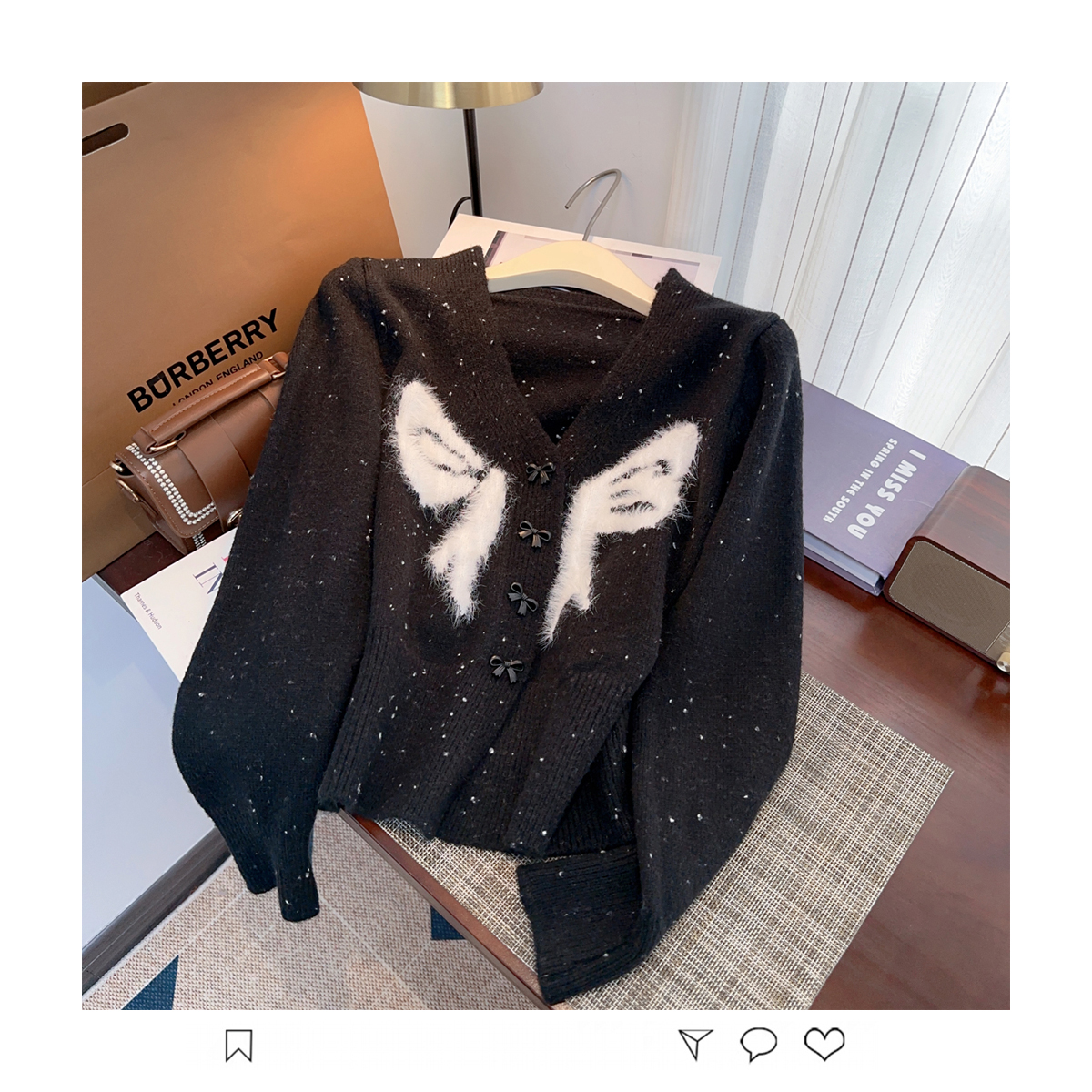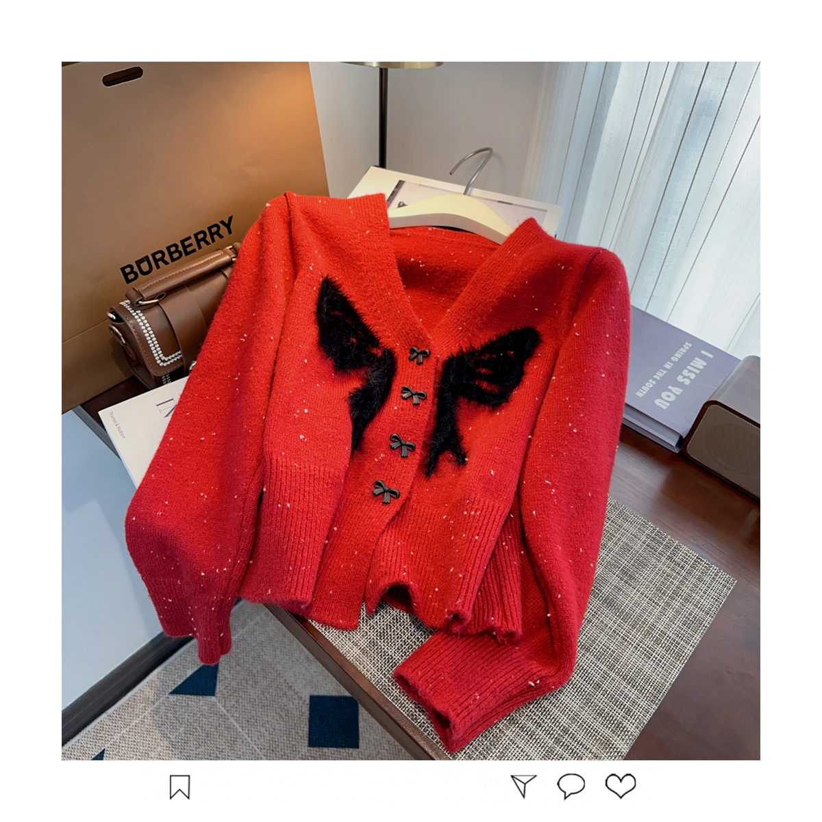 RM30528#小香风甜美毛衣设计感外套蝴蝶结v领针织衫显瘦修身辣妹上衣