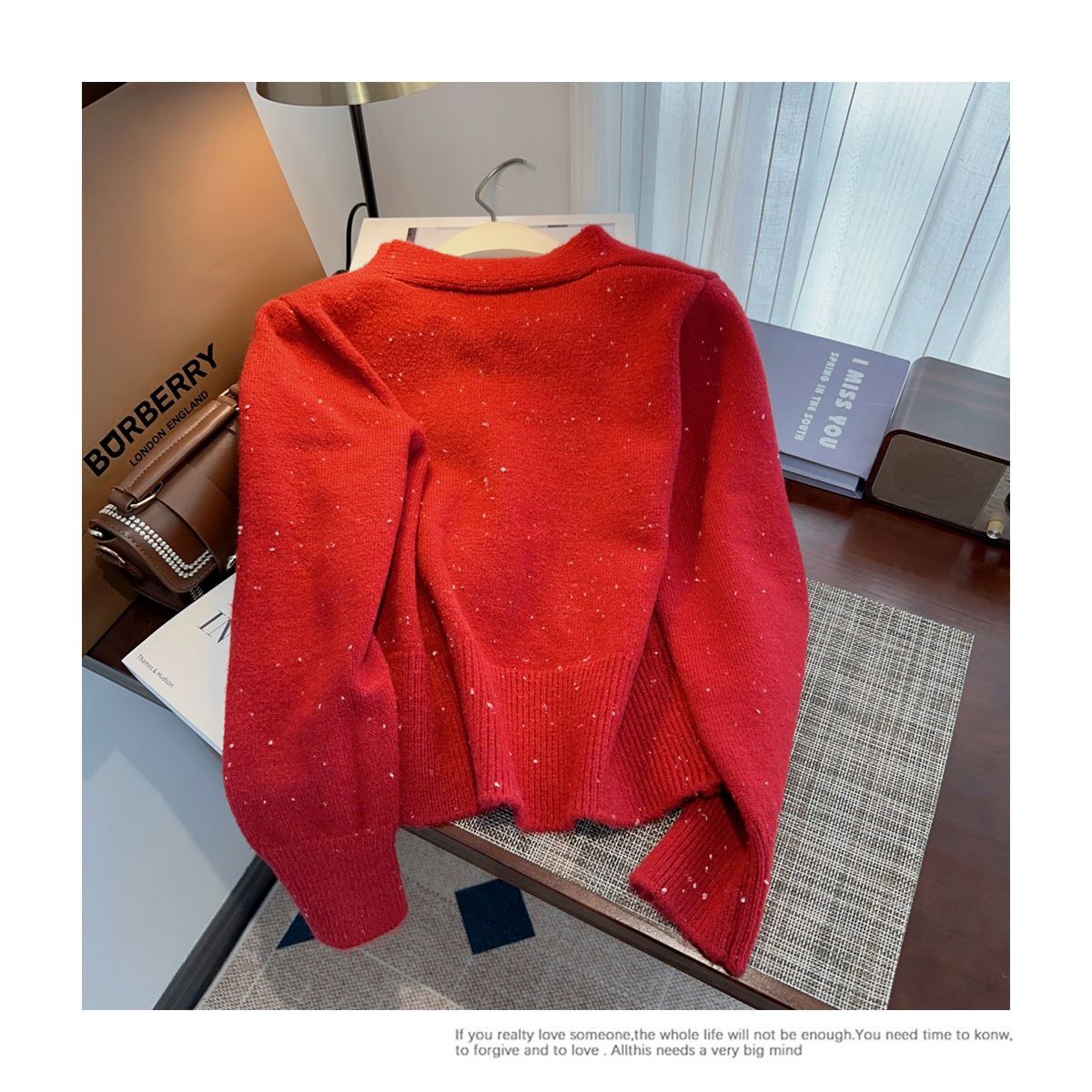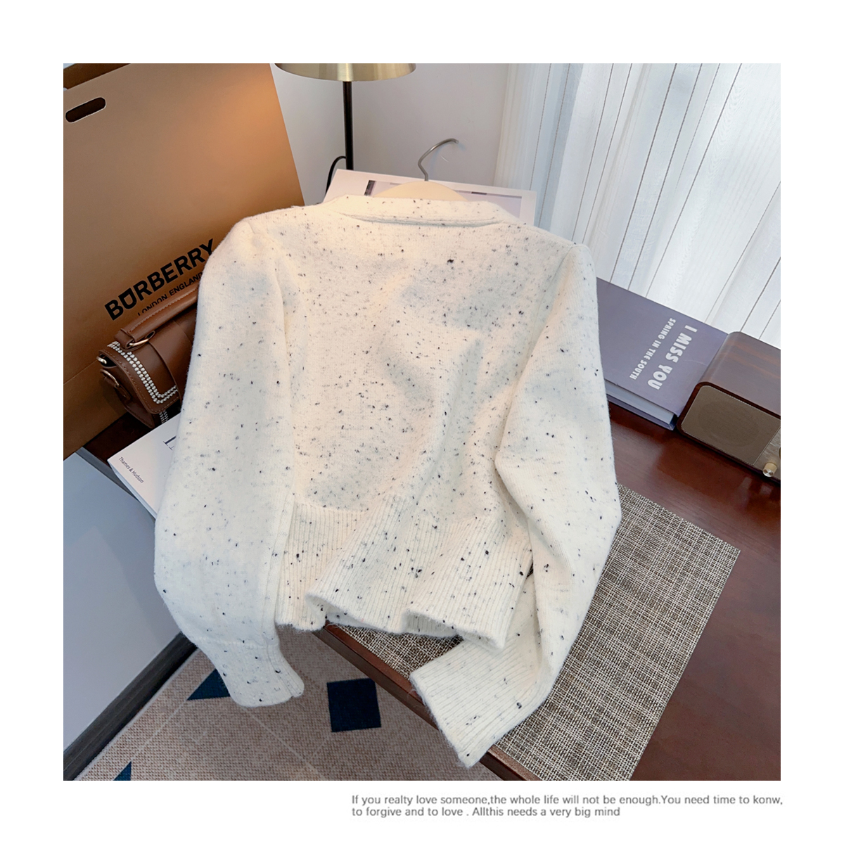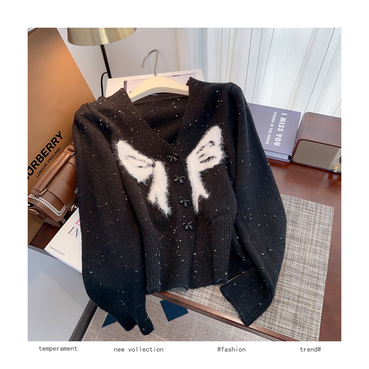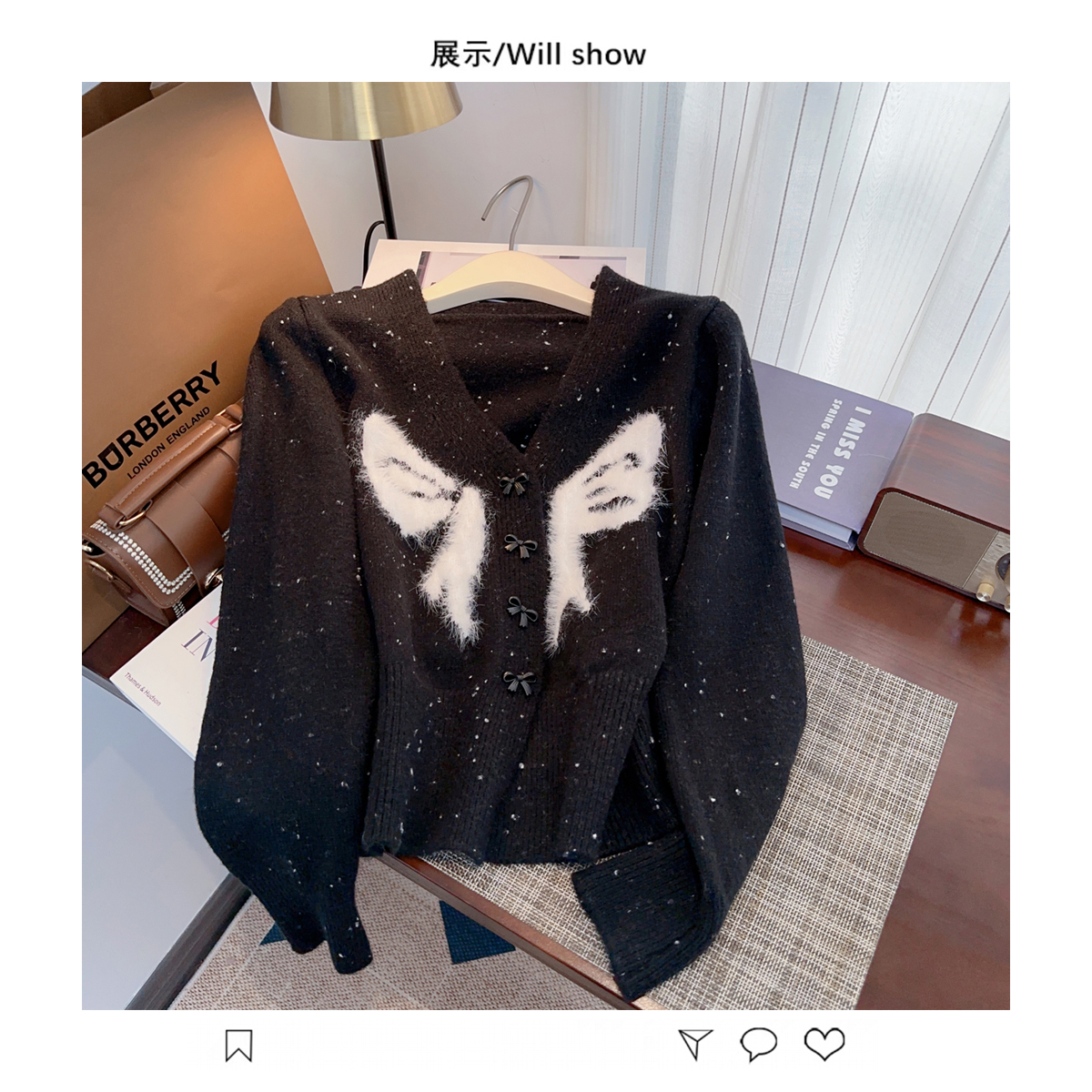 RM30528#小香风甜美毛衣设计感外套蝴蝶结v领针织衫显瘦修身辣妹上衣