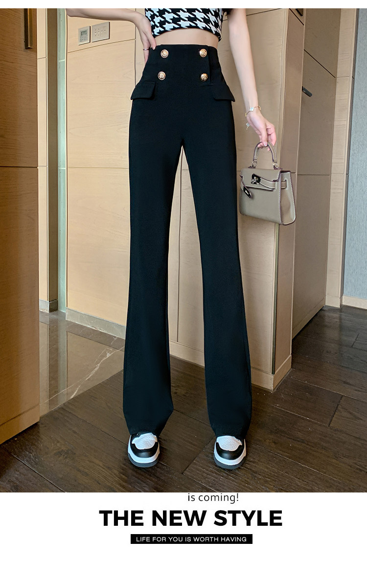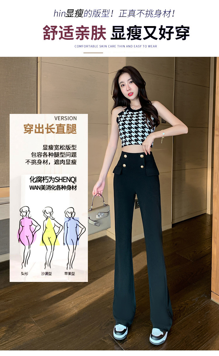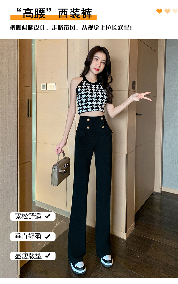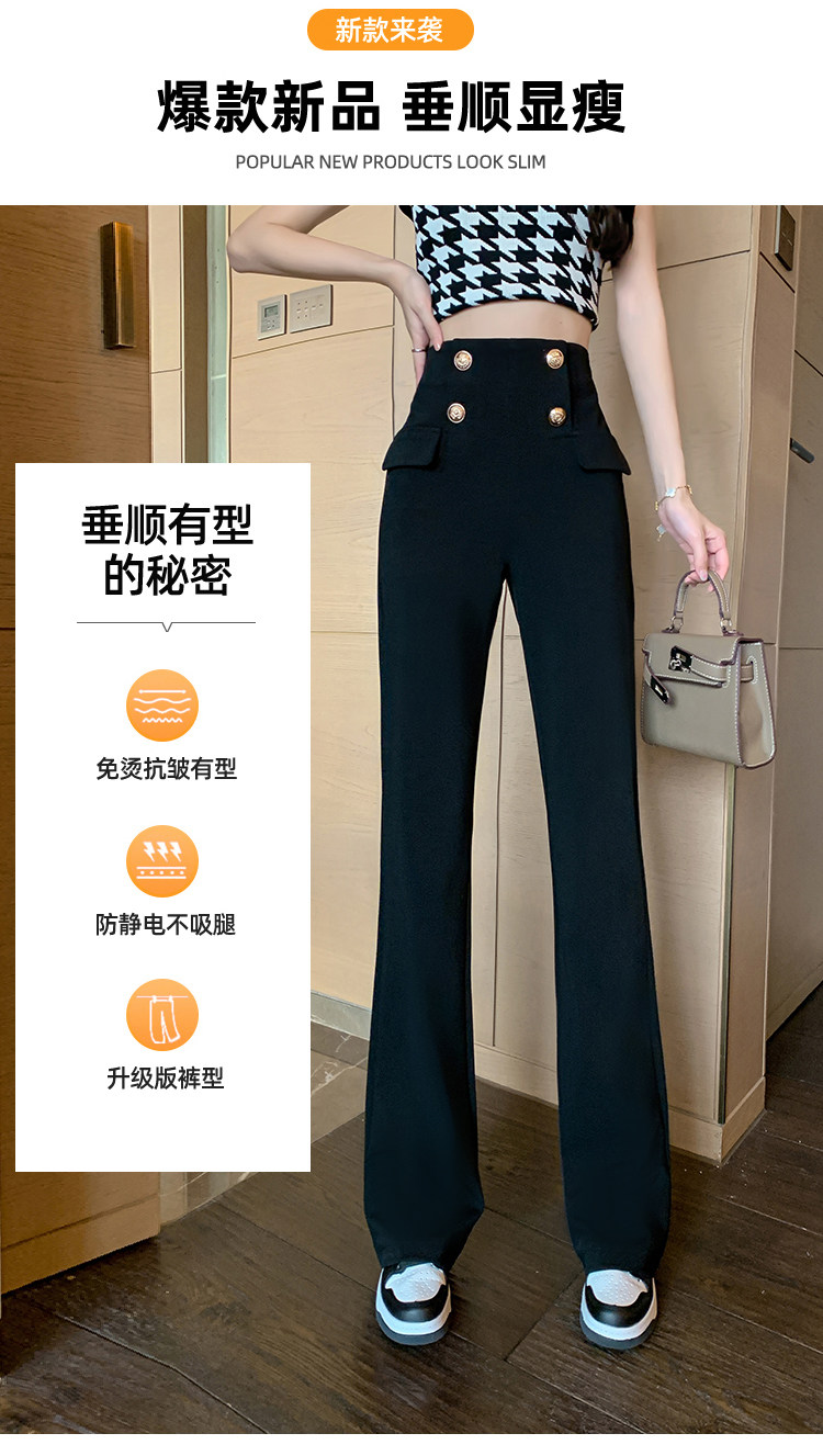 RY2632#夏季新款黑色垂感微喇裤西装裤显瘦高腰百搭直筒裤拖地裤
