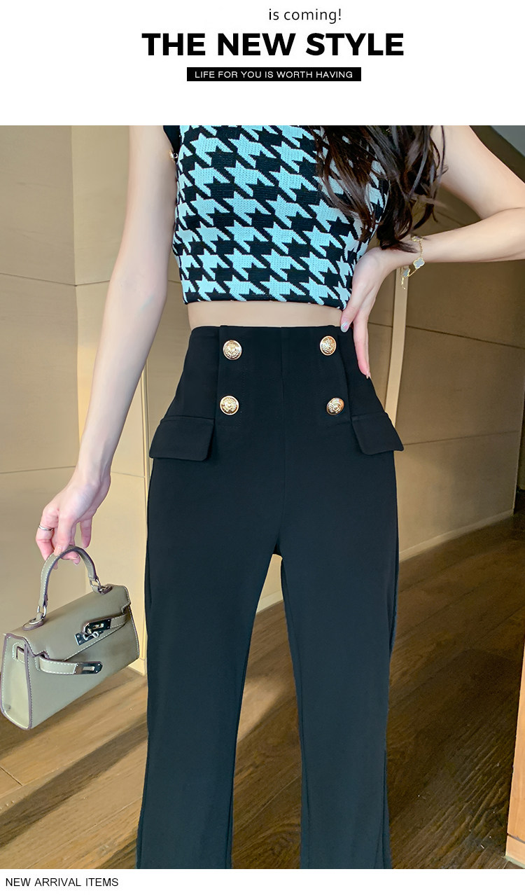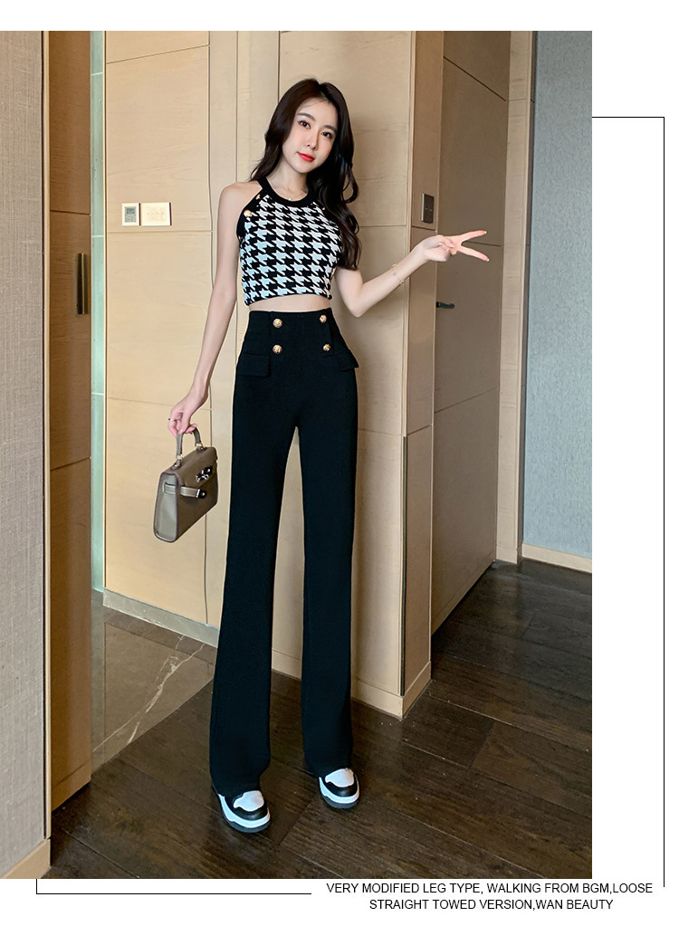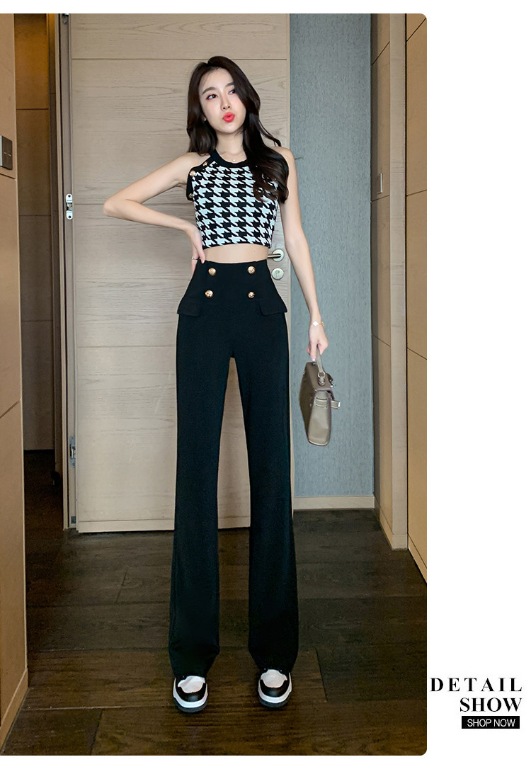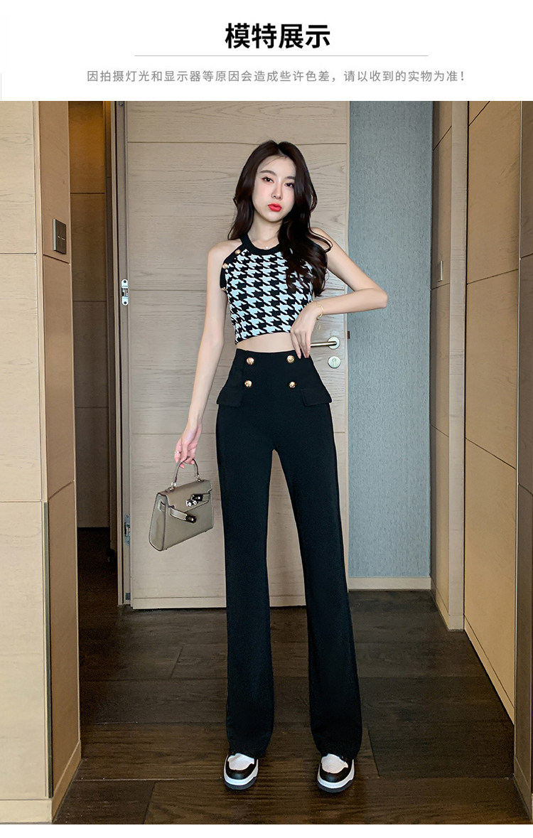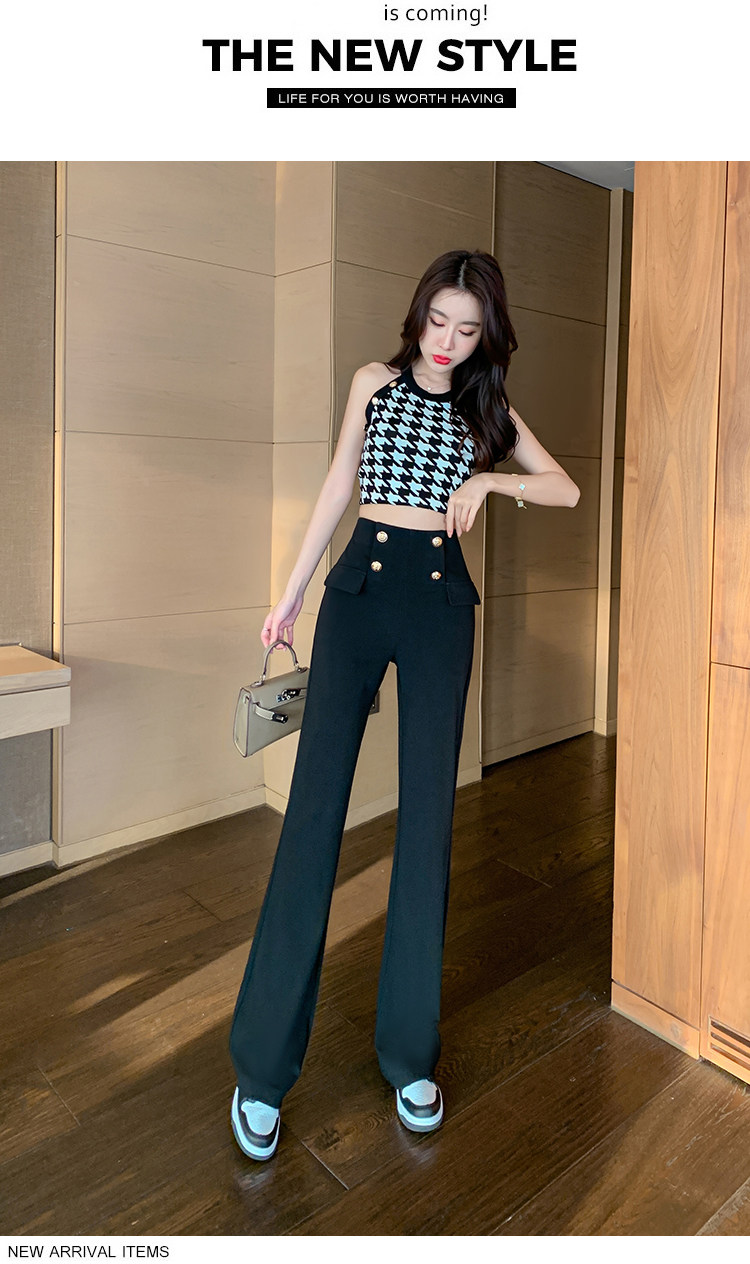 RY2632#夏季新款黑色垂感微喇裤西装裤显瘦高腰百搭直筒裤拖地裤