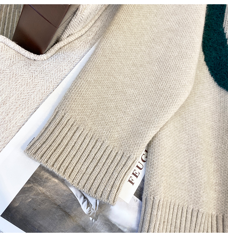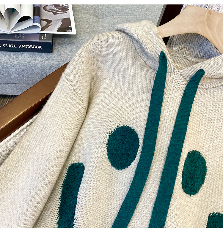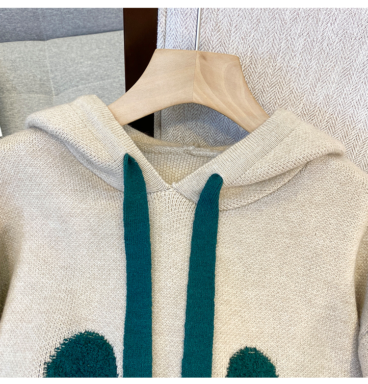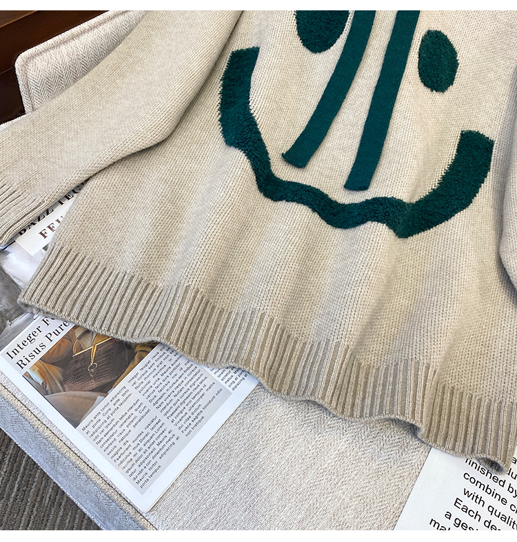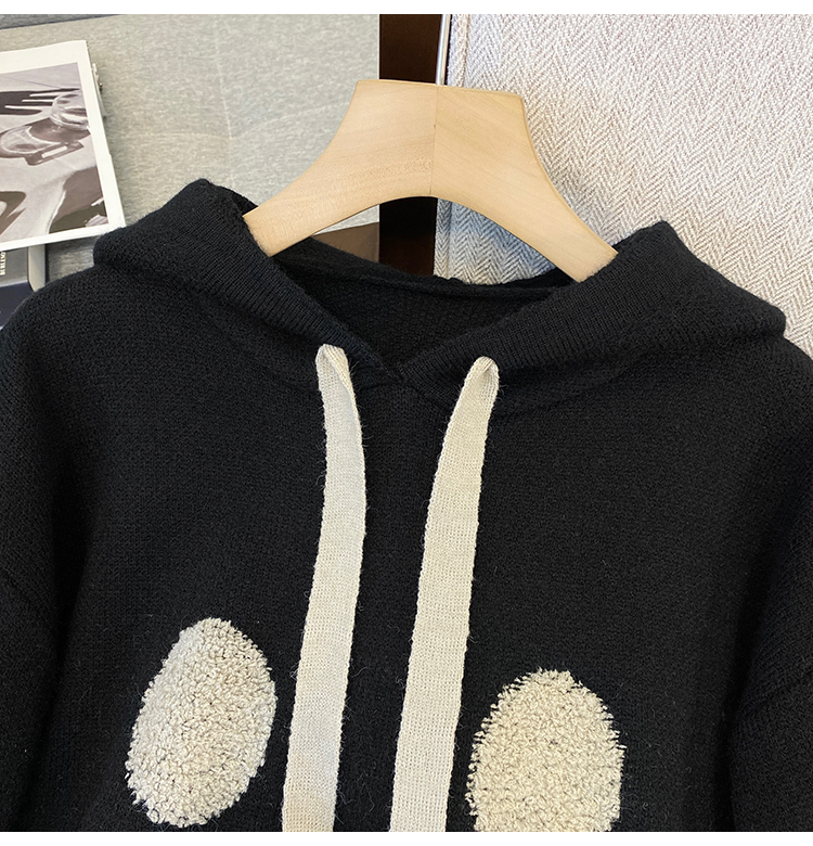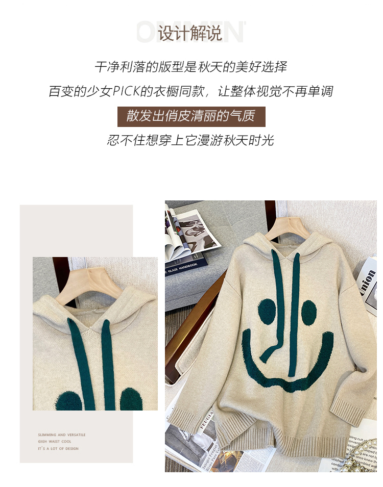 RM30559#大码女装秋冬复古笑脸连帽毛衣胖MM慵懒小众百搭针织衫上衣