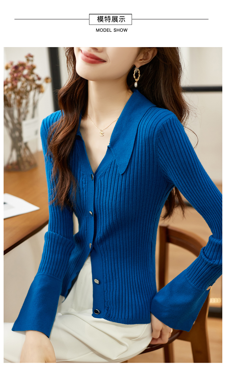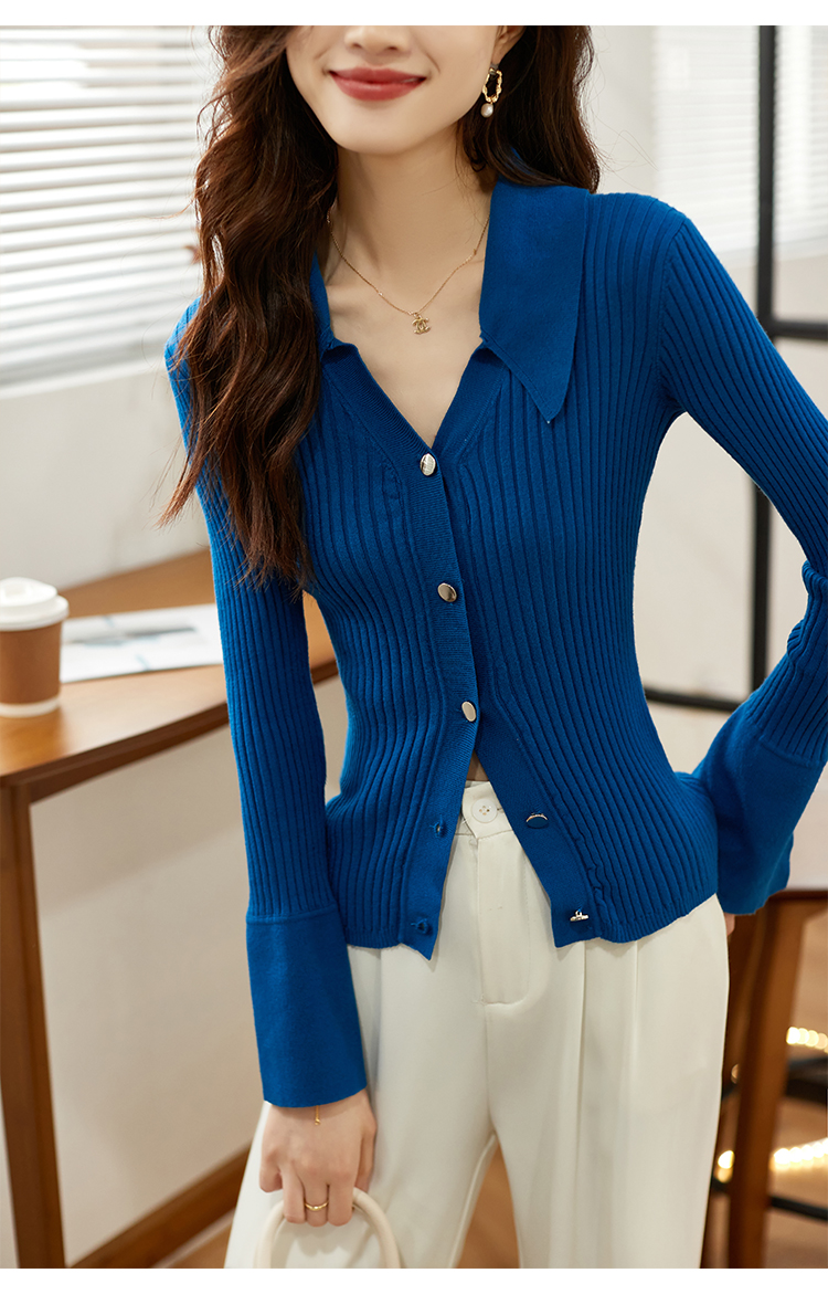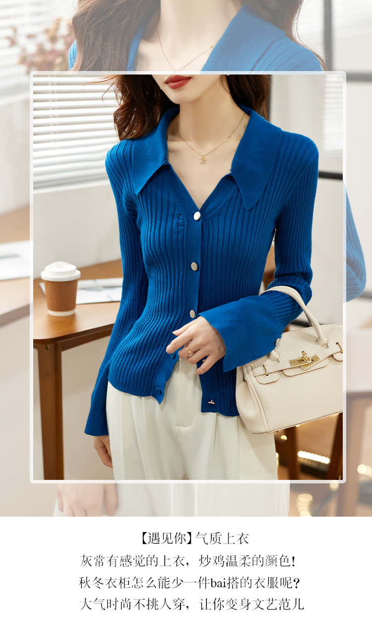 RM30586#蓝色V领针织开衫女2024春季新款设计感修身显瘦上衣潮ins