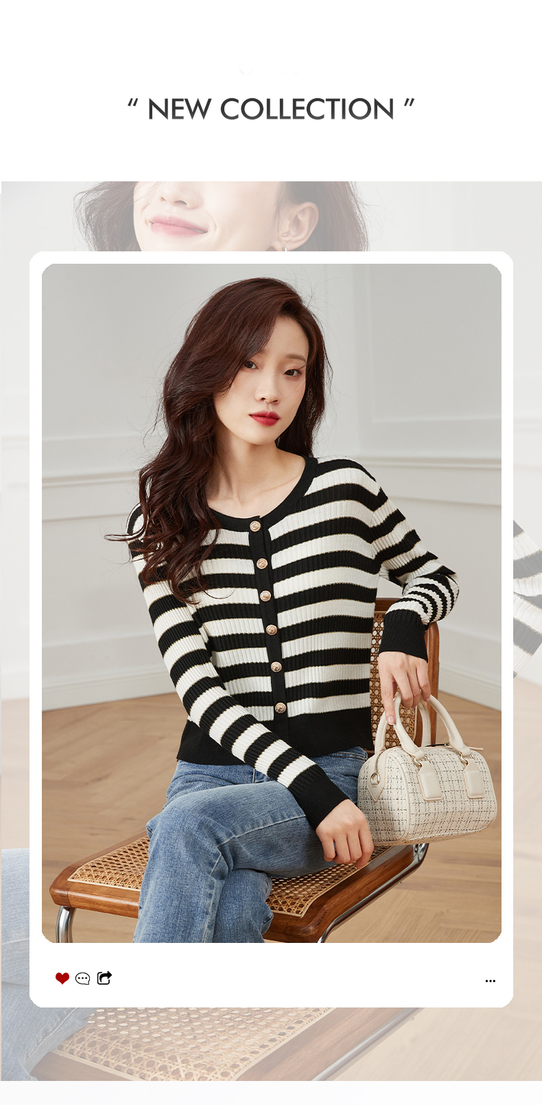 RM30597#黑白条纹针织开衫短外套女士宽松慵懒风毛衣春季洋气时尚小衫上衣