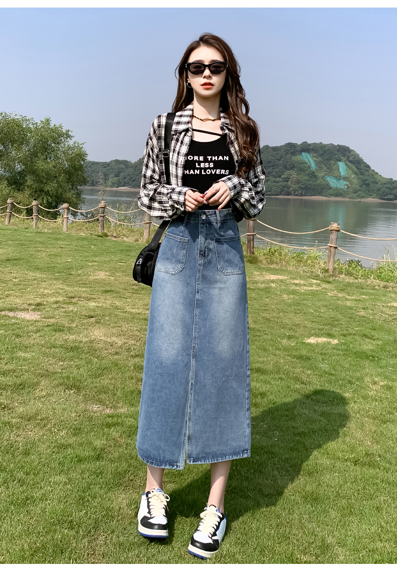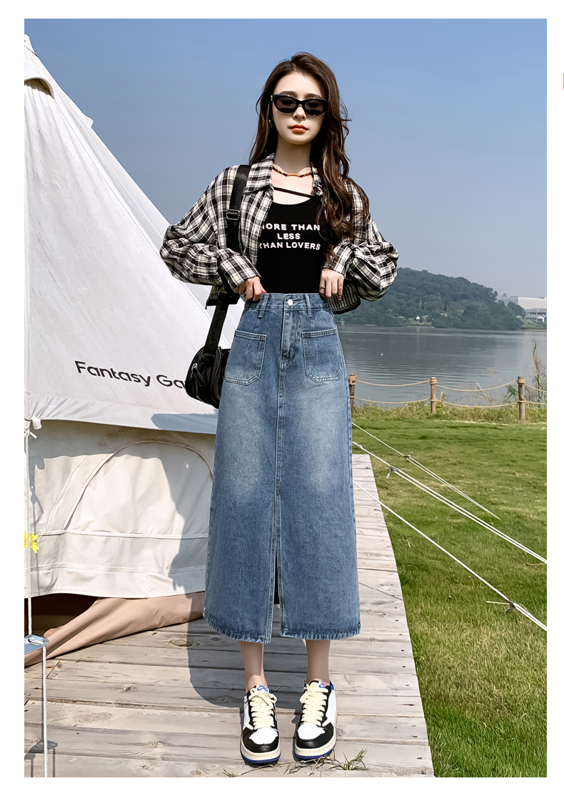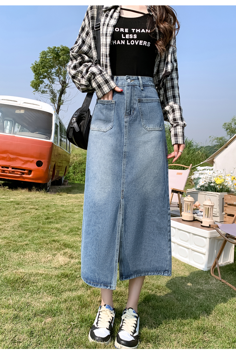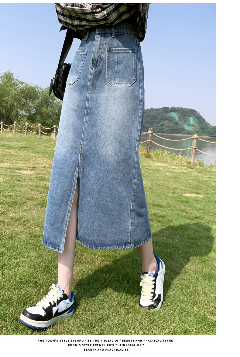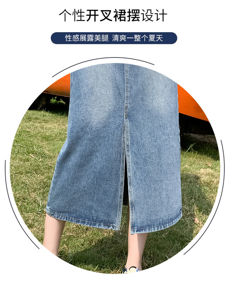 RM30666#高腰开叉牛仔半身裙女2023年中长款梨型身材遮胯a字小个子包臀裙
