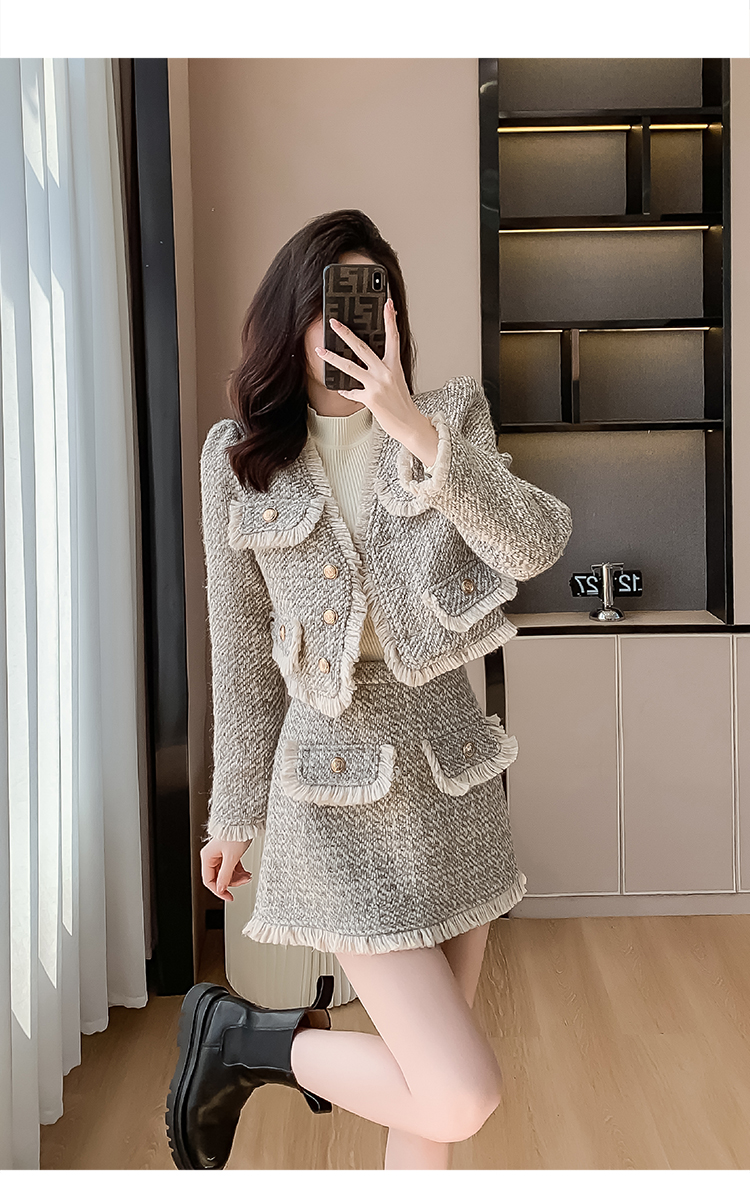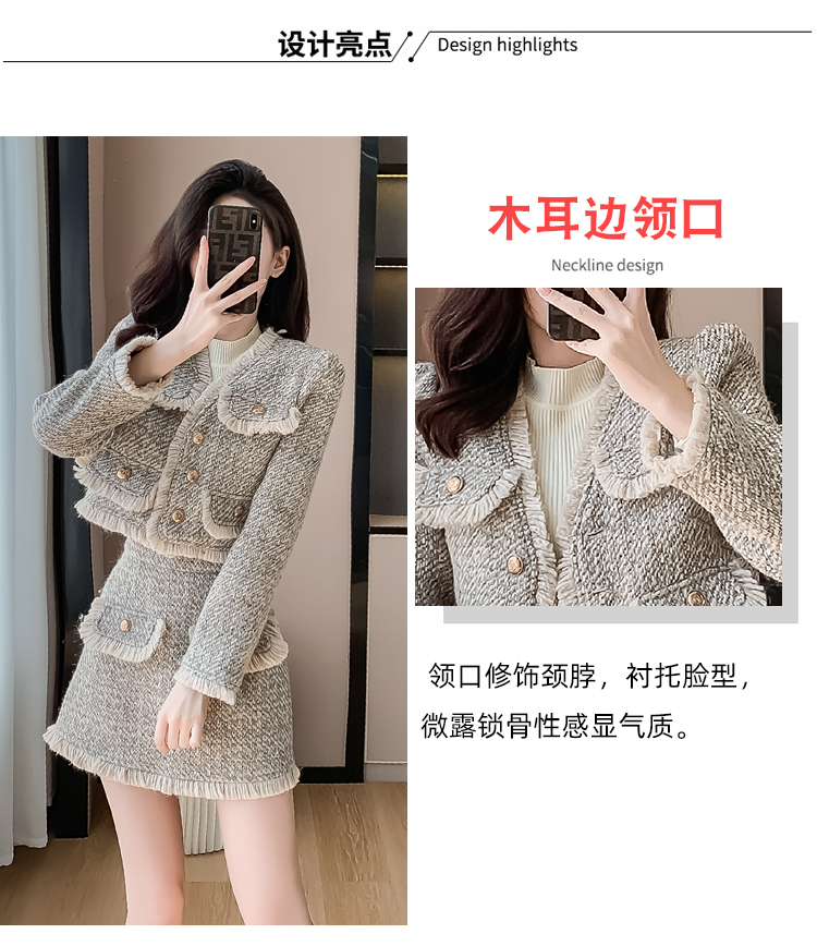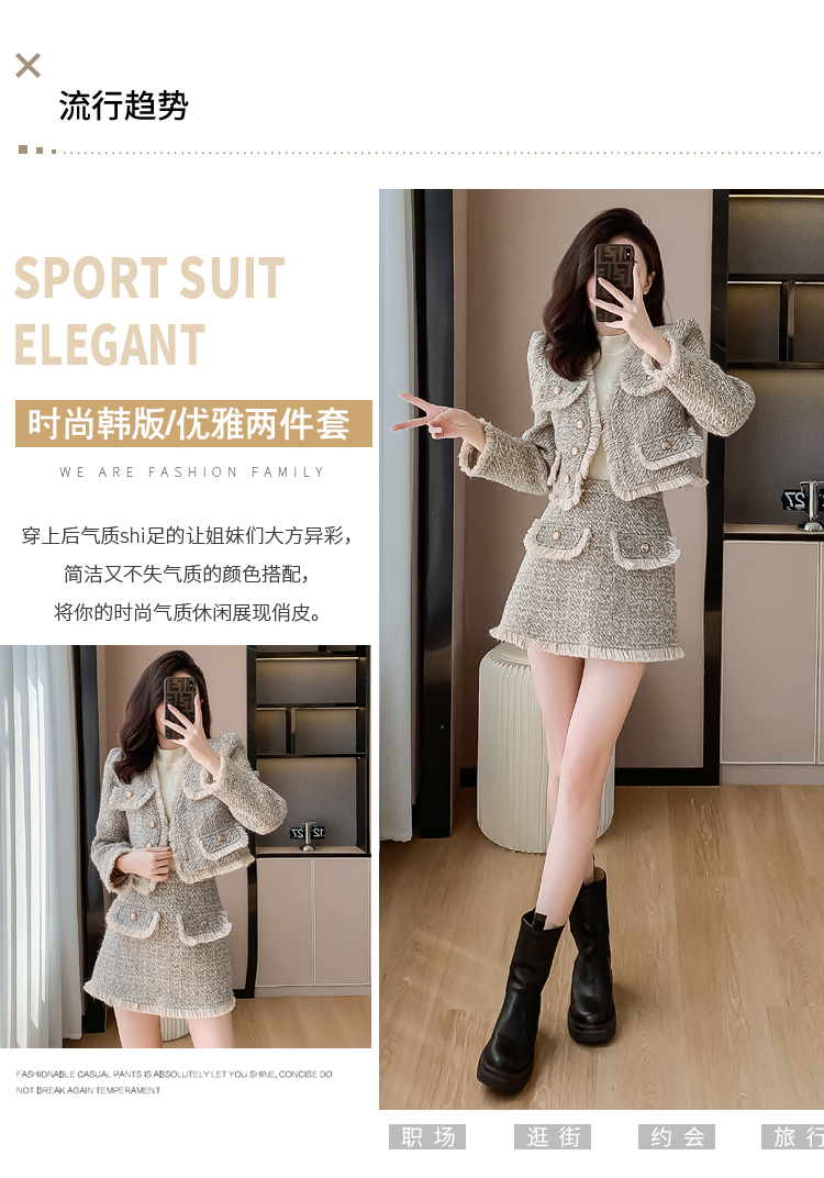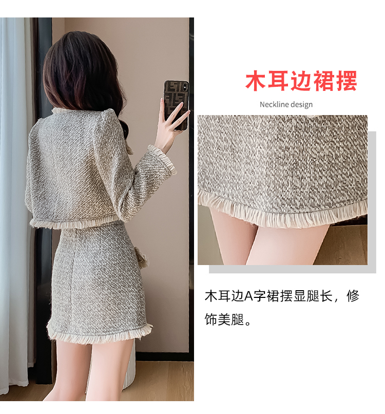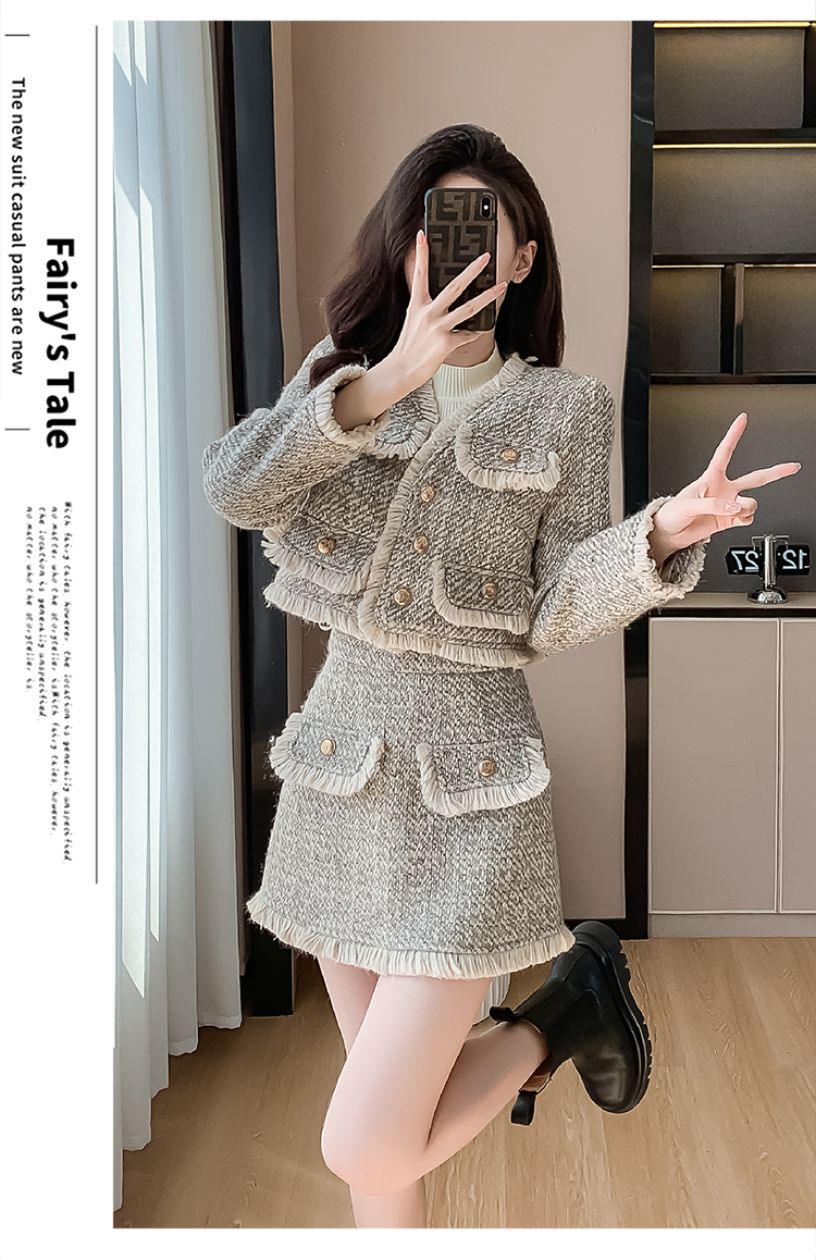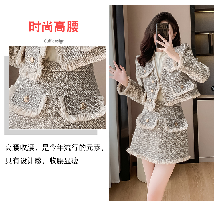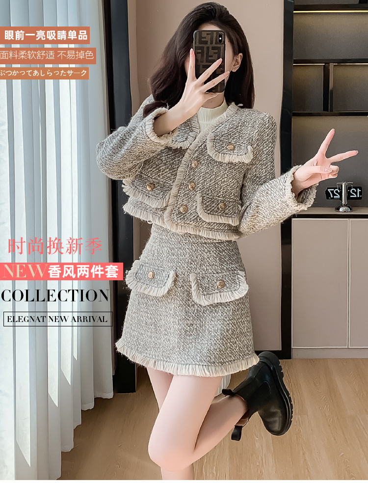 RM30683#新款小香风套装女秋冬季气质外套流苏半身裙