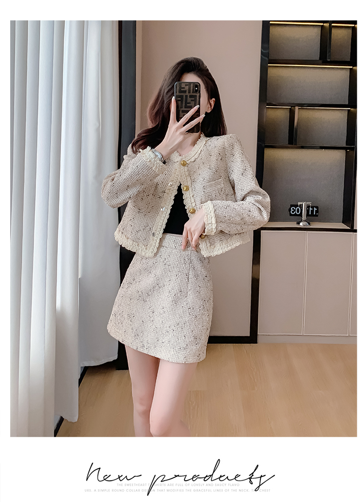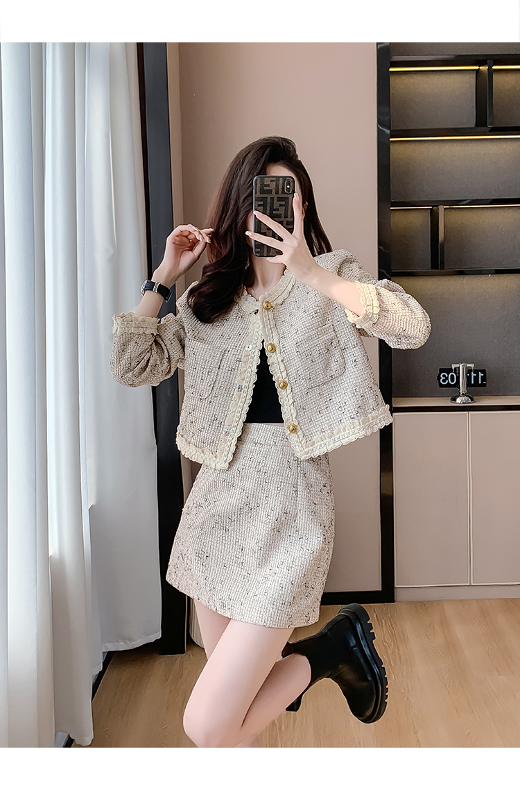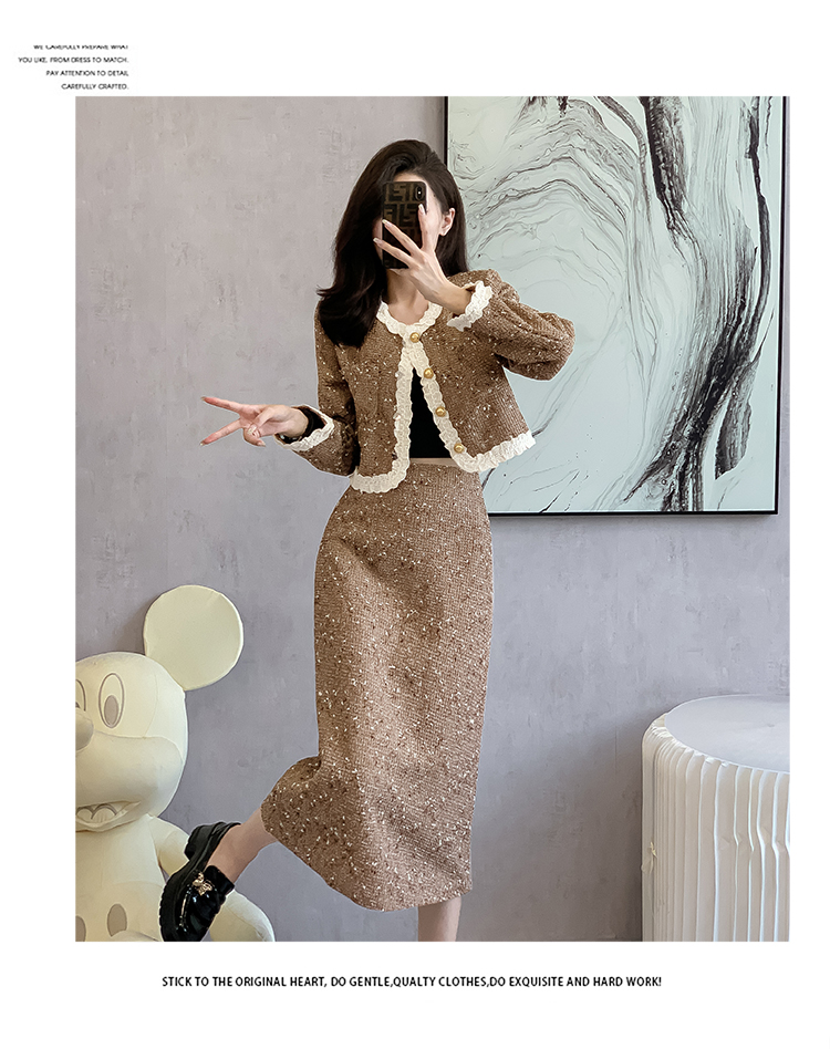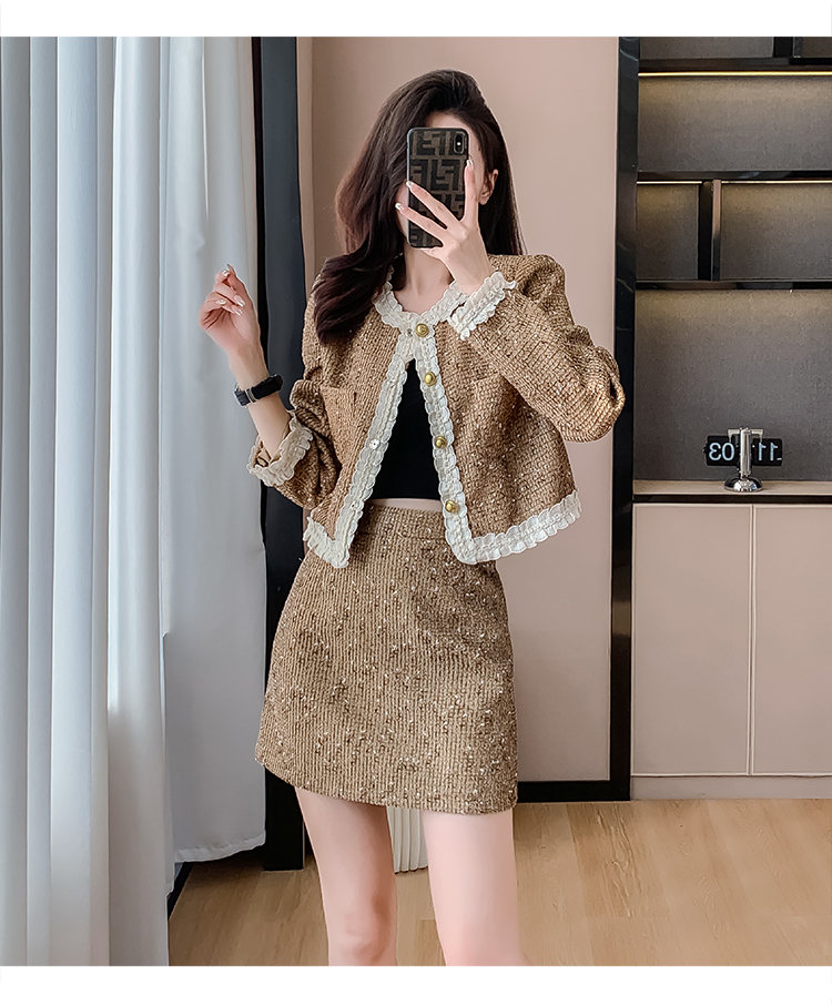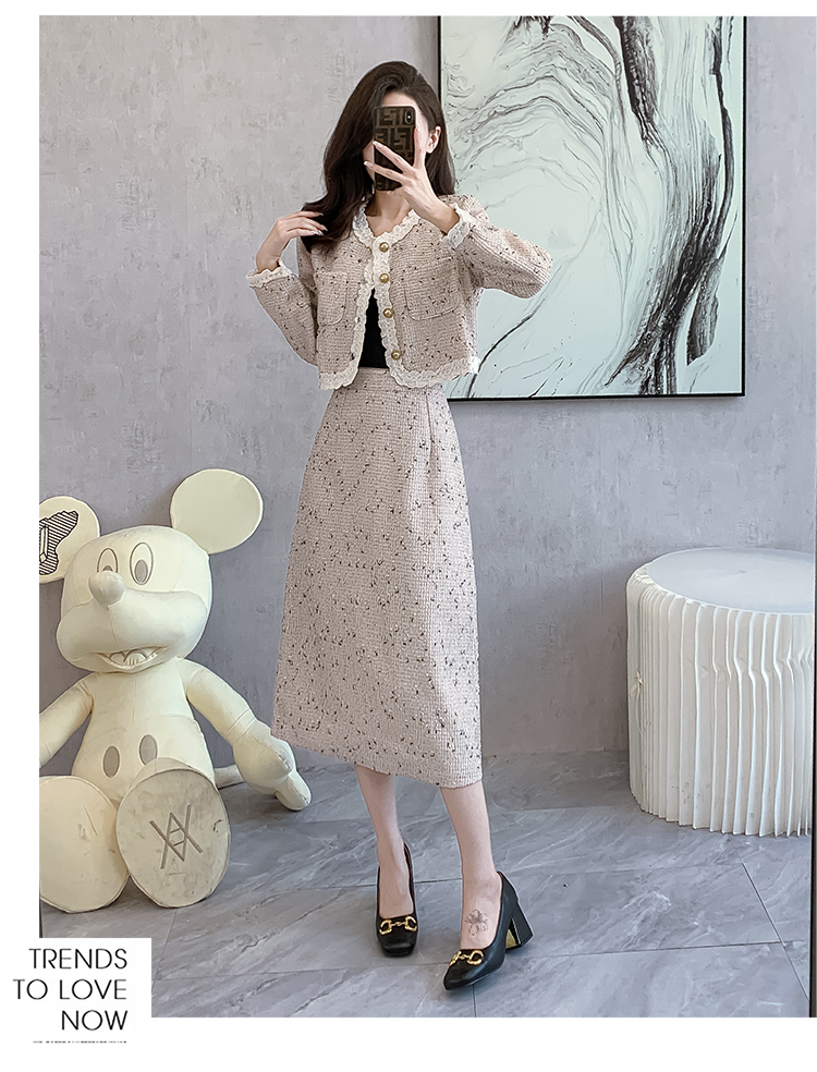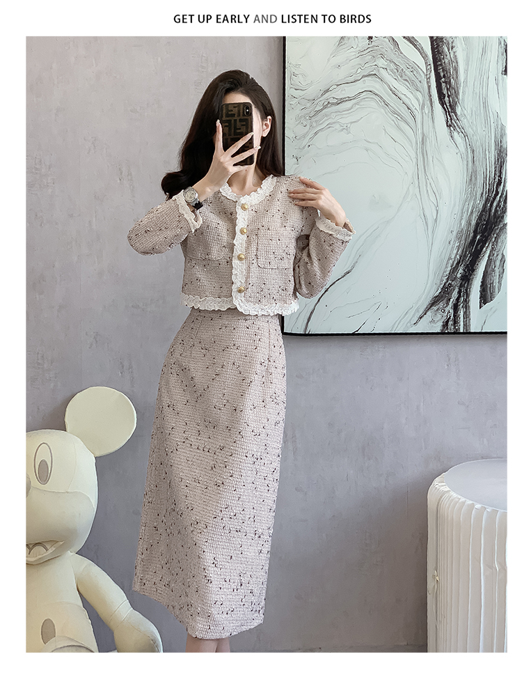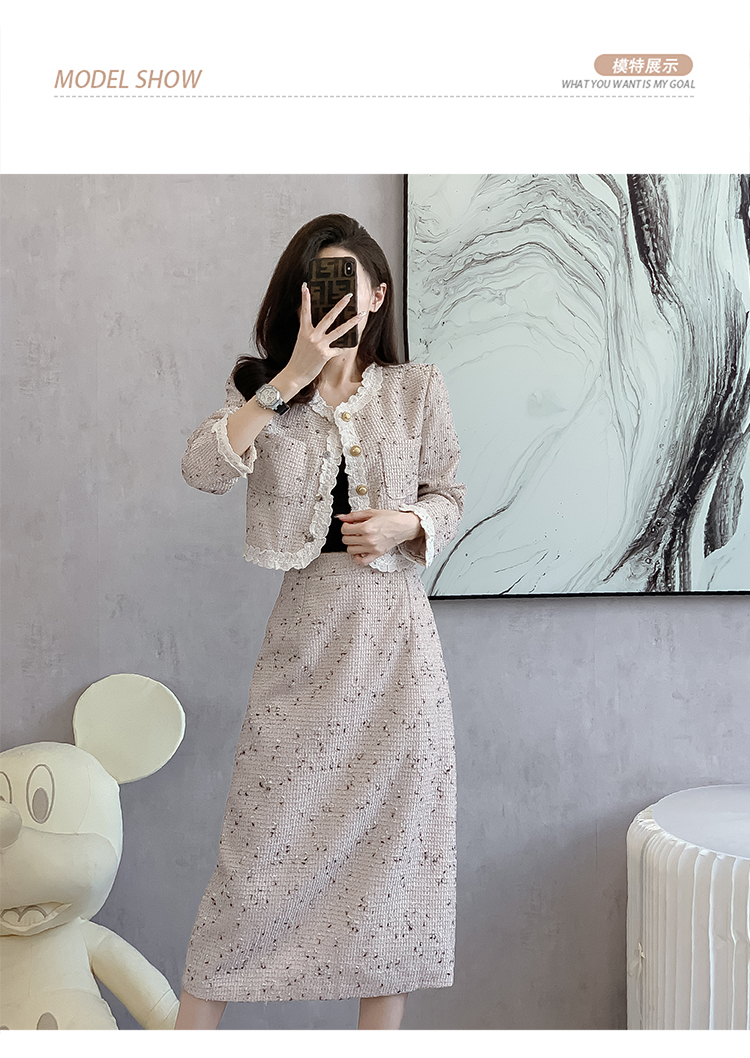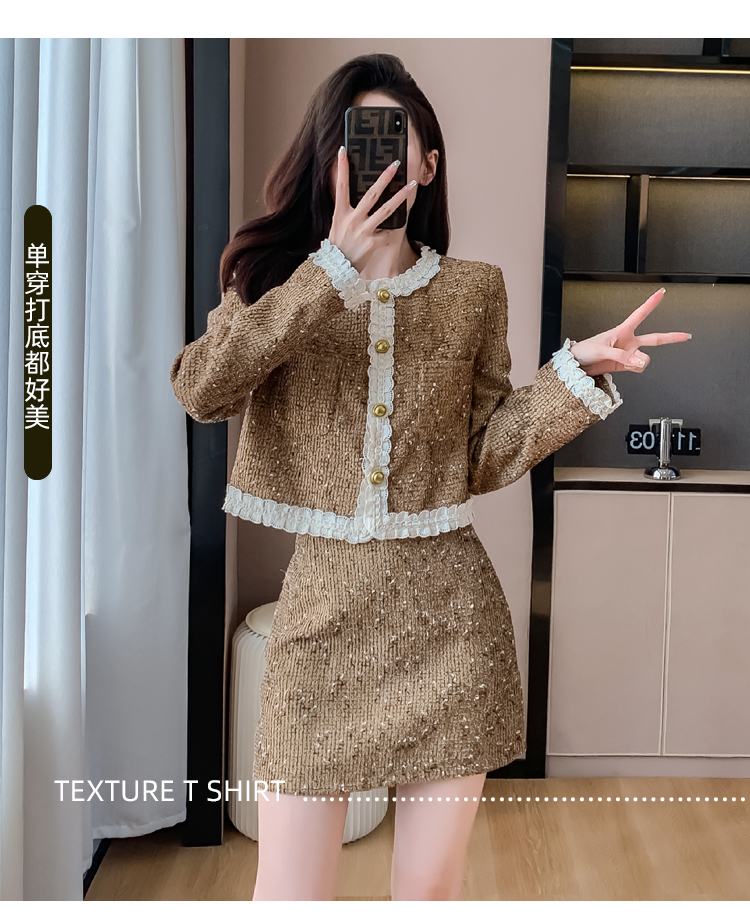 RM30684#新款小香风套装裙女高级感法式高端花边设计亮片两件套
