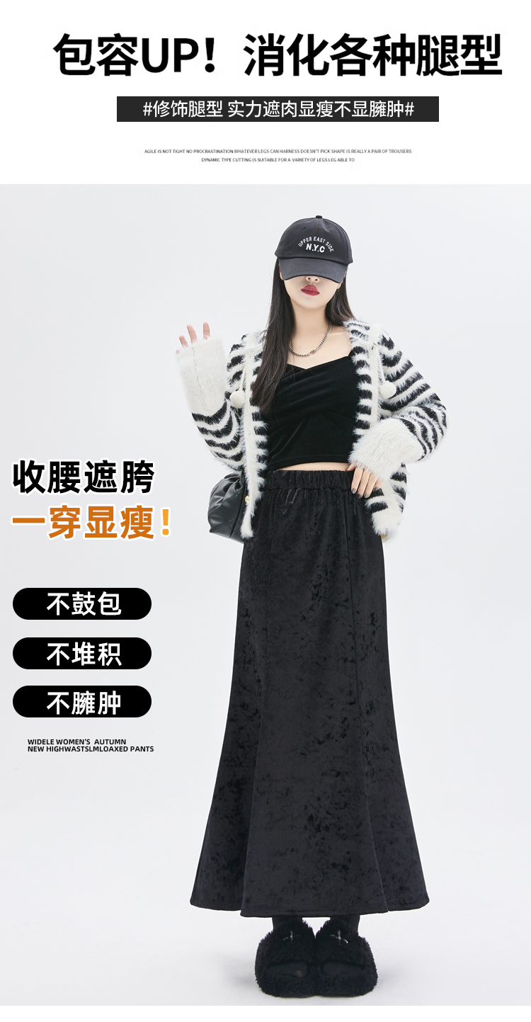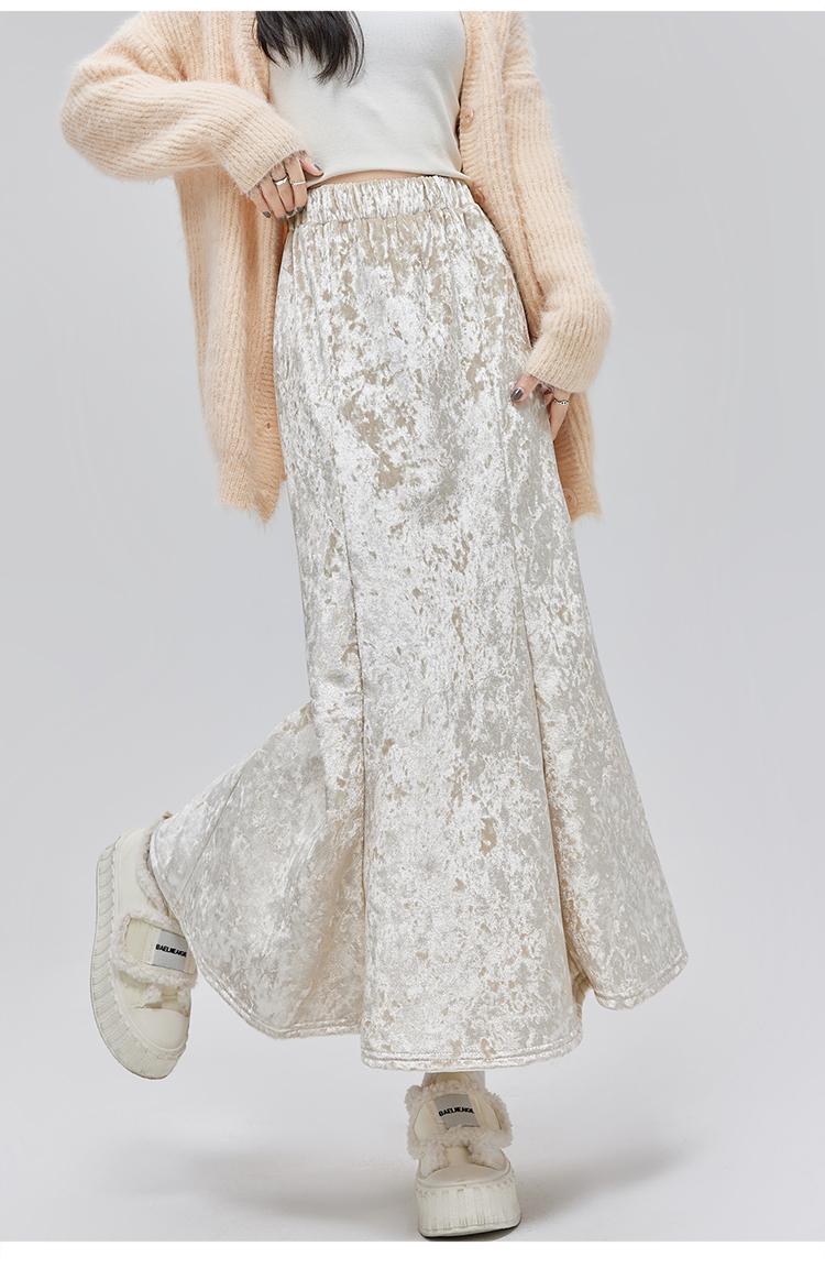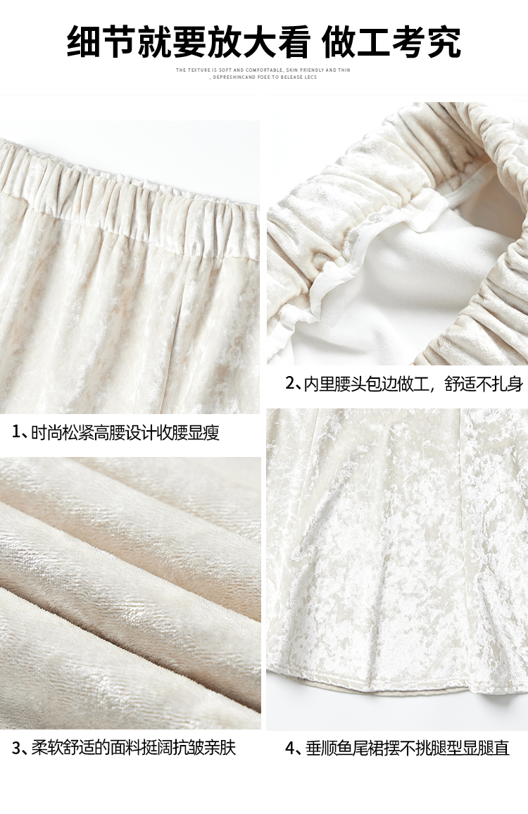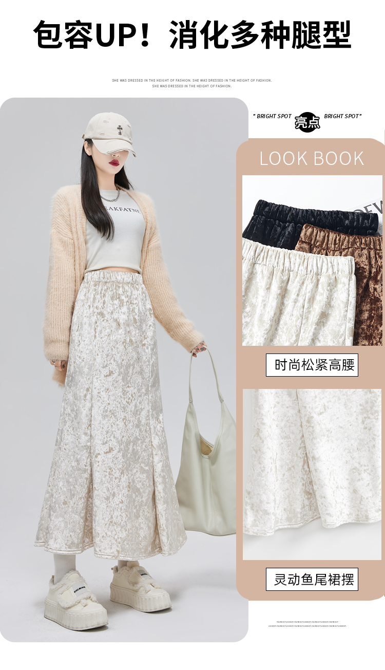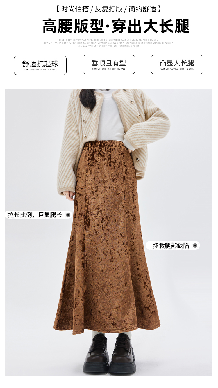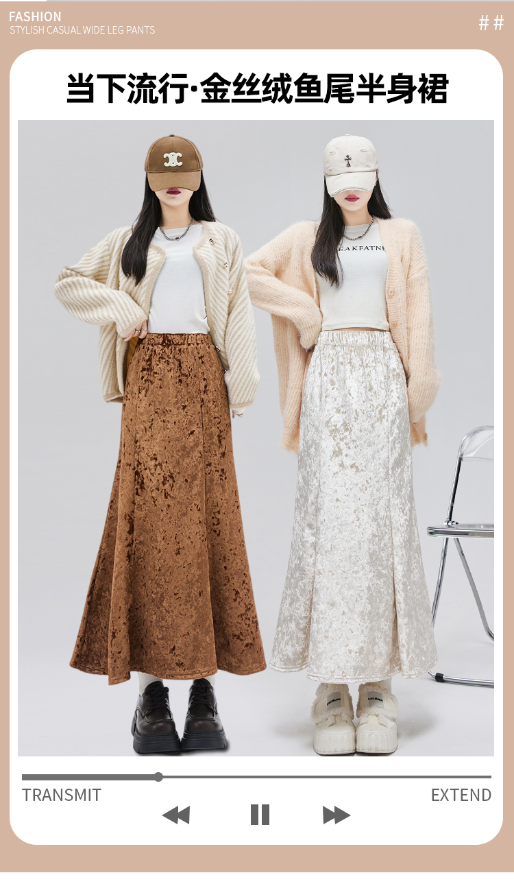 RM30703#加绒金丝绒半身裙女2023秋冬松紧腰高腰显瘦包臀鱼尾裙中长裙