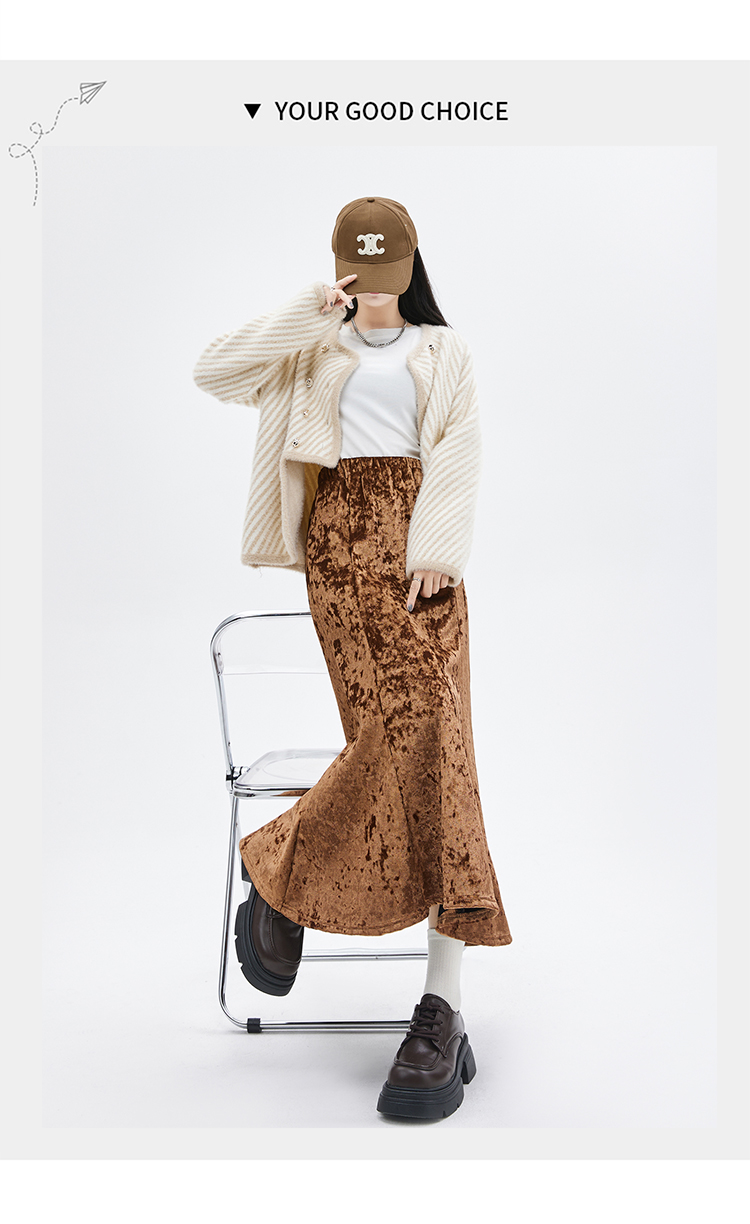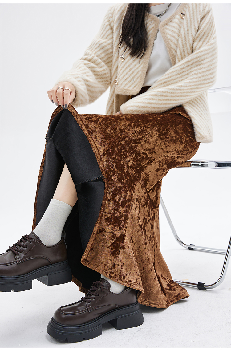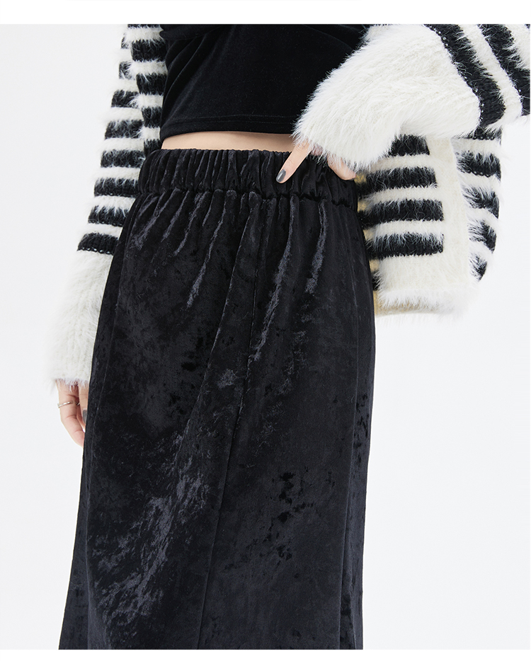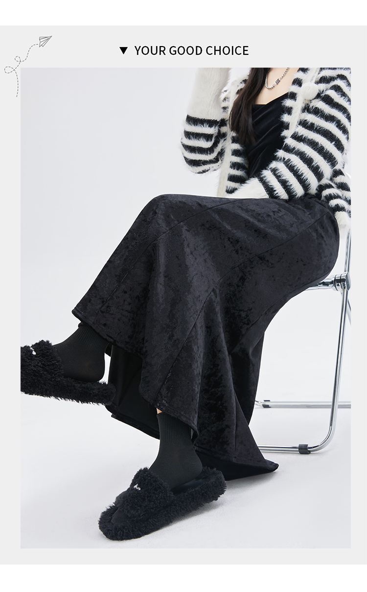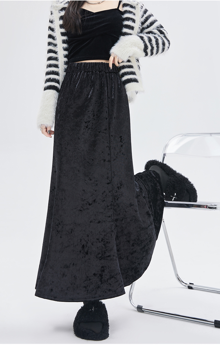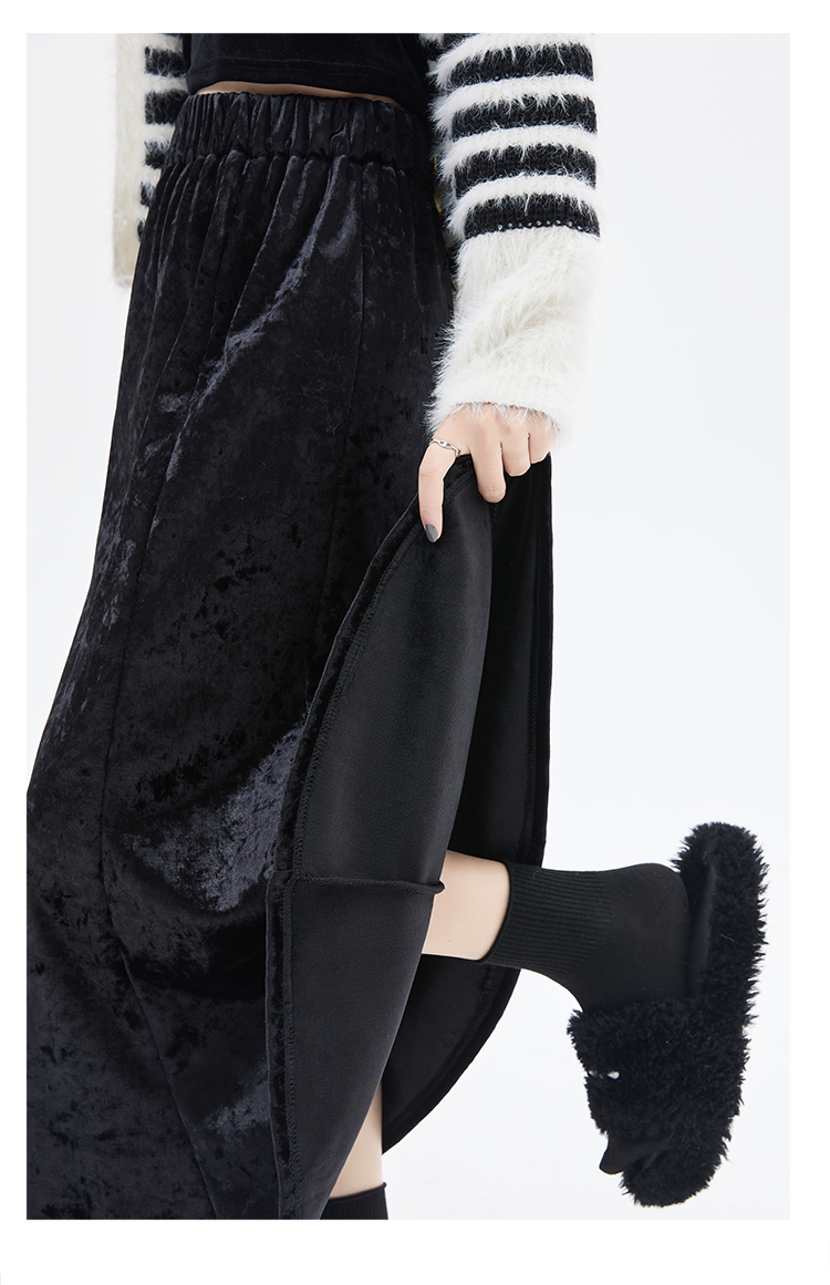 RM30703#加绒金丝绒半身裙女2023秋冬松紧腰高腰显瘦包臀鱼尾裙中长裙