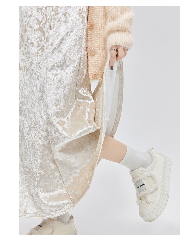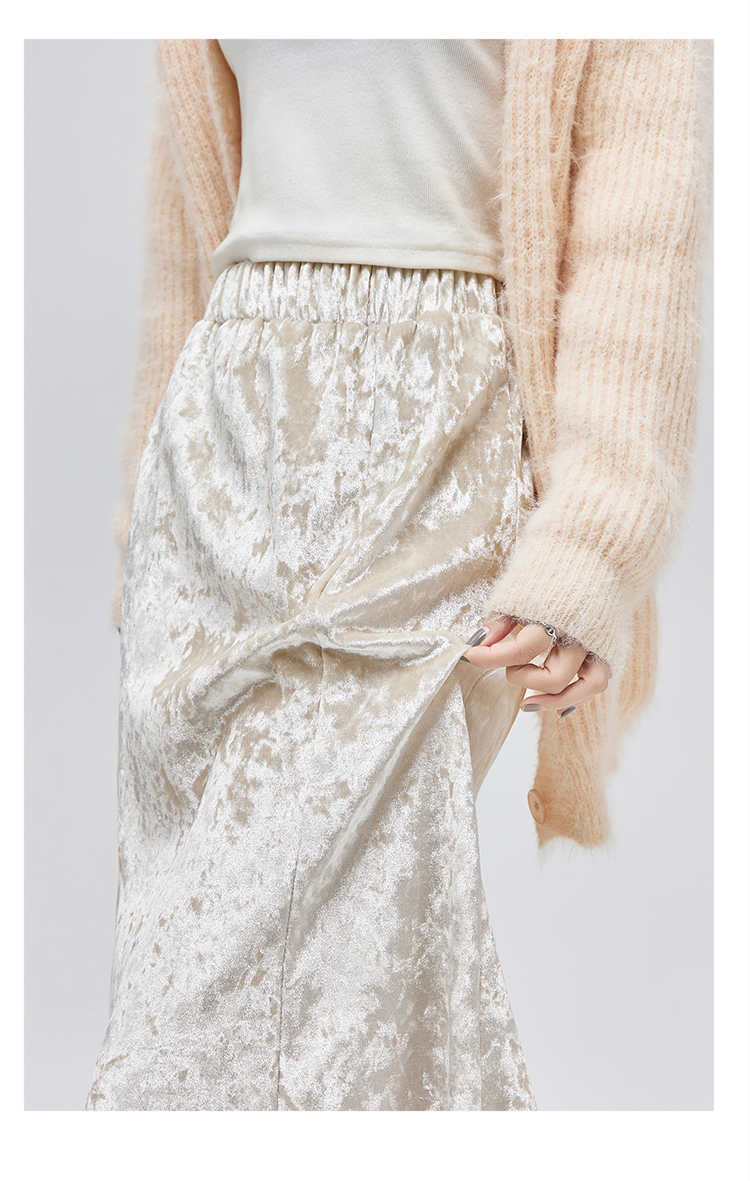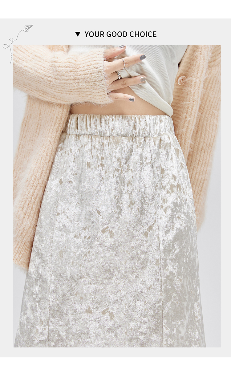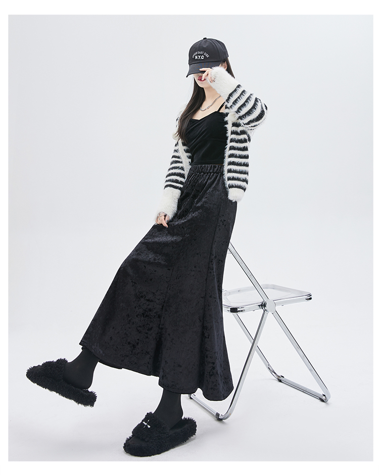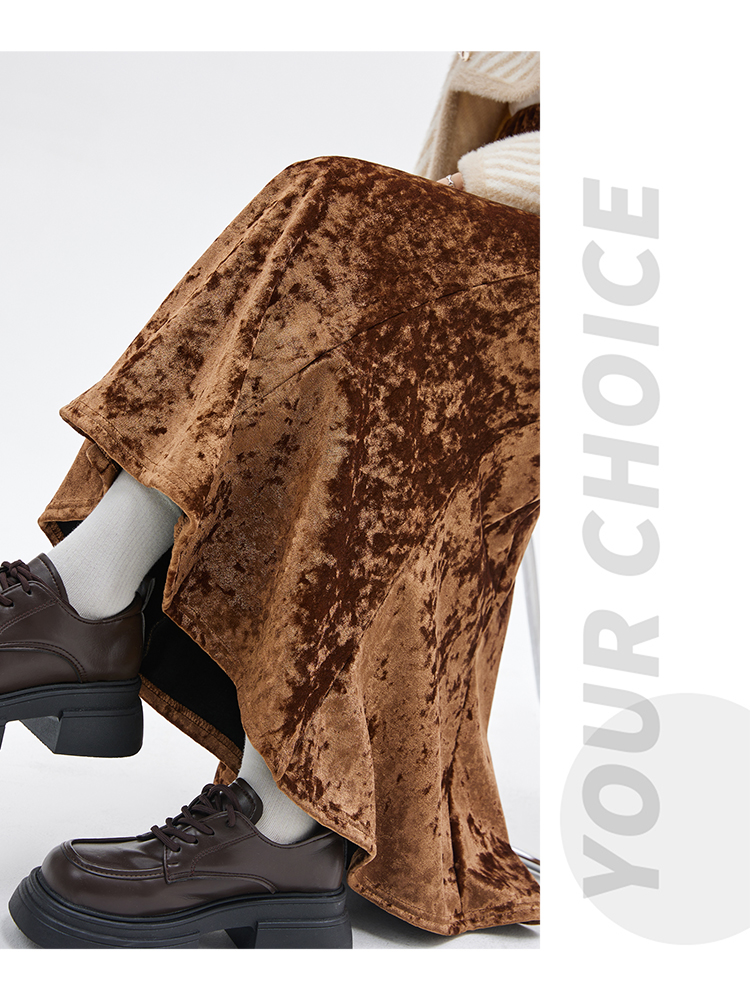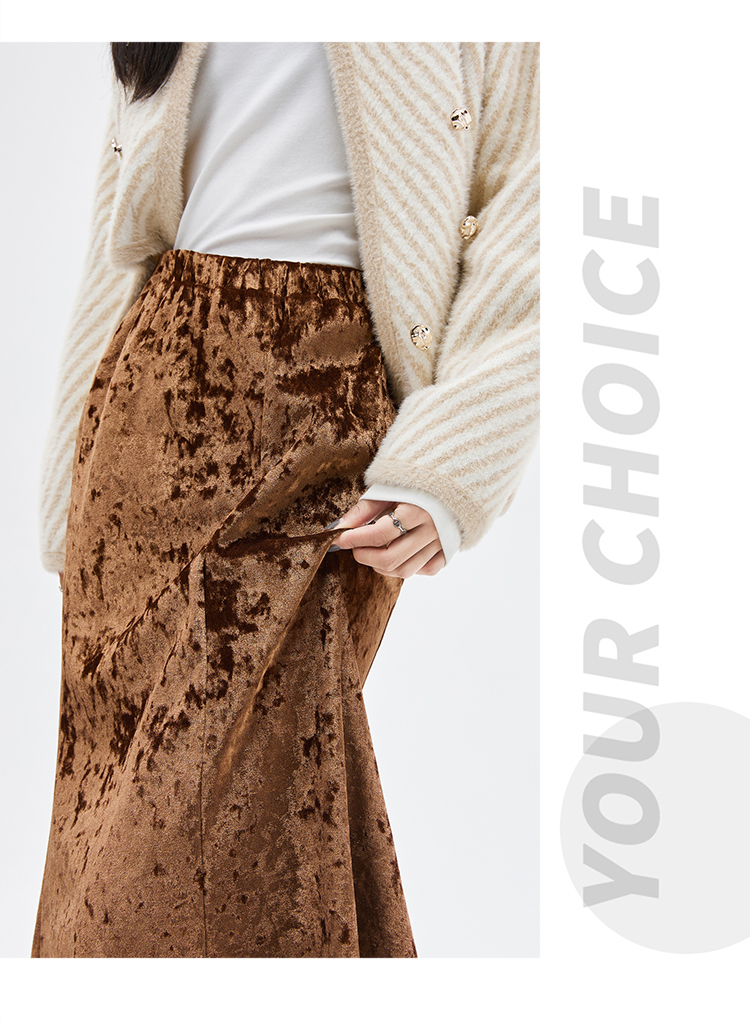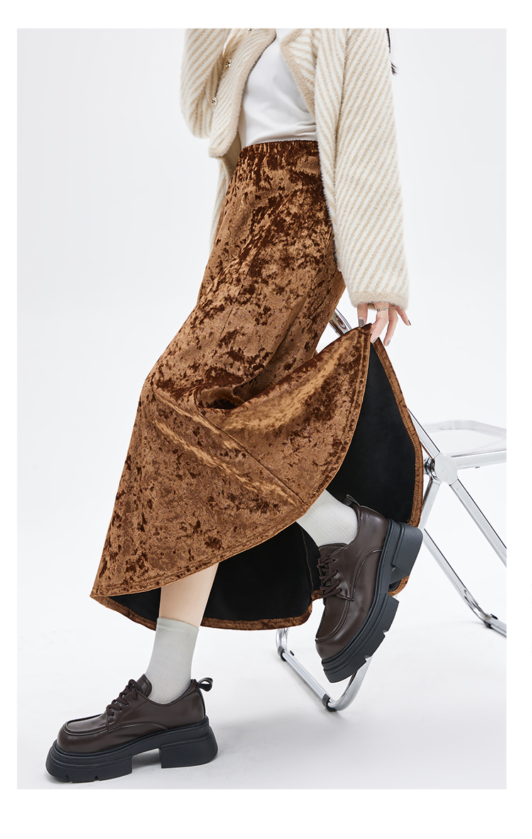 RM30703#加绒金丝绒半身裙女2023秋冬松紧腰高腰显瘦包臀鱼尾裙中长裙