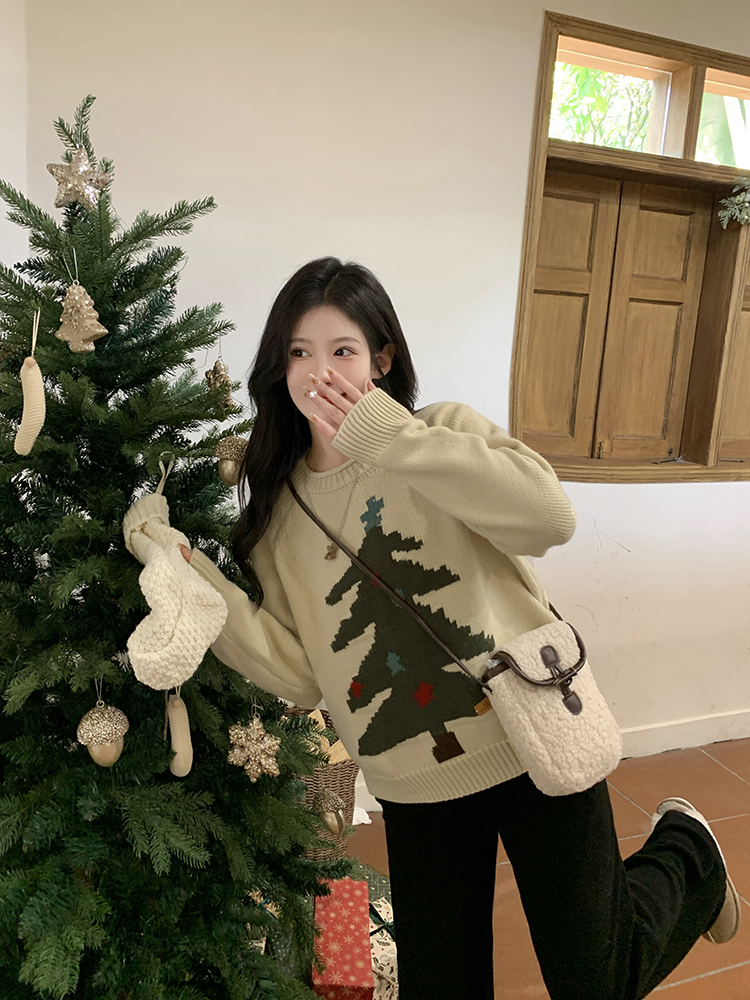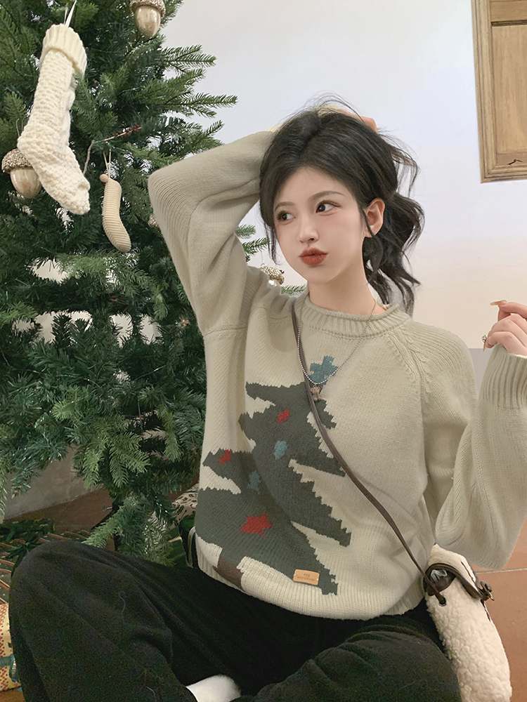 RM30718#大码女装2023秋冬圣诞树图案百搭毛衣胖MM藏肉显瘦毛衣女
