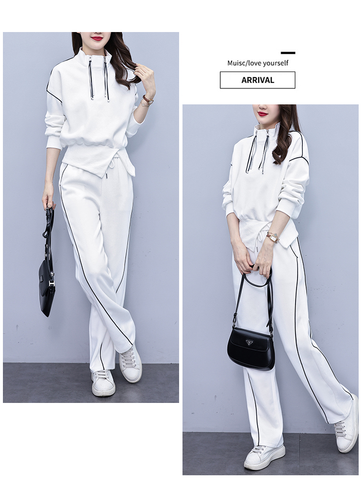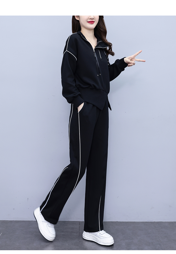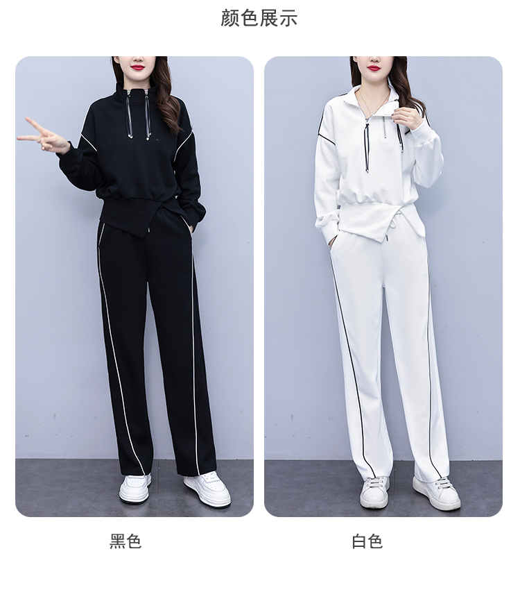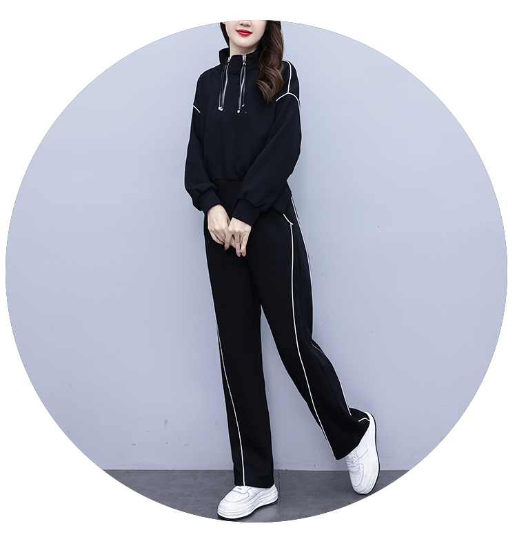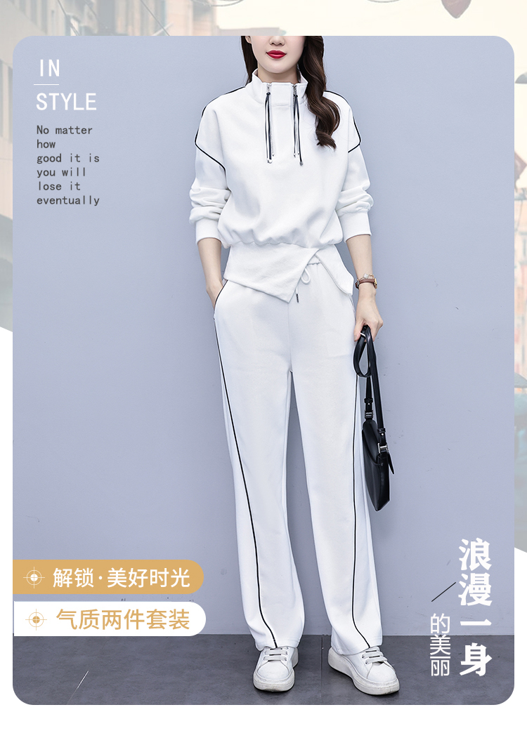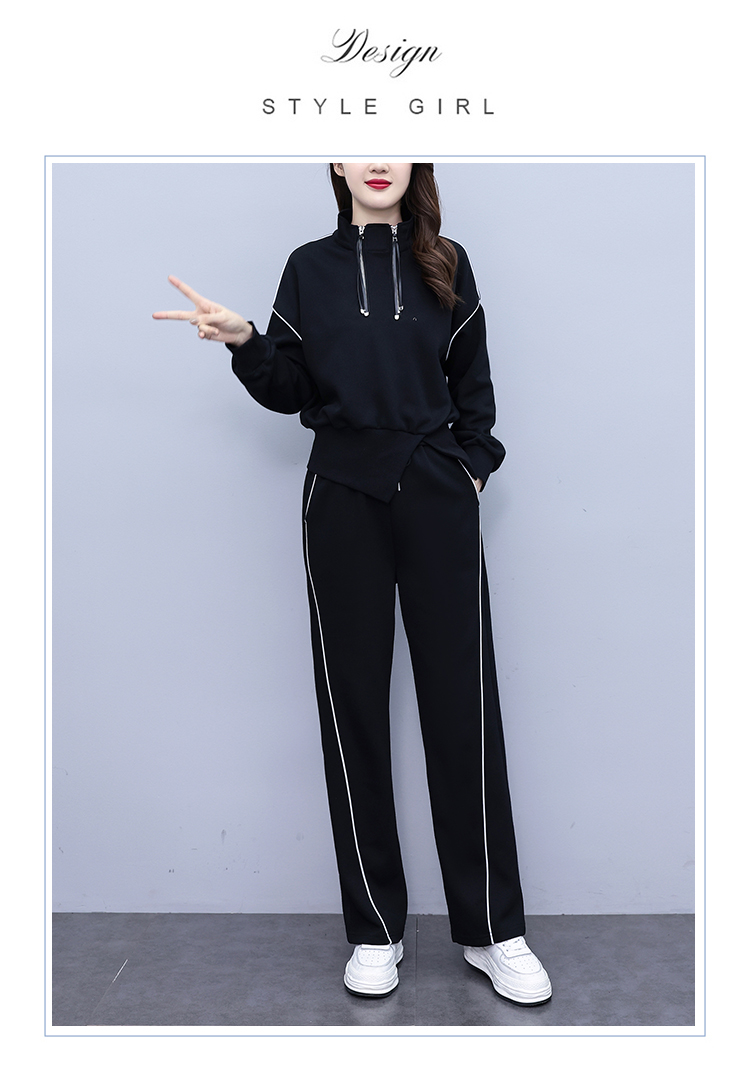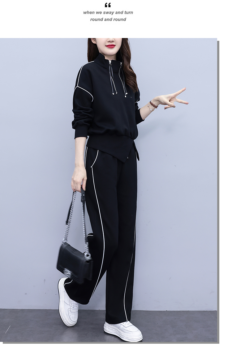 RM30727#高级感双拉链不规则上衣套装女2023秋季新款气质显腿长休闲两件套