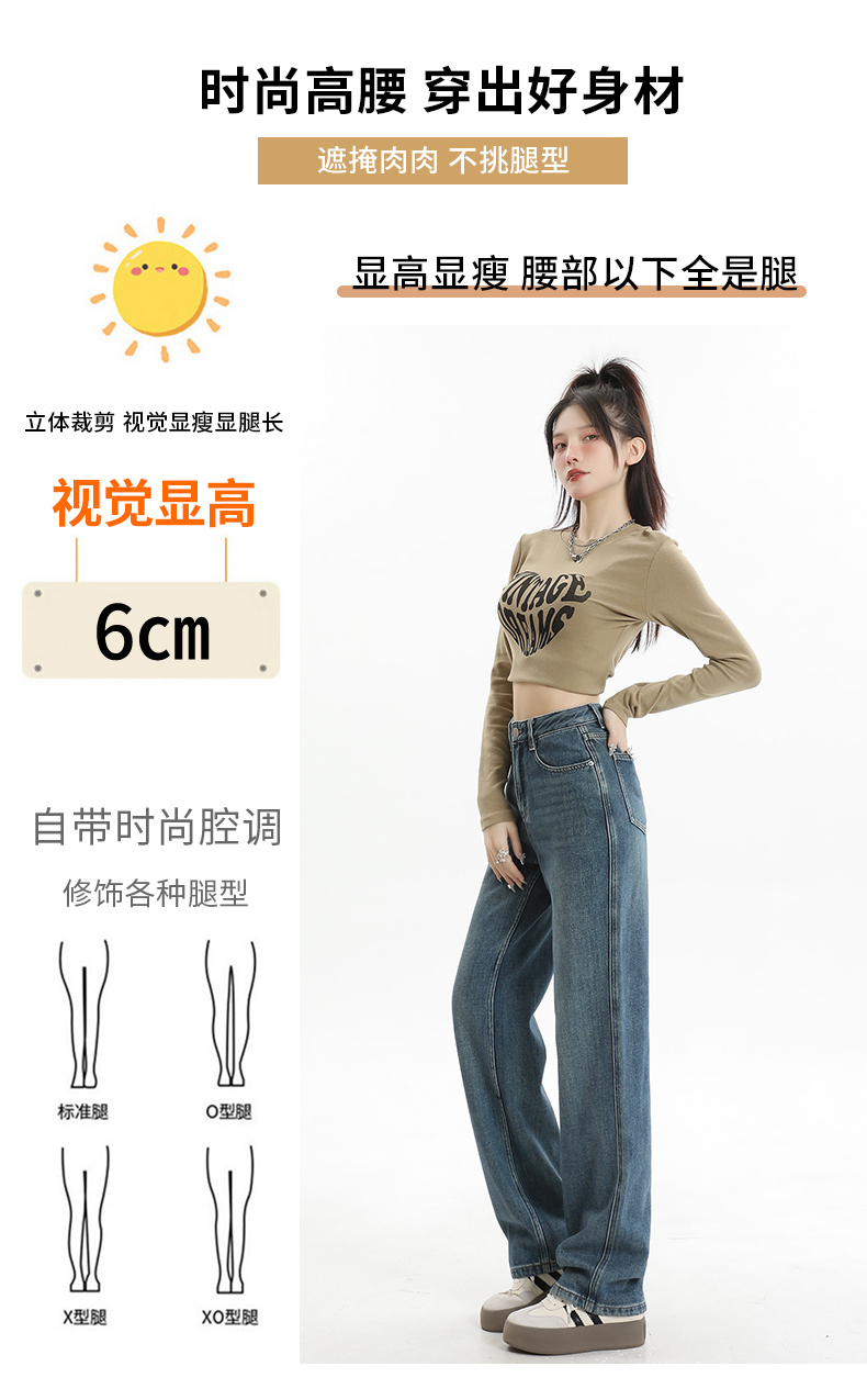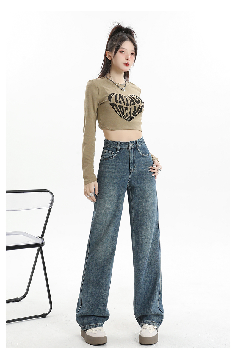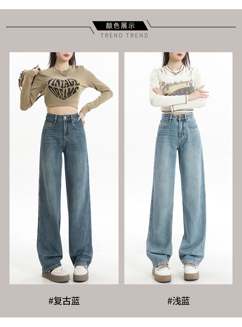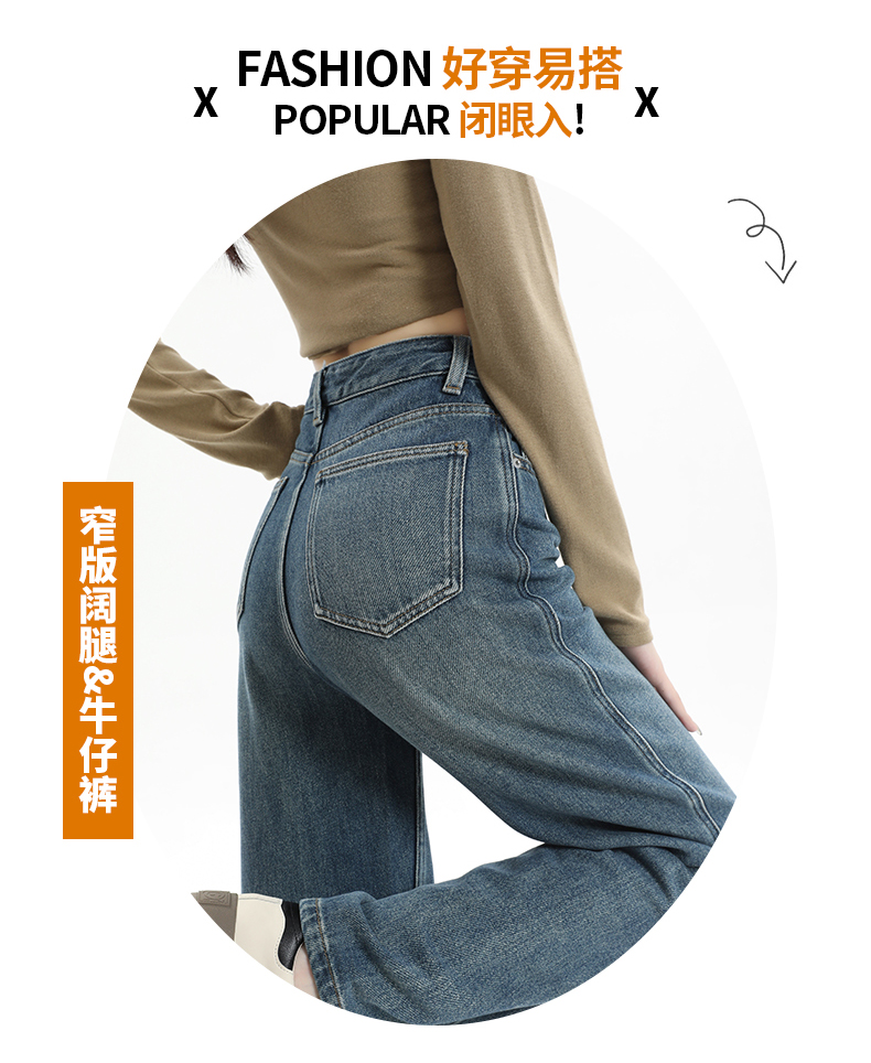 RM30742#阔腿牛仔裤女秋冬厚绒宽松高腰垂感百搭拖地裤显瘦直筒长裤子