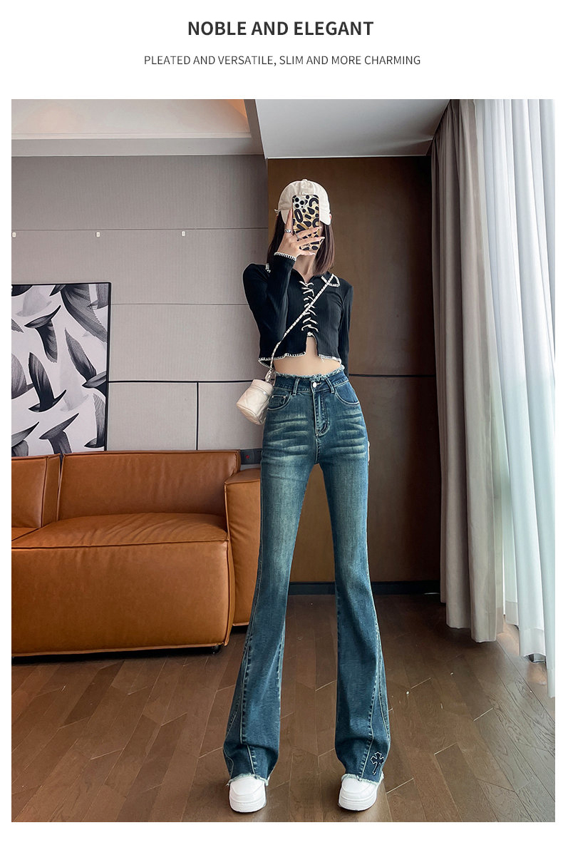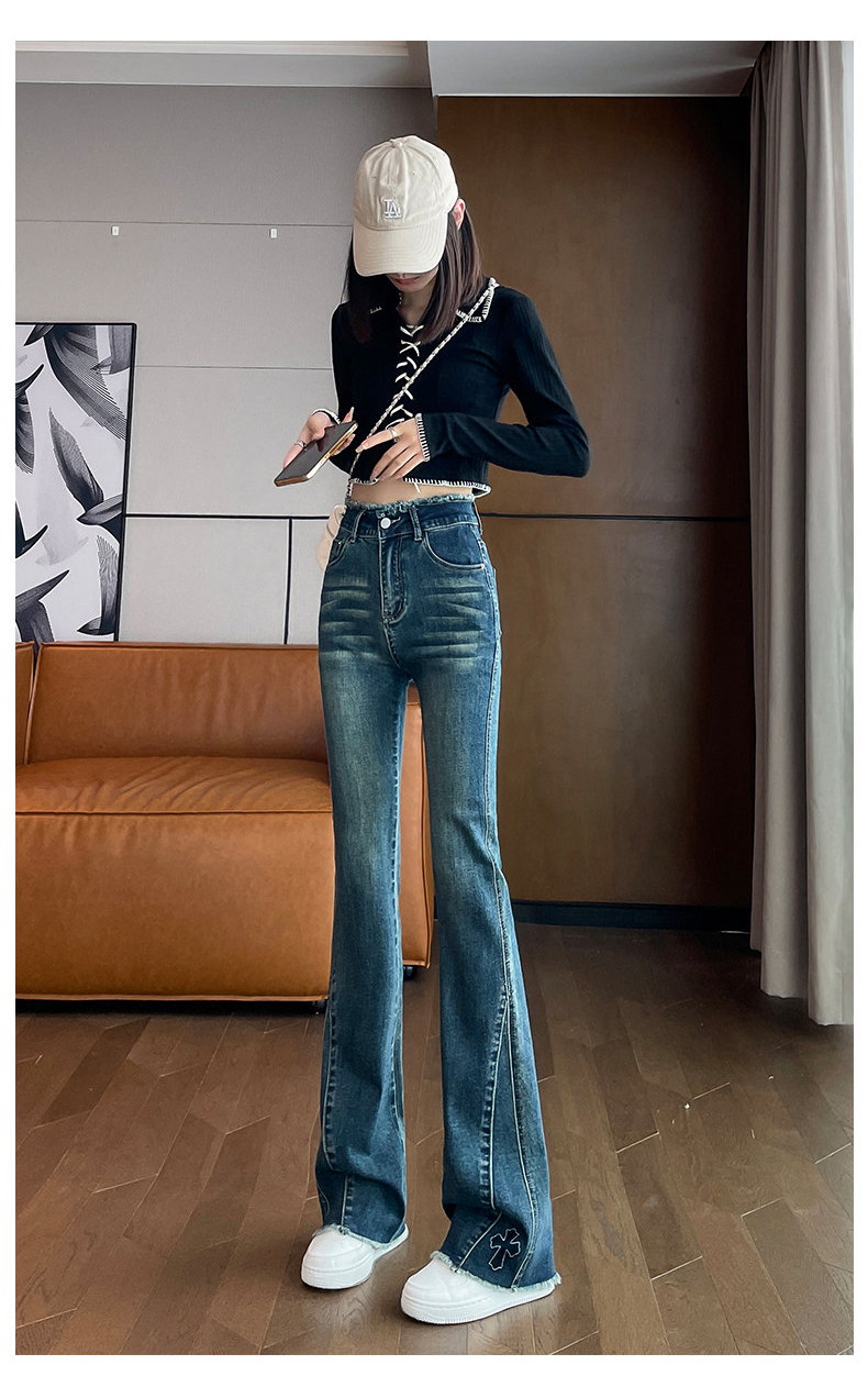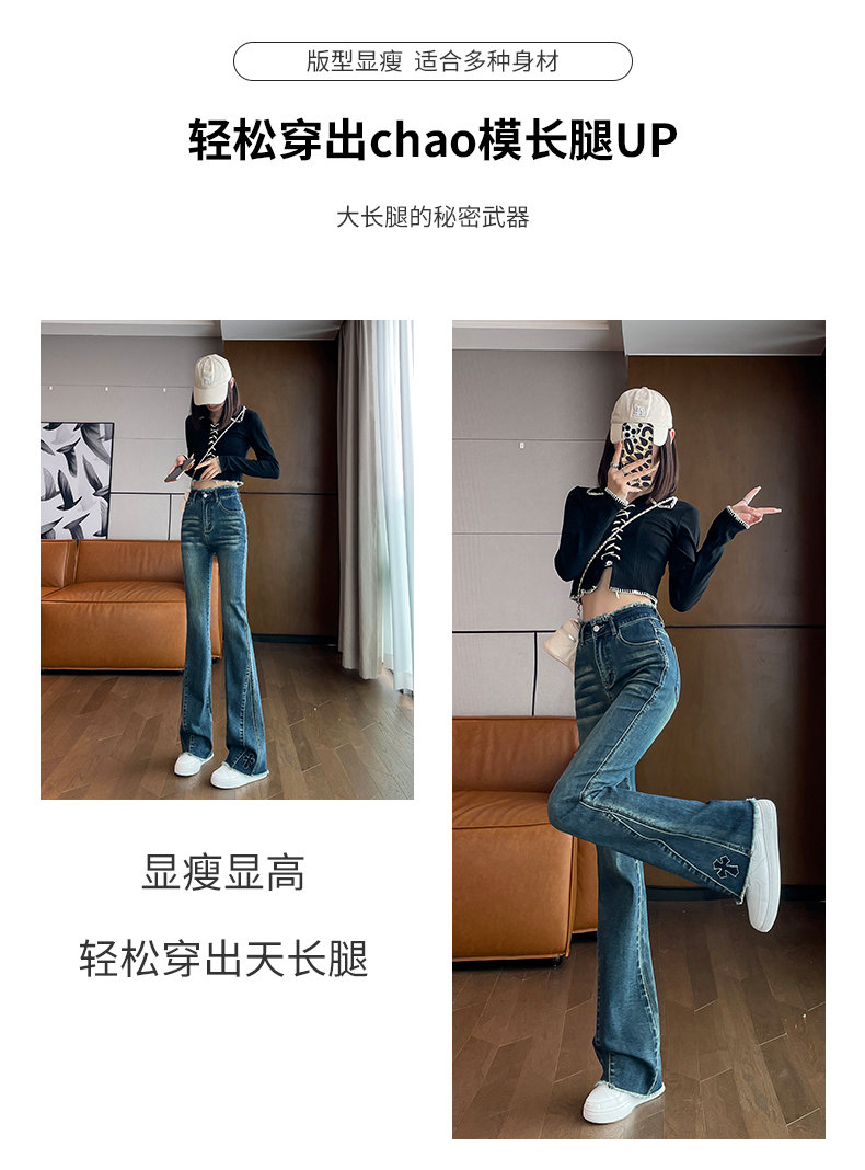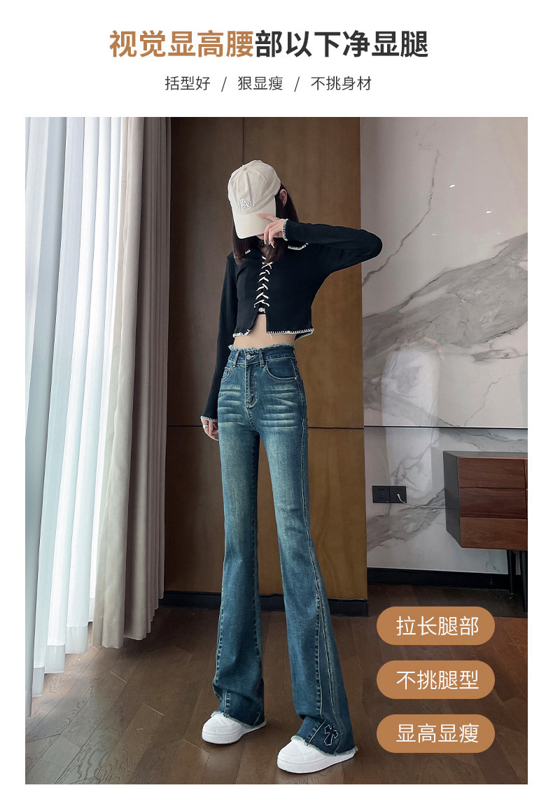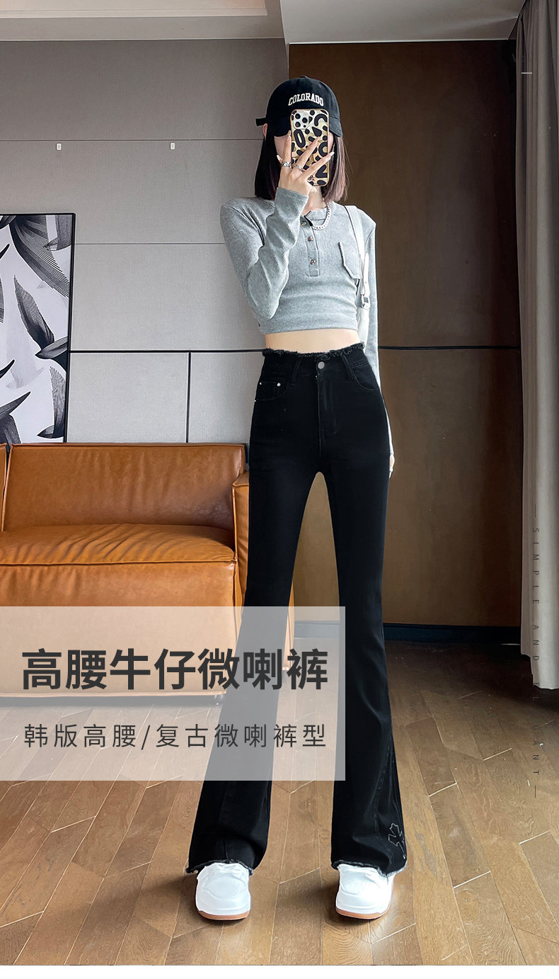 RM30744#高腰微喇牛仔裤女春秋季2024年新款时尚修身显瘦紧身拖地喇叭裤子