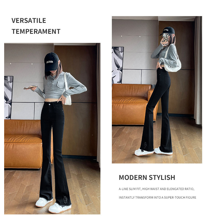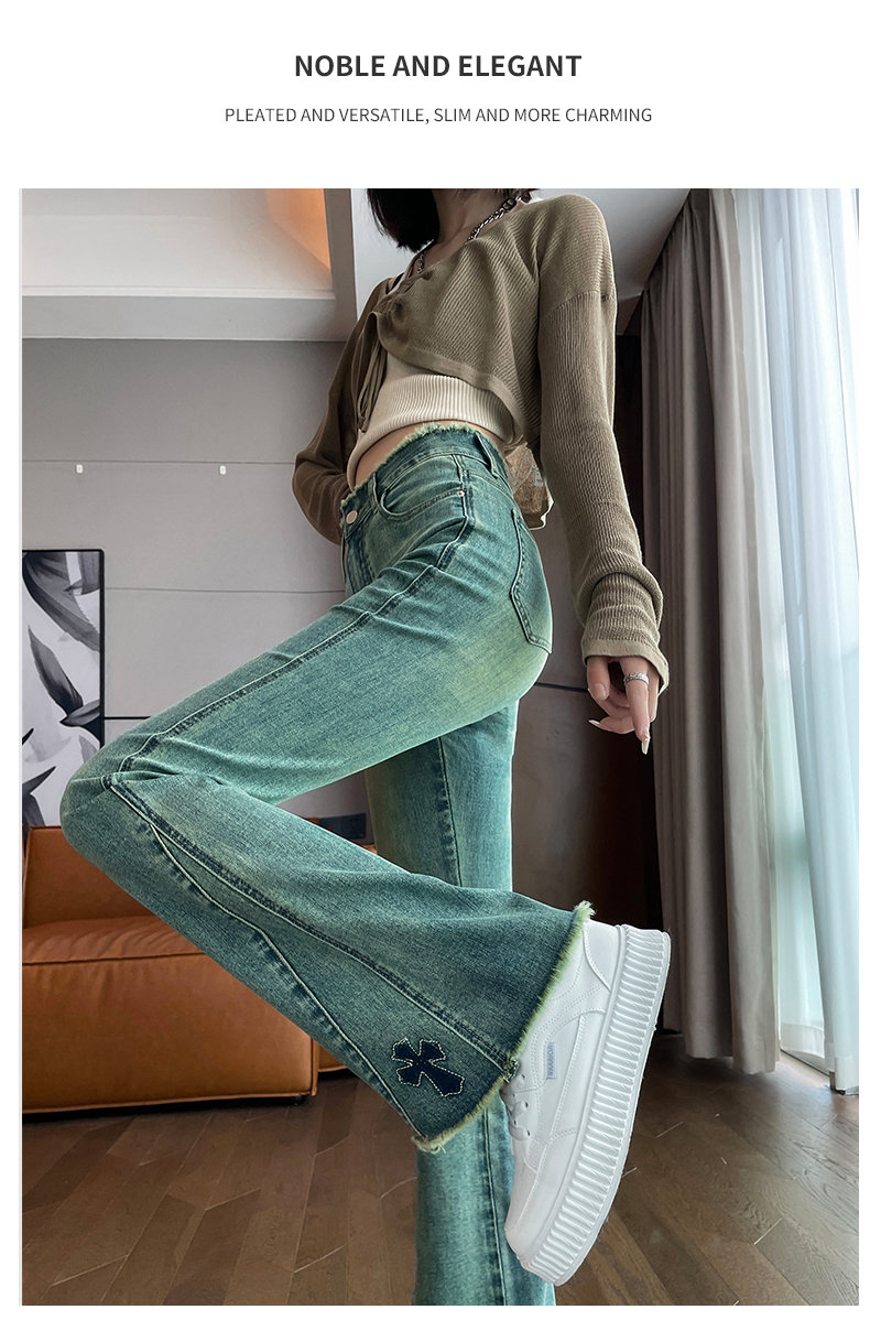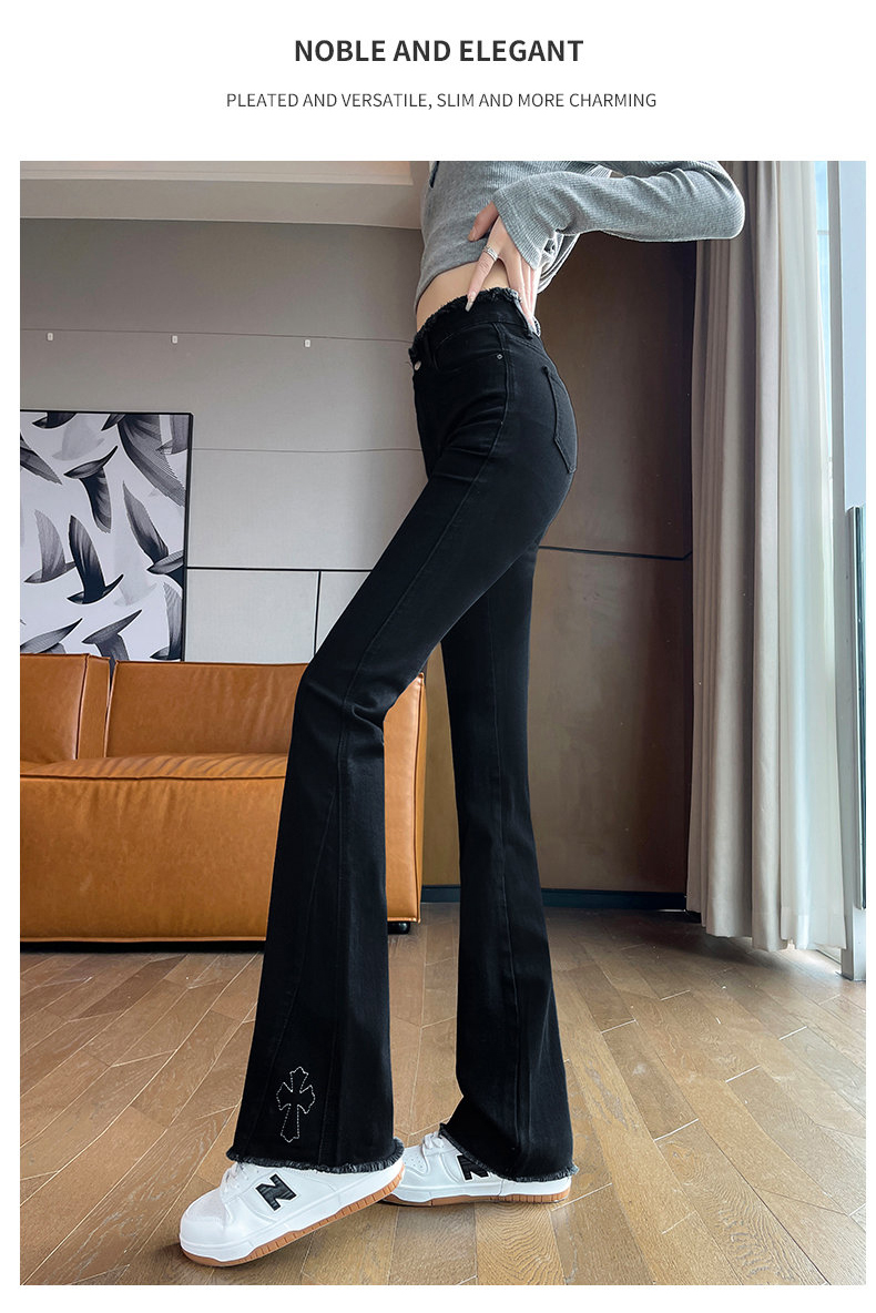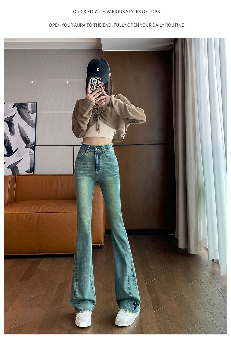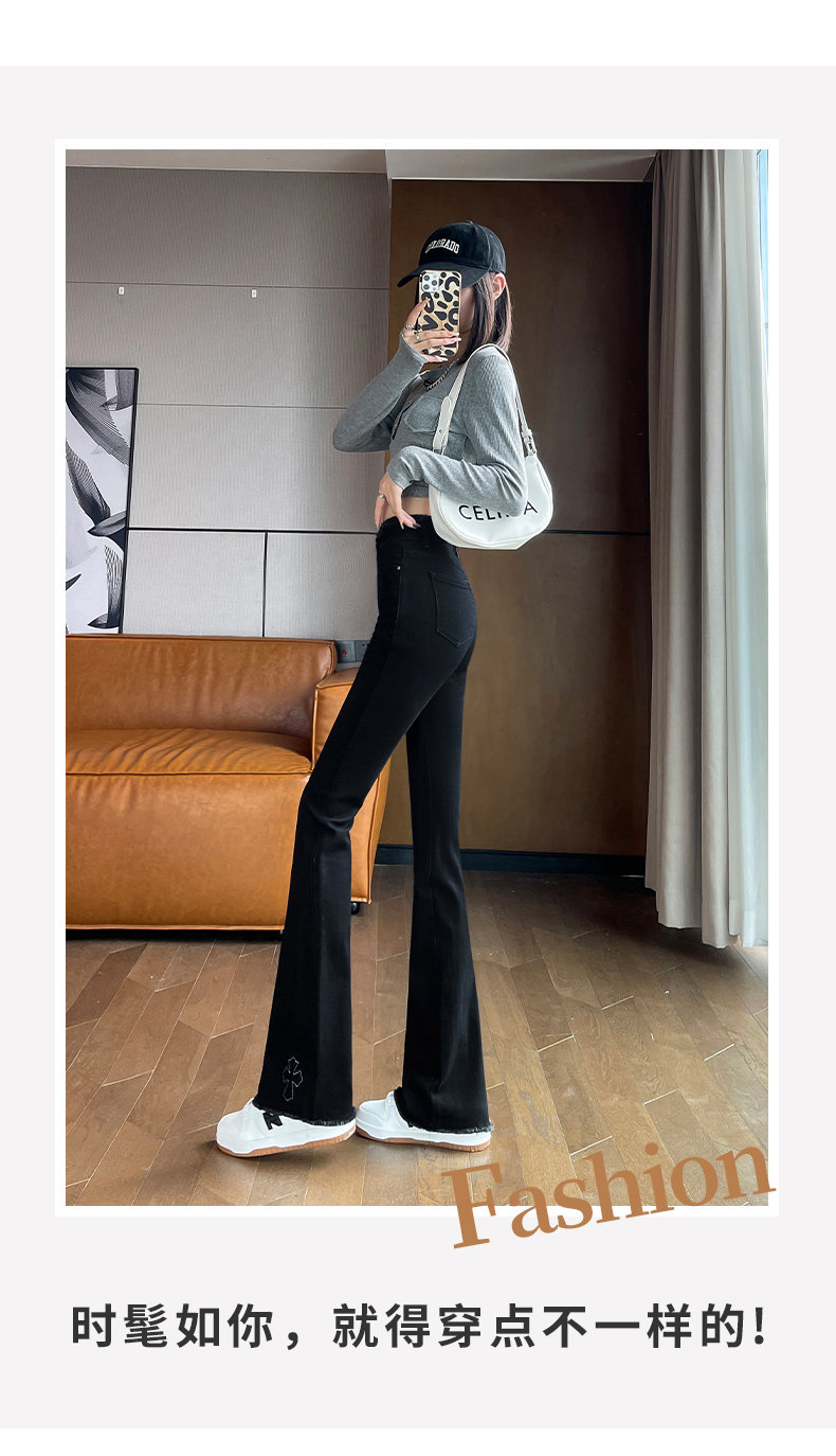 RM30744#高腰微喇牛仔裤女春秋季2024年新款时尚修身显瘦紧身拖地喇叭裤子