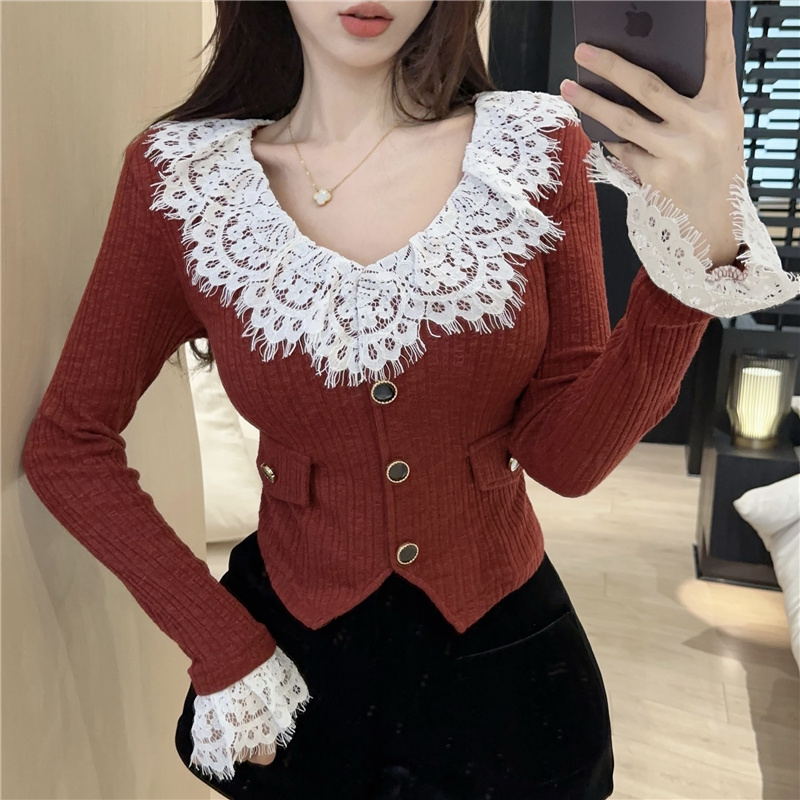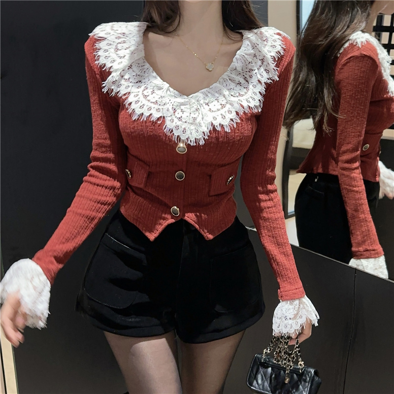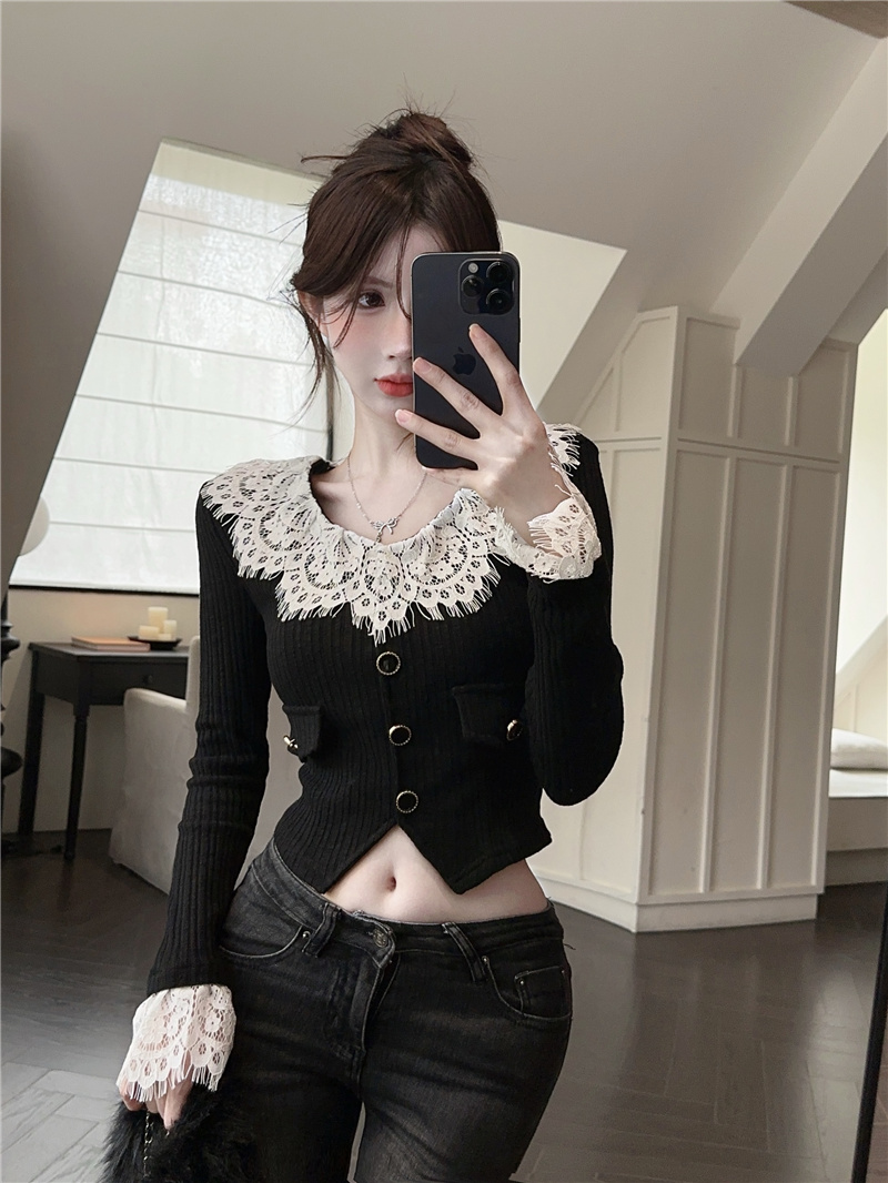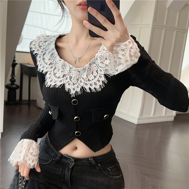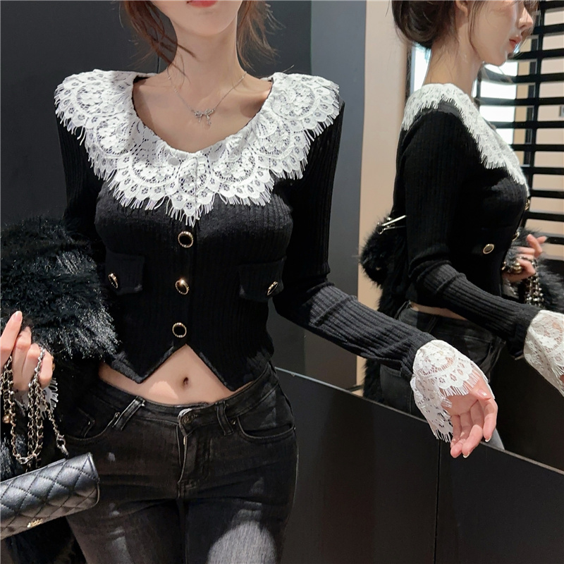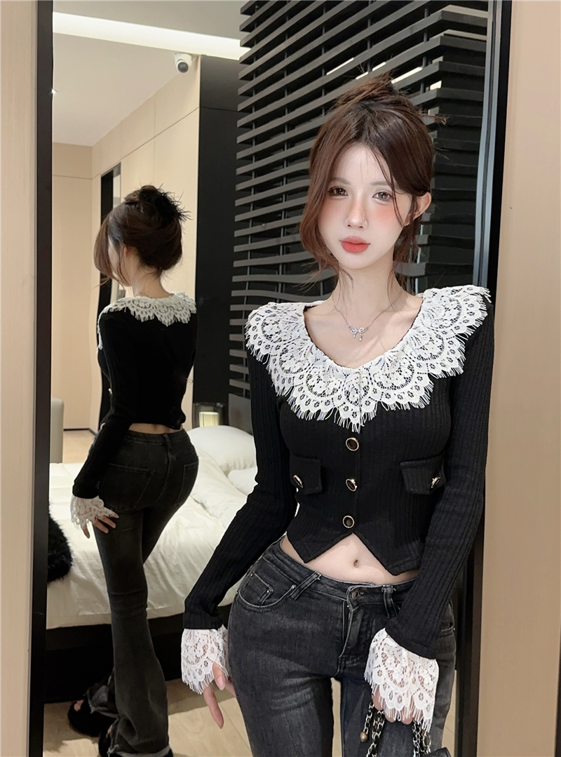 RM30760#蕾丝外套春季设计感小众温柔系小香风甜美针织开衫上衣
