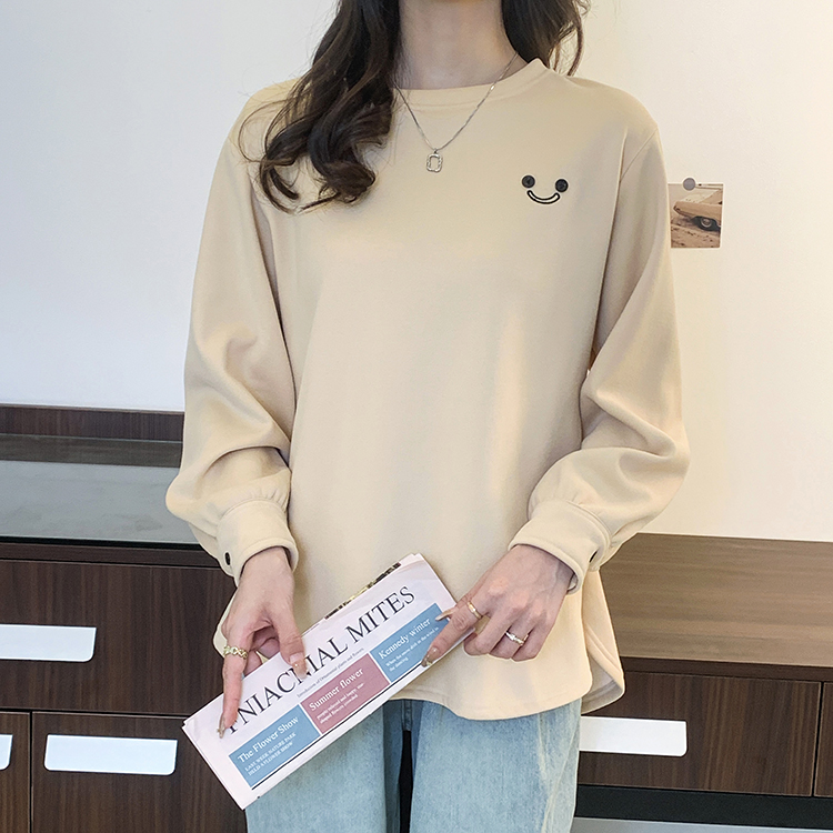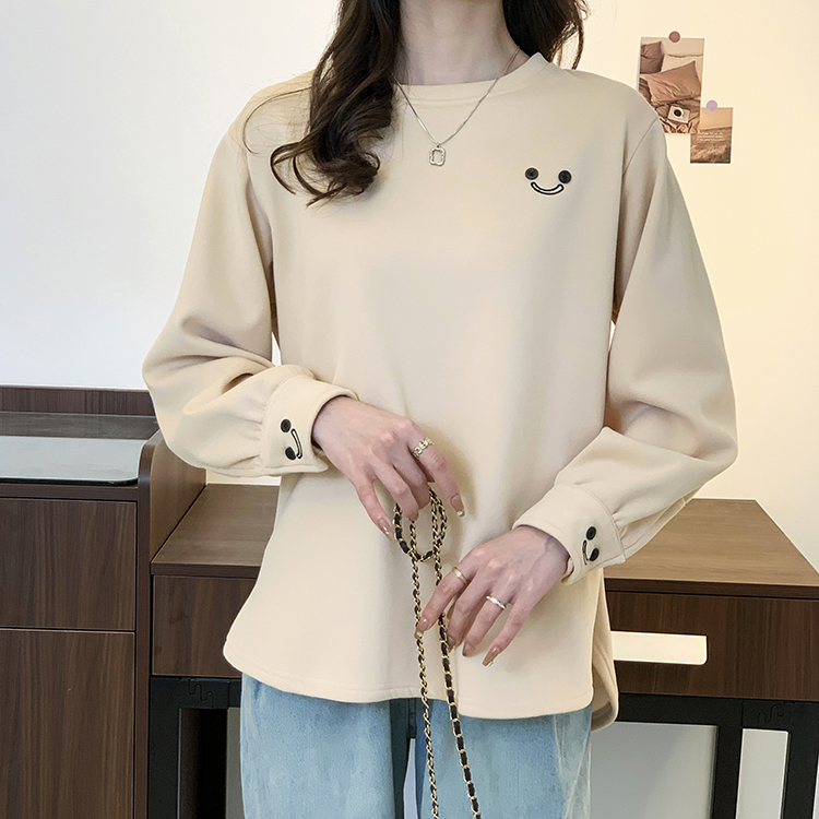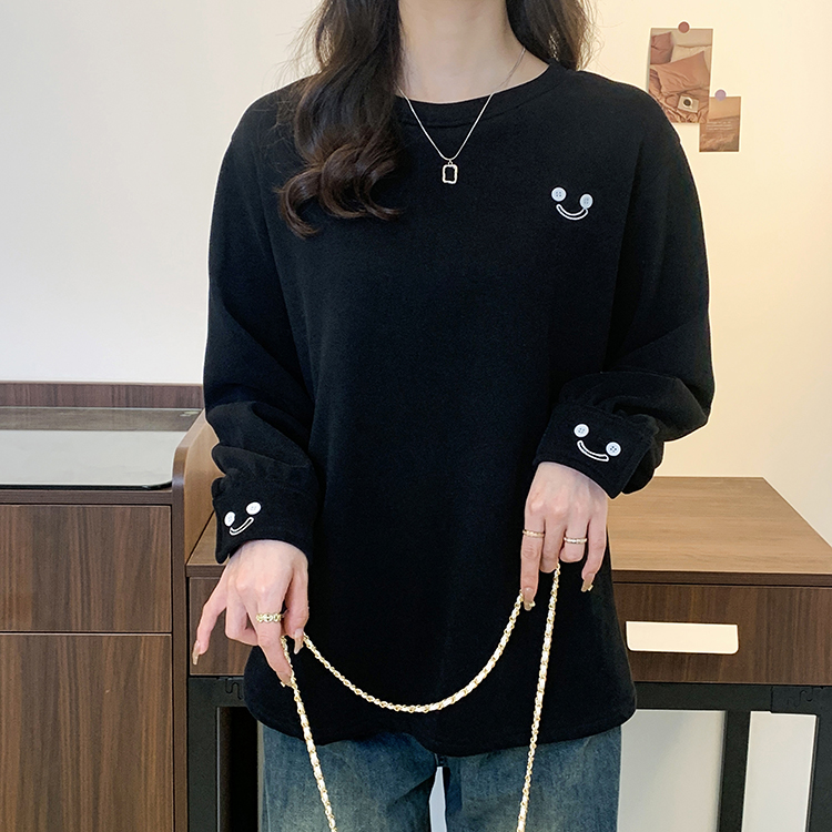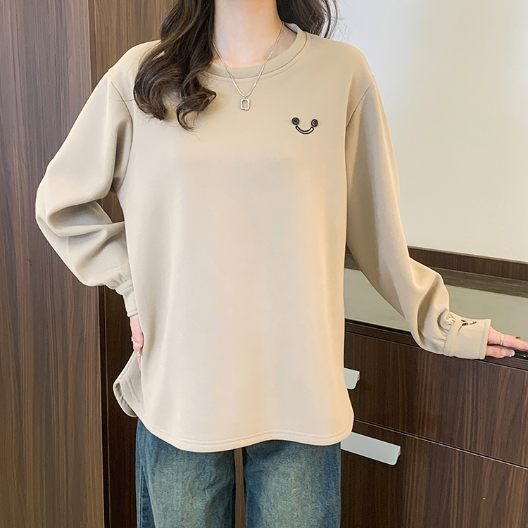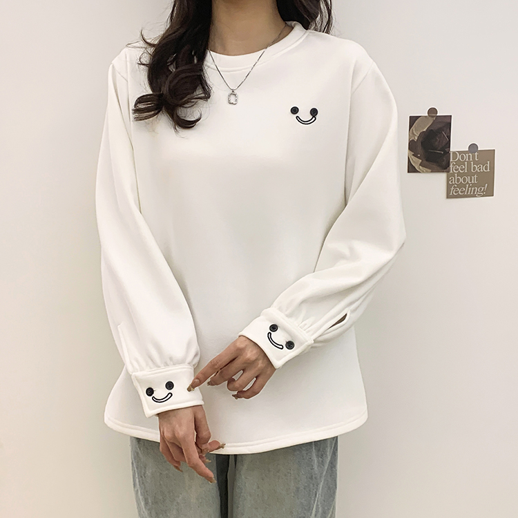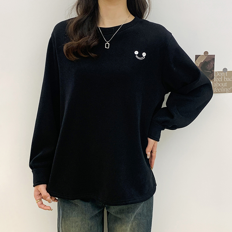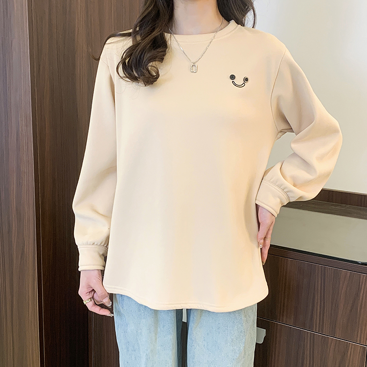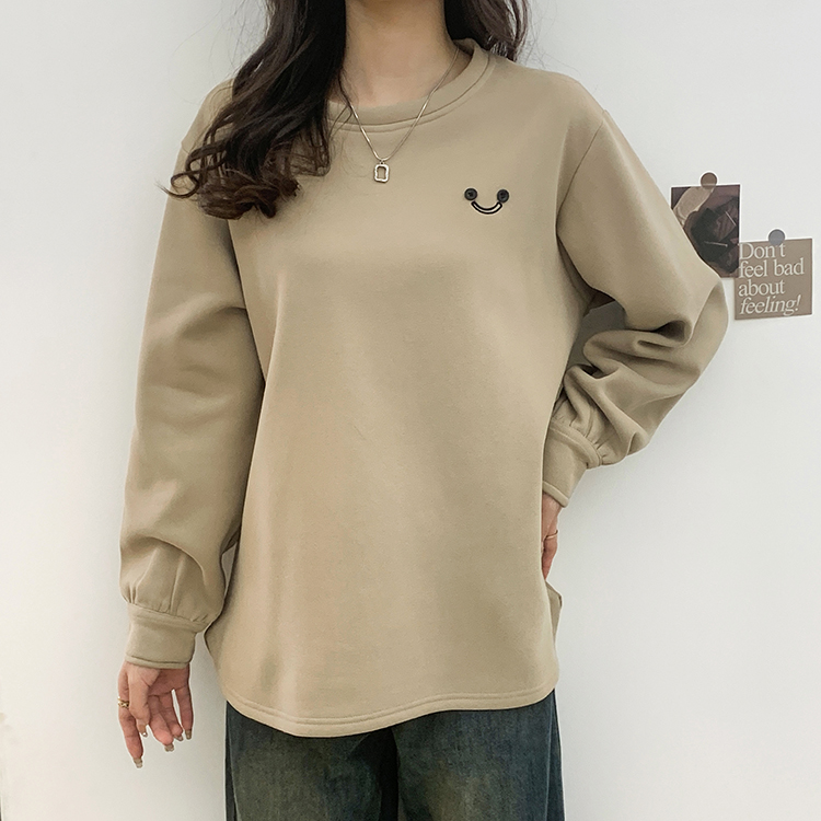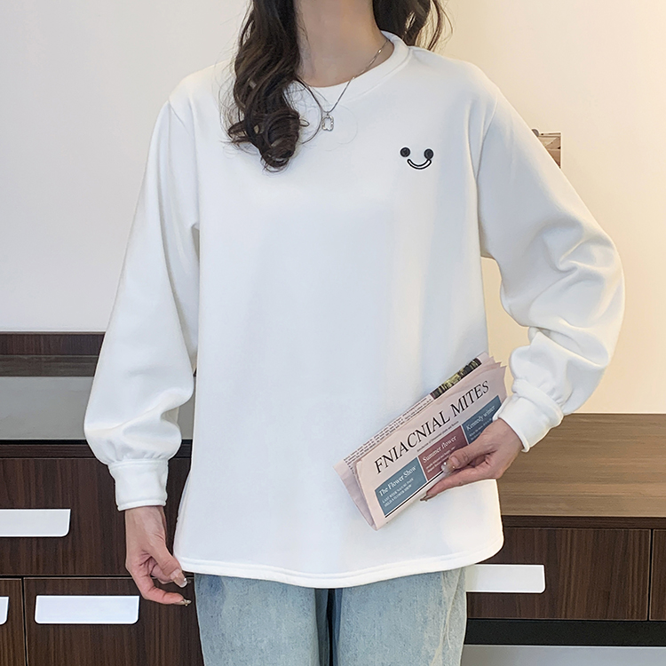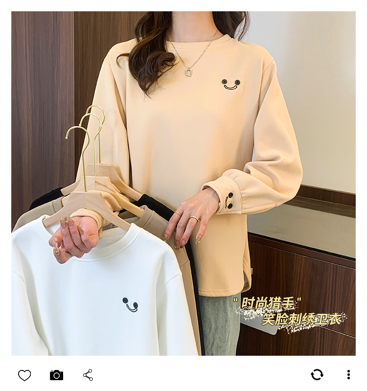 RM30762#华棉复合银狐绒笑脸刺绣宽松中长款加绒加厚卫衣女
