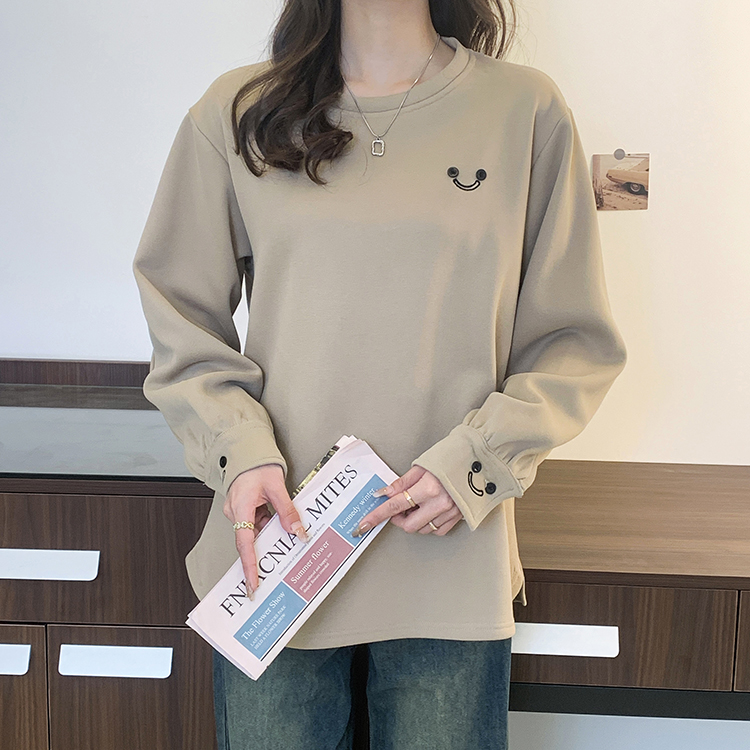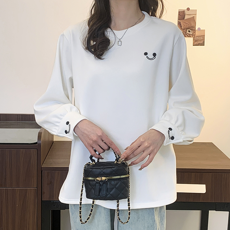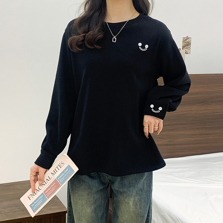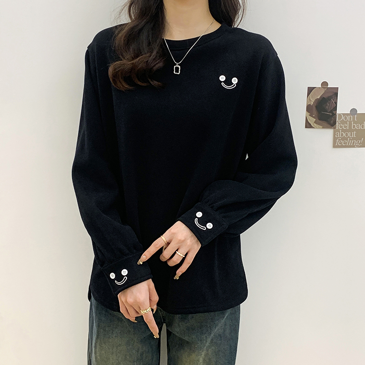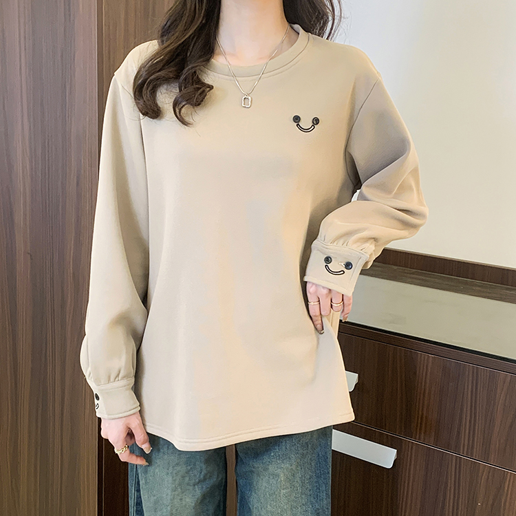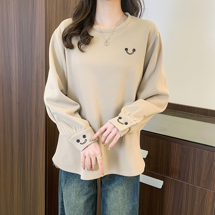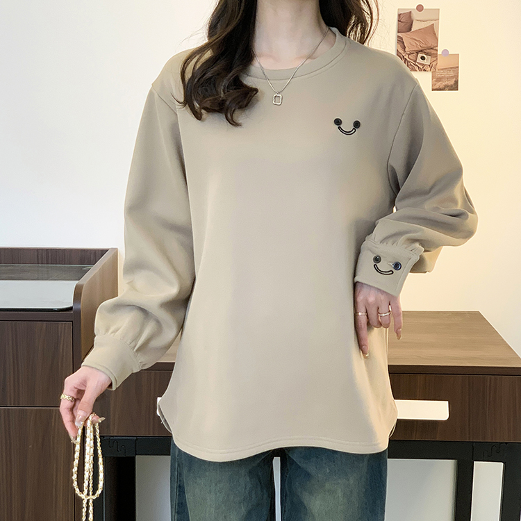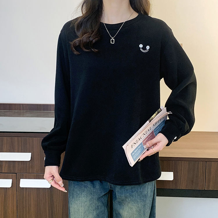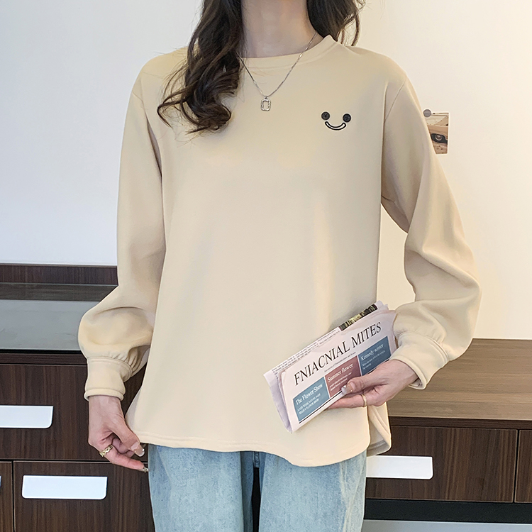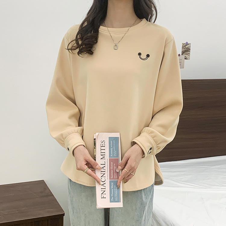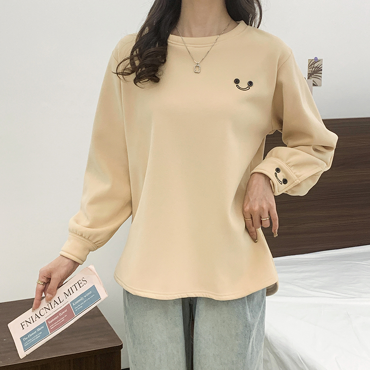 RM30762#华棉复合银狐绒笑脸刺绣宽松中长款加绒加厚卫衣女