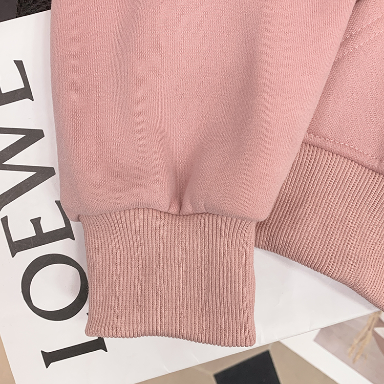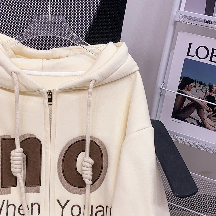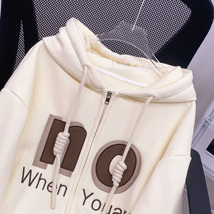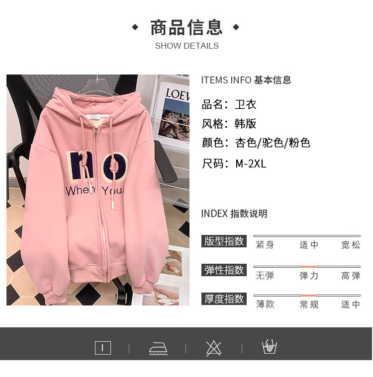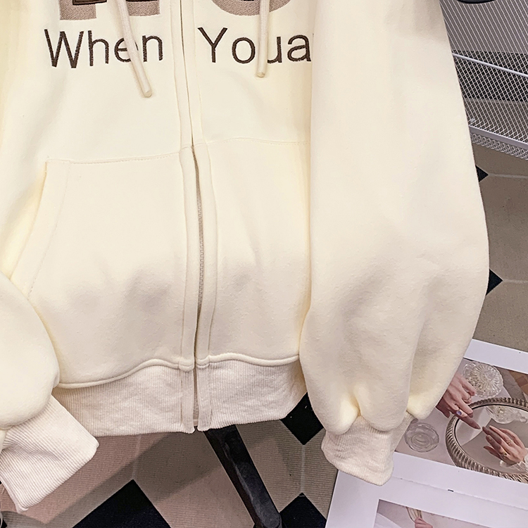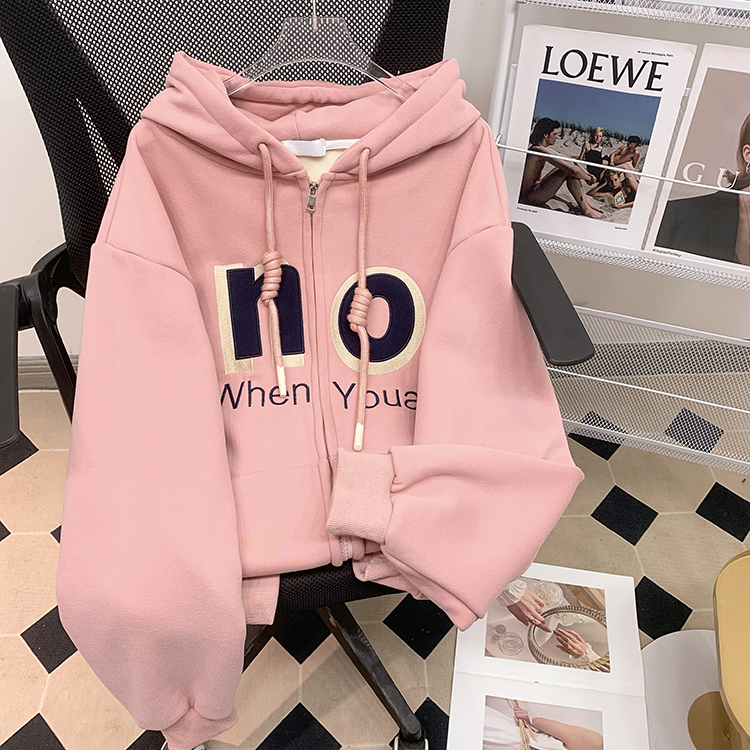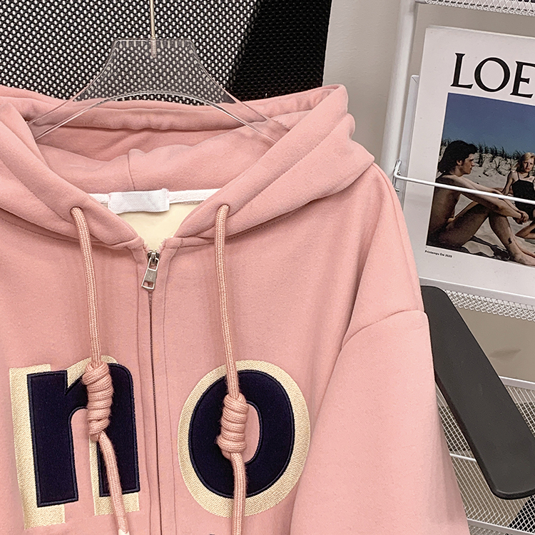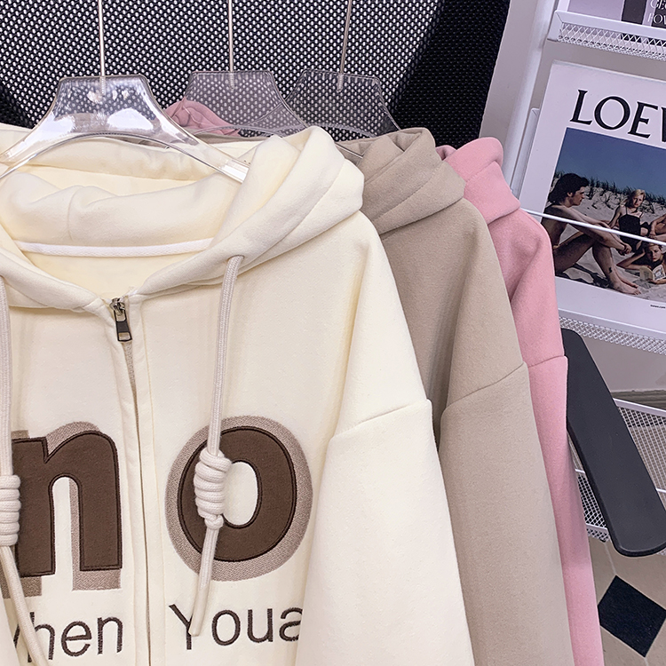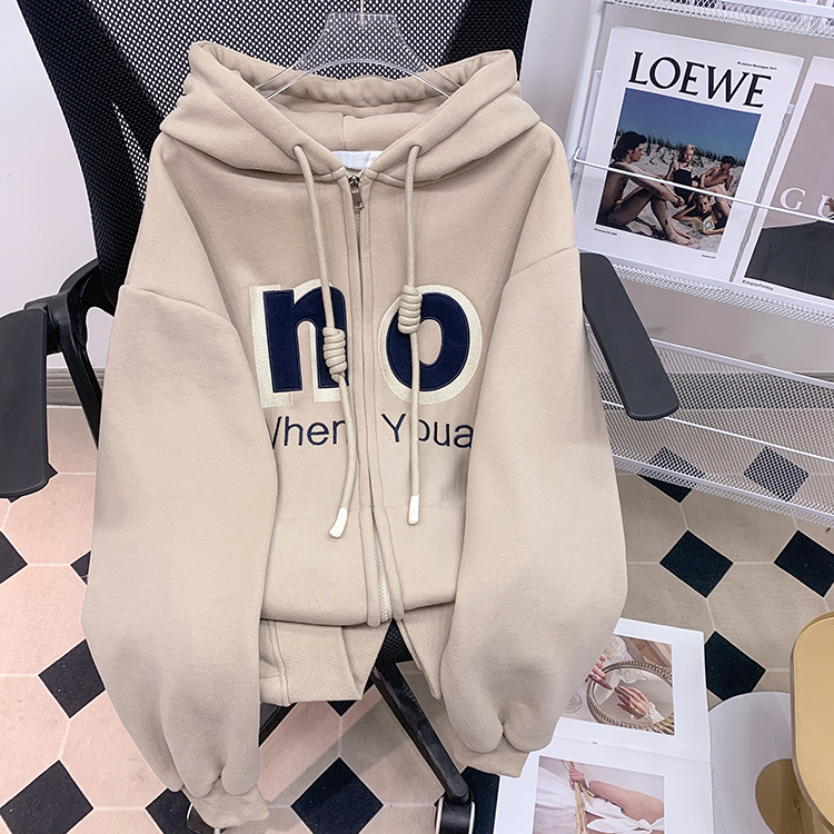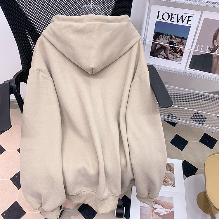 RM30763#加绒加厚中长款连帽卫衣女 大码潮牌刺绣外套宽松外搭上衣