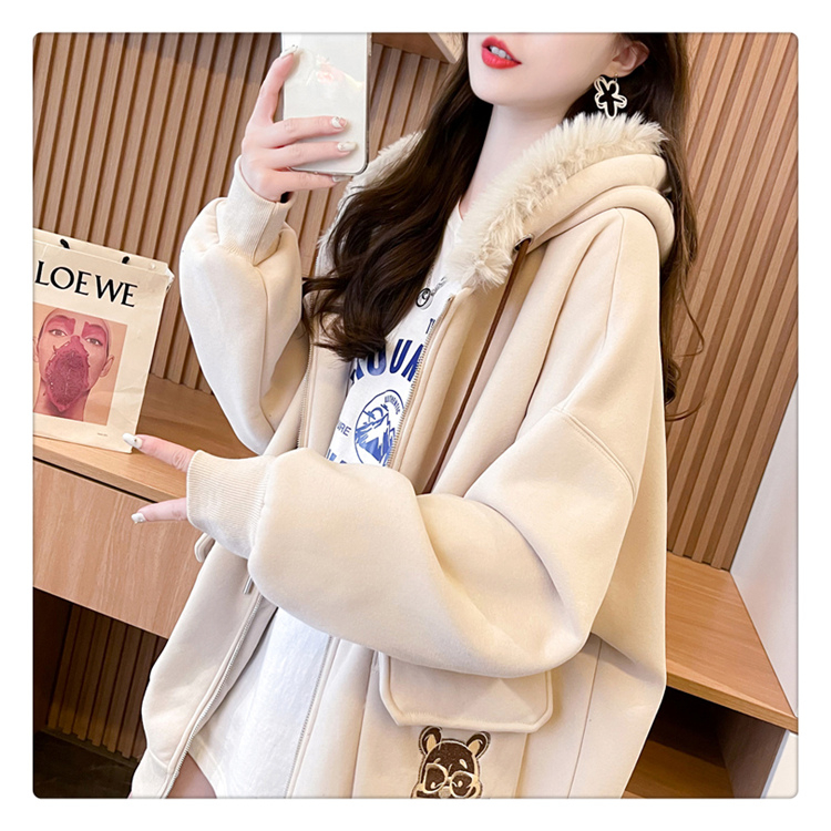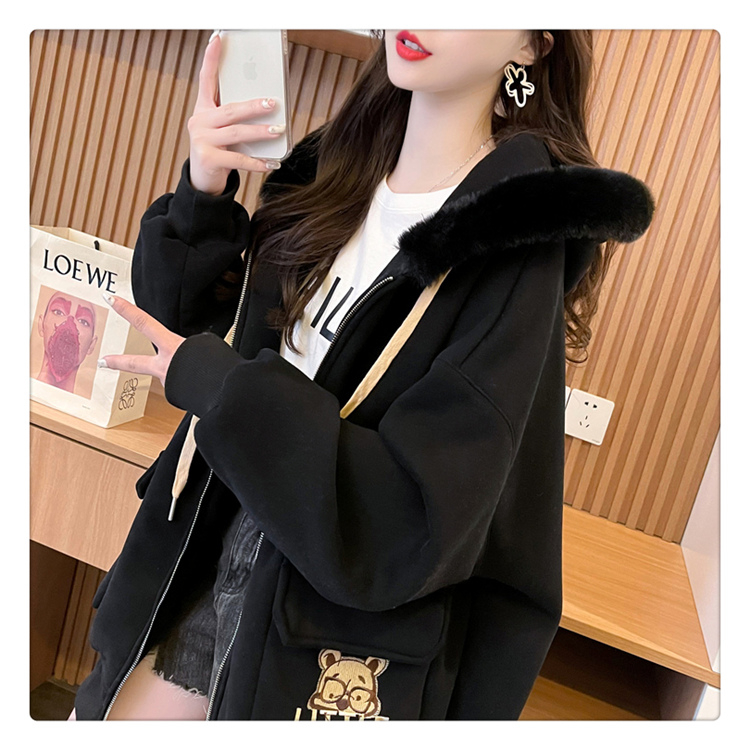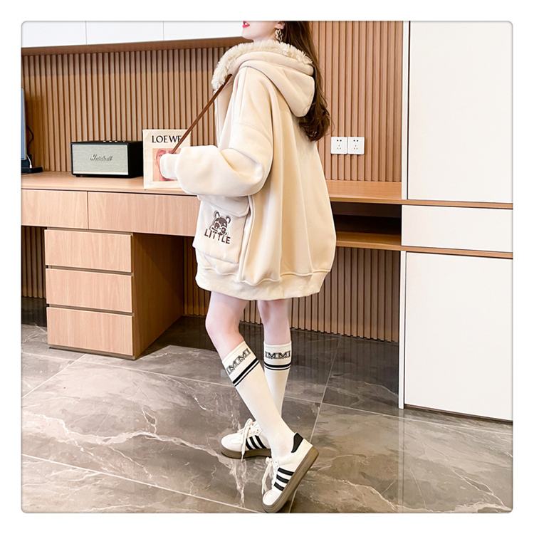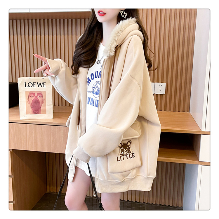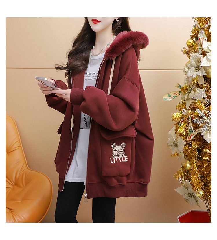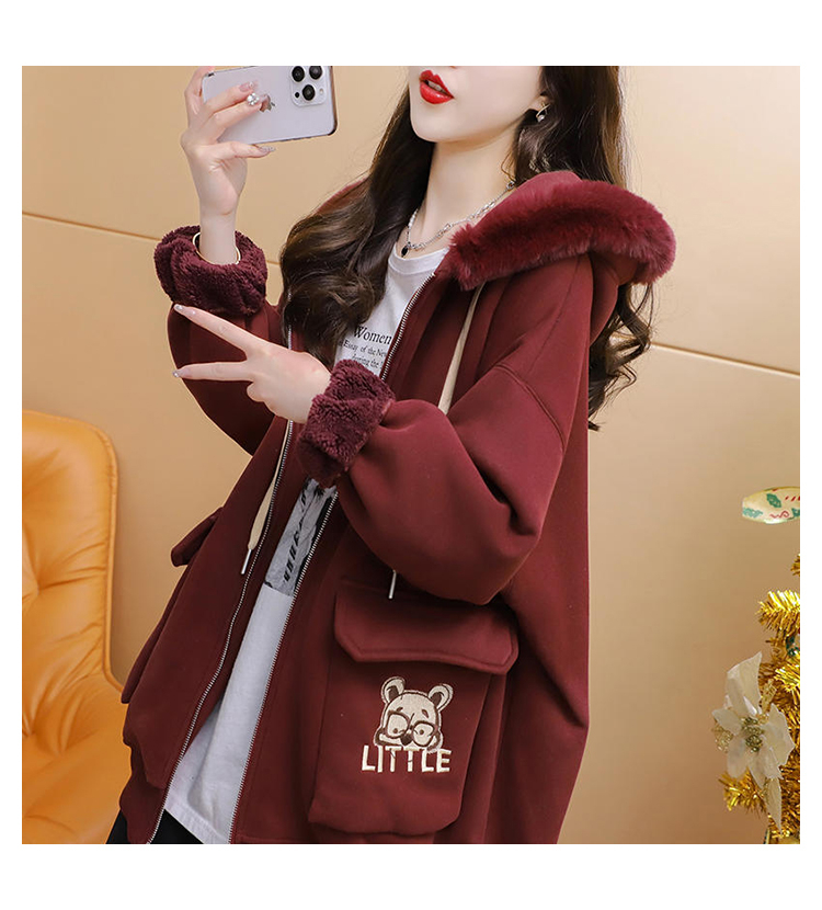 RM30774#首发仿华棉复贝贝绒220克冬季加绒加厚毛领连帽卫衣外套女