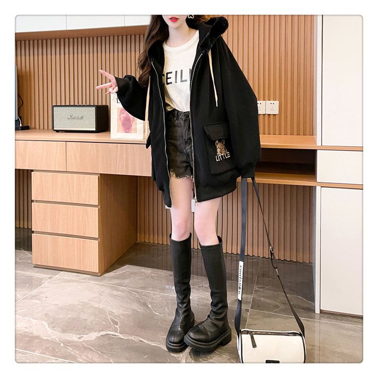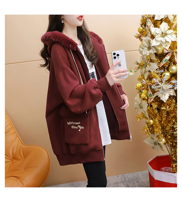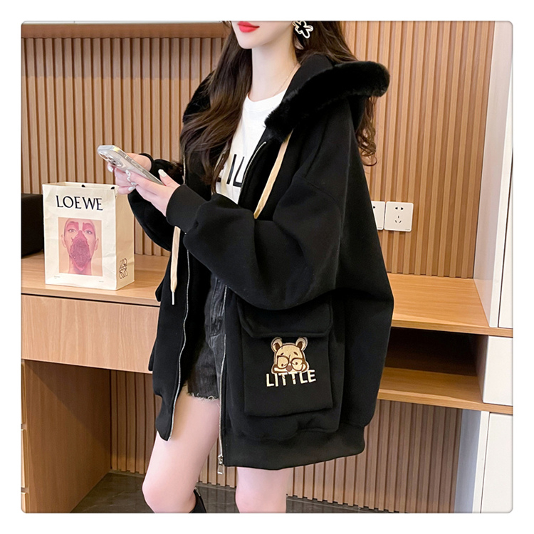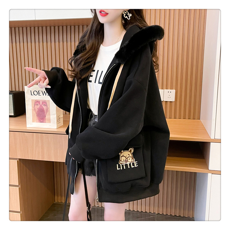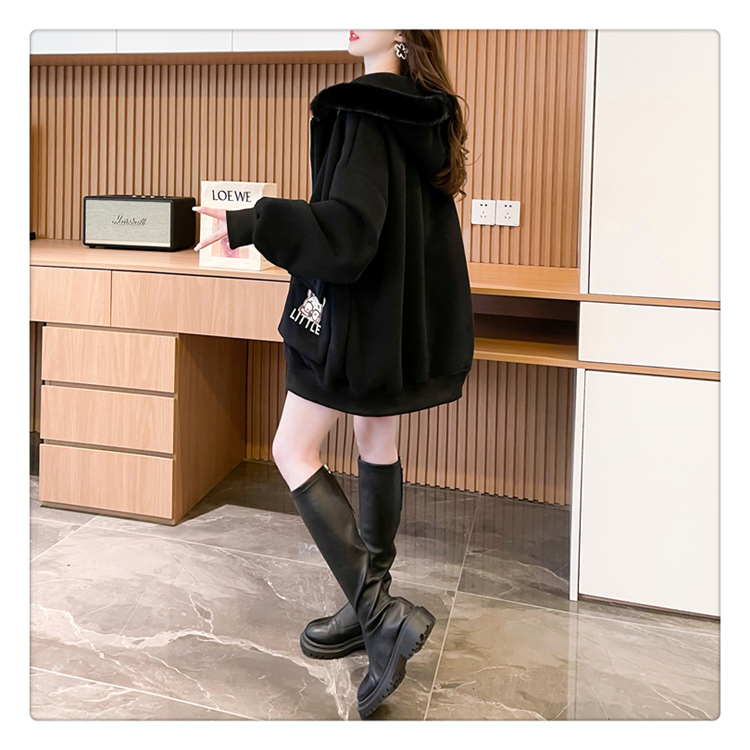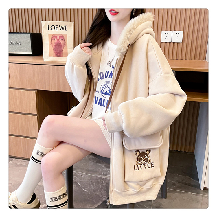 RM30774#首发仿华棉复贝贝绒220克冬季加绒加厚毛领连帽卫衣外套女