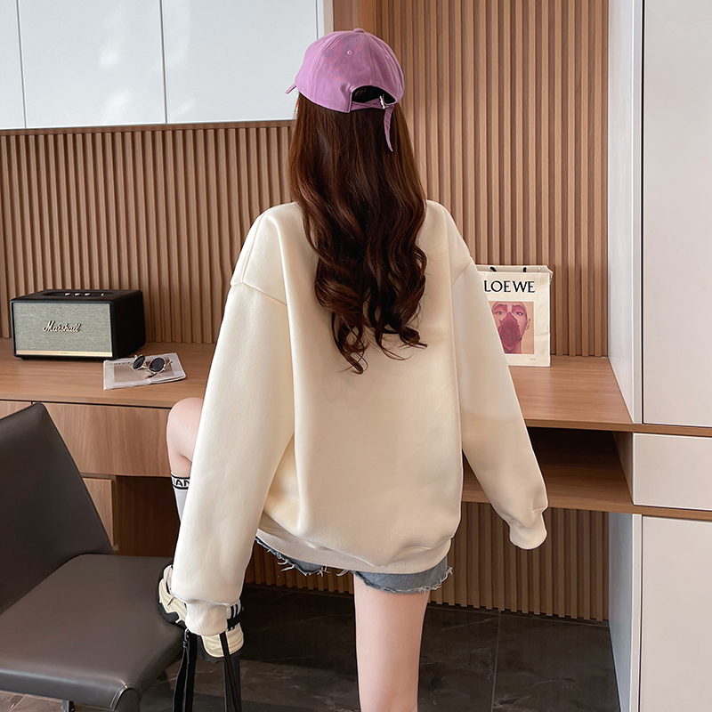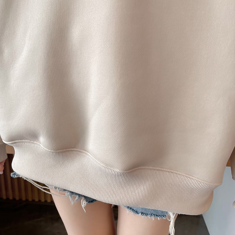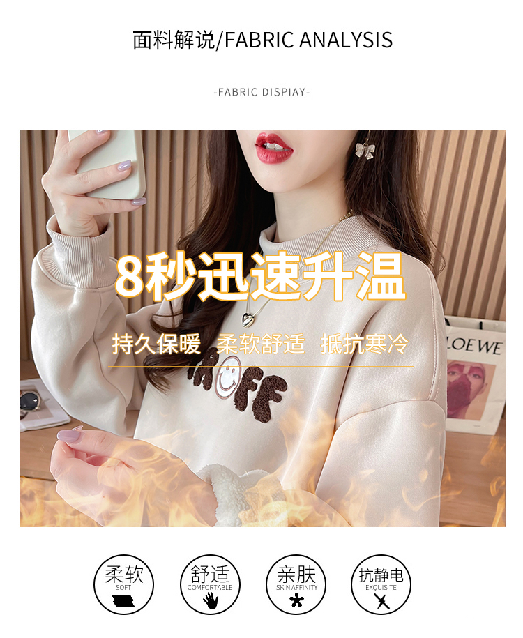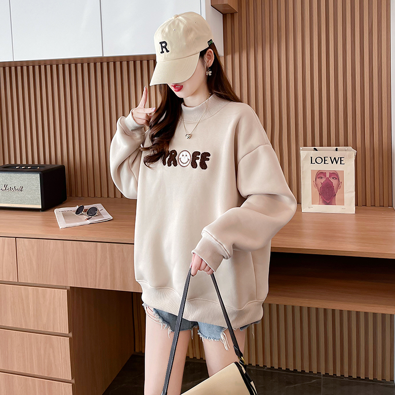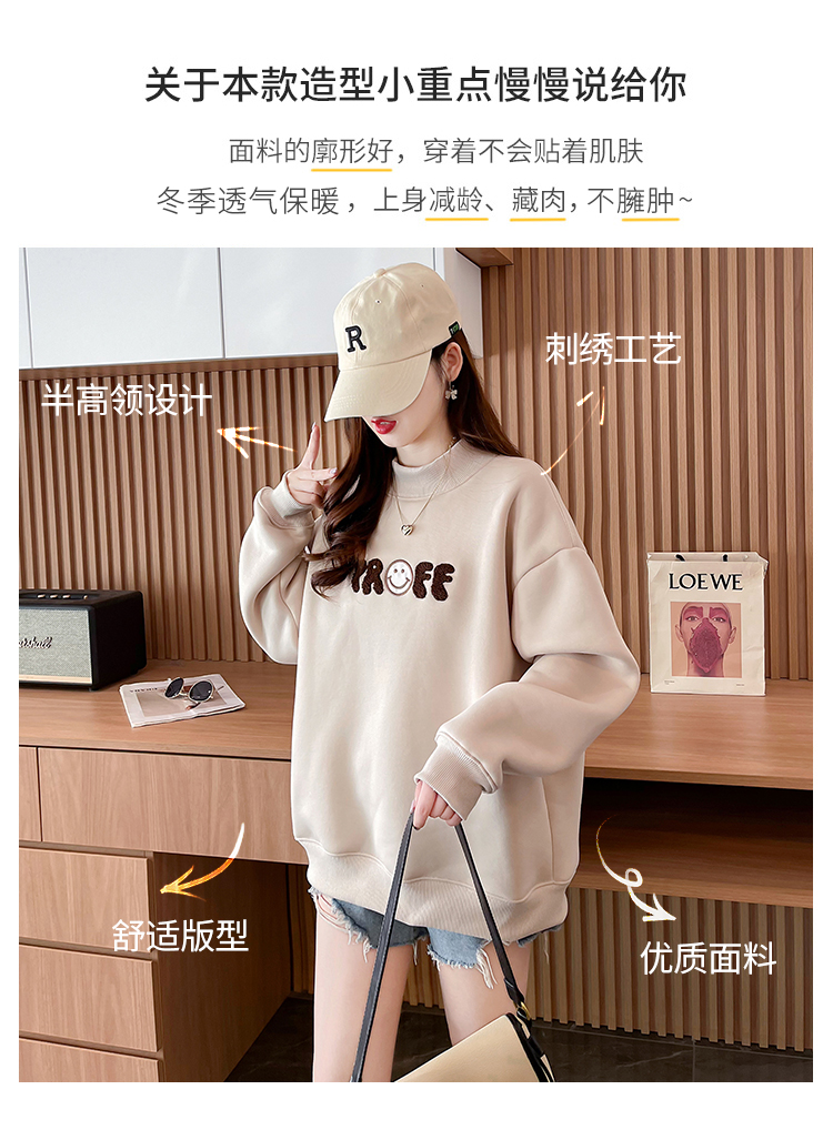 RM30778#华棉复合羊驼绒420克卫衣女秋冬刺绣半高领保暖上衣大码女装